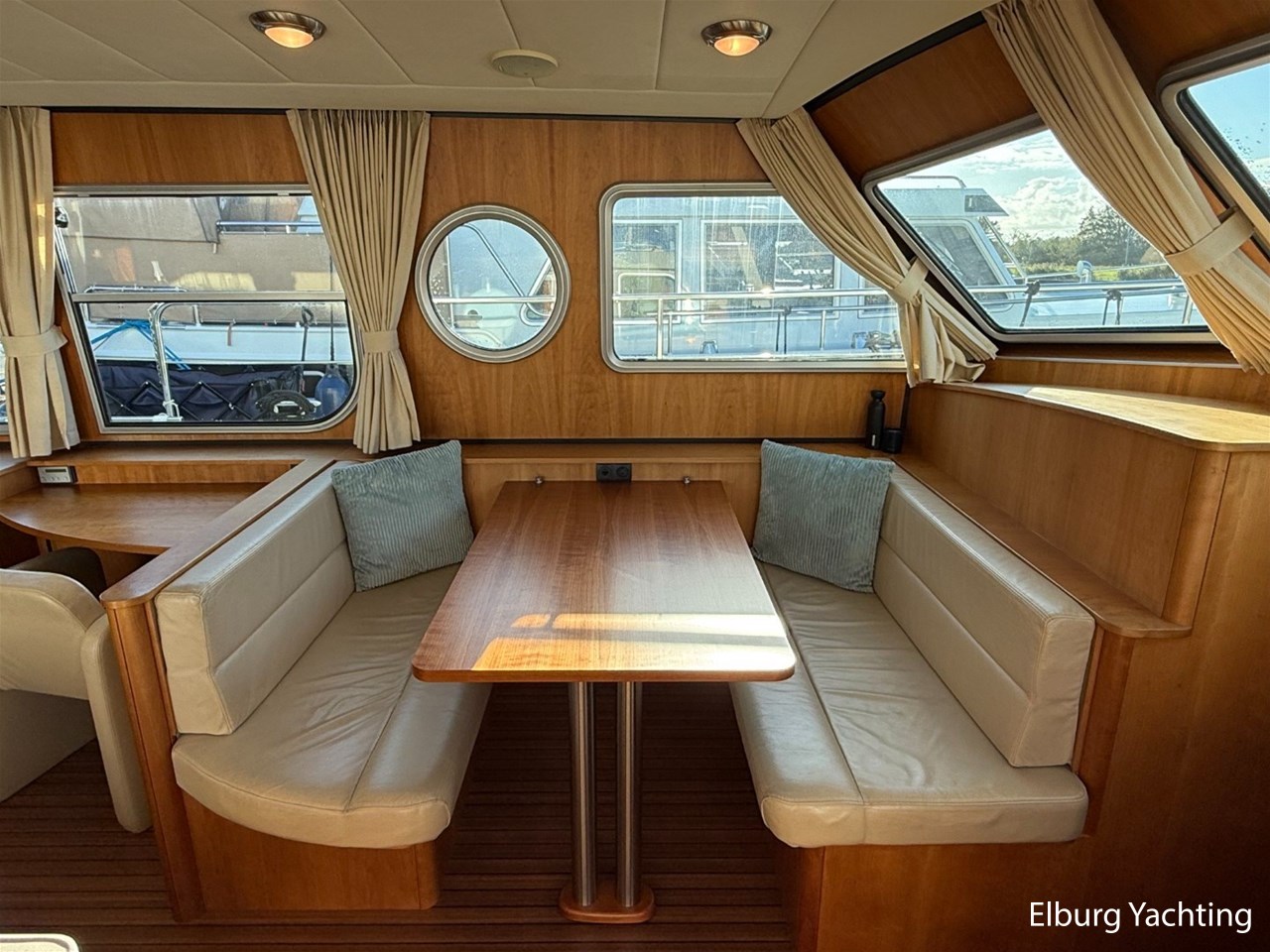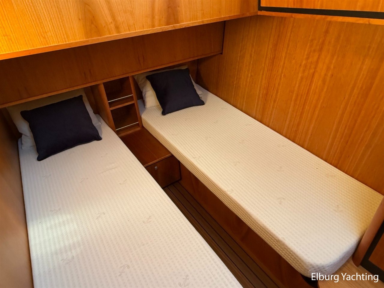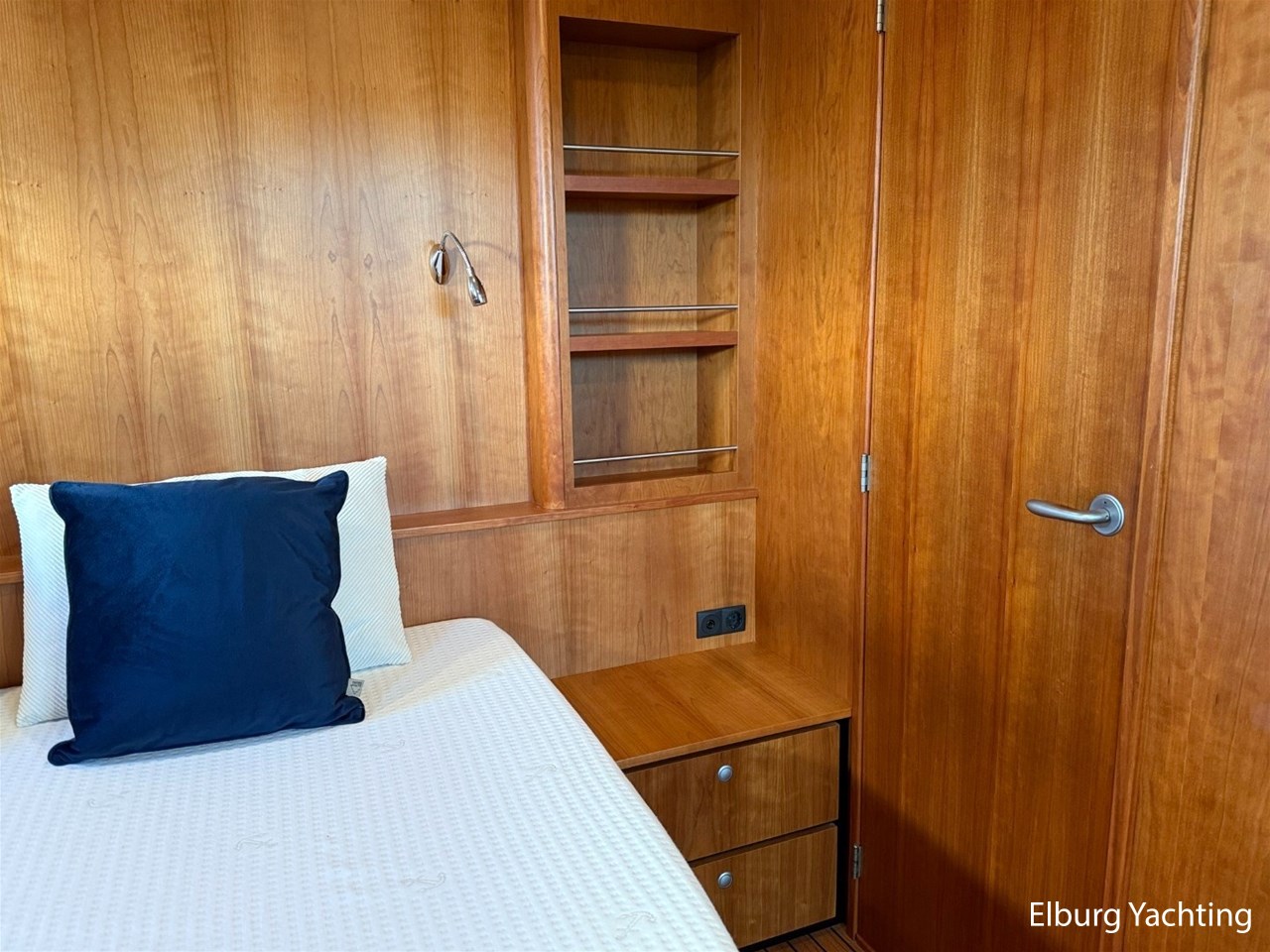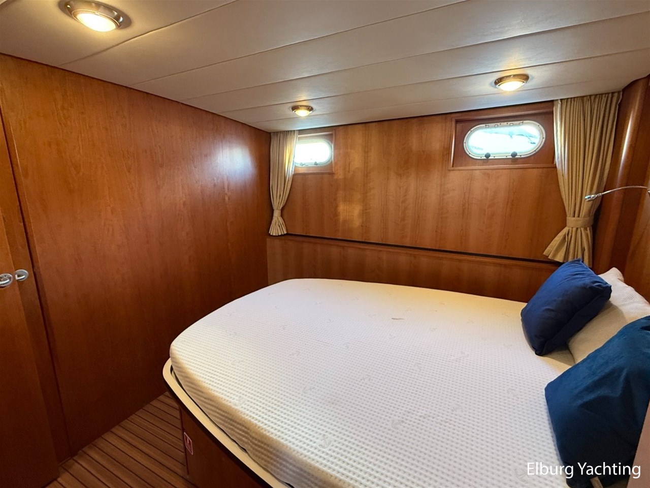 Extremely spacious Linssen Grand Sturdy 43.9 AC (After Cabin) built in 2011 by the renowned Linssen shipyard in Maasbracht. This neat Linssen has three double cabins with two bathrooms, double glazing throughout and a spacious dinette directly opposite the galley. It is clear to see that, over the years, the Linssen shipyard has given careful consideration to creating a practical and, above all, user-friendly layout with a luxurious finish. It is a classic yet modern yacht; timeless is the right word to describe it. Outside, the yacht has a maintenance-free anti-slip deck combined with ship teak on the spacious aft deck. The aft deck is covered by an attractive beige aft tent with windows and zip-out sections. The aft deck has a comfortable bench seat and in the middle is the well-organised helm station with navigation equipment, autopilot and controls for the bow and stern thrusters. On the port side is the entrance door to the yacht, which leads to the beautiful, light and, above all, very spacious saloon. With a spacious sofa, galley and dinette. At the rear is the aft cabin with its own bathroom and a handy wardrobe with safe. At the front are the two guest cabins with shared bathroom facilities. This yacht also comes with: electric bow and stern thrusters 95 kgf, Steyr engine control service, fixed bench on the aft deck, double hot air heating (interior and exterior), Siemens washer-dryer combination, portholes with mosquito nets and rain caps, rubber fender, boiler approx. 60 litres, Thermopane glazing. If you have any questions or would like to make an appointment, you are welcome to visit Elburg Yachting 7 days a week.