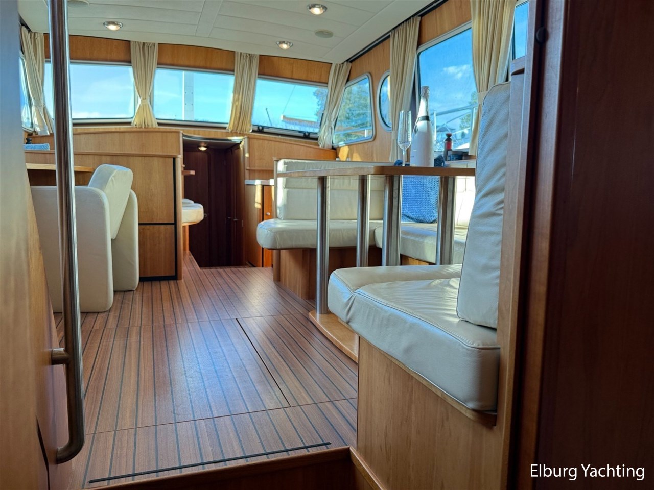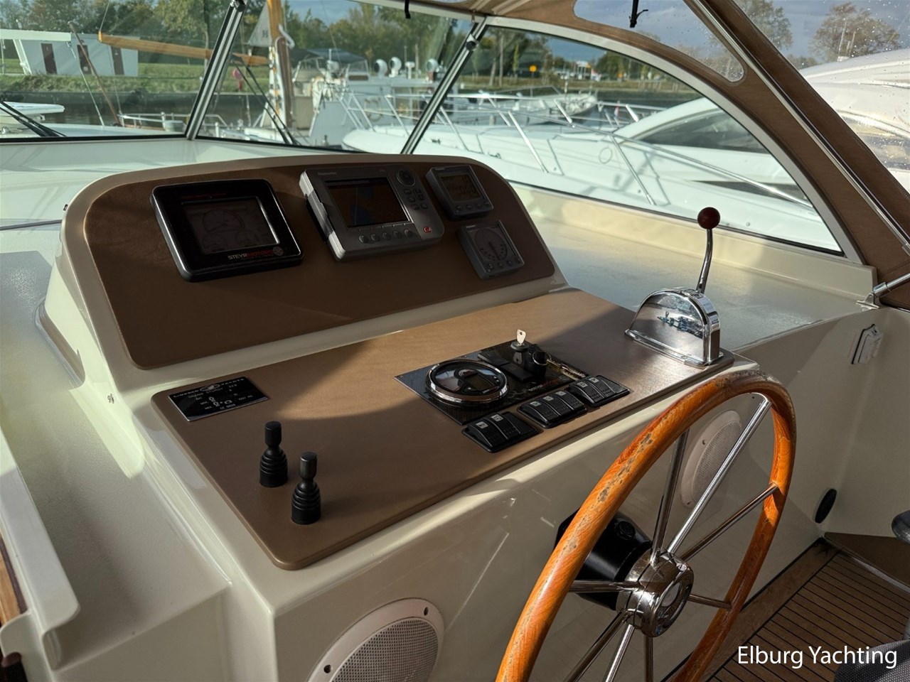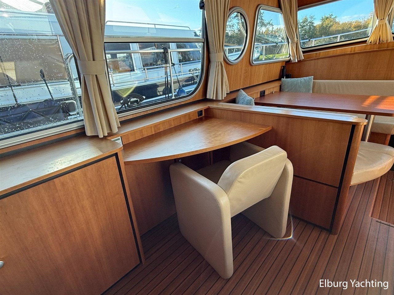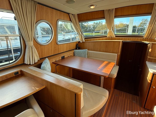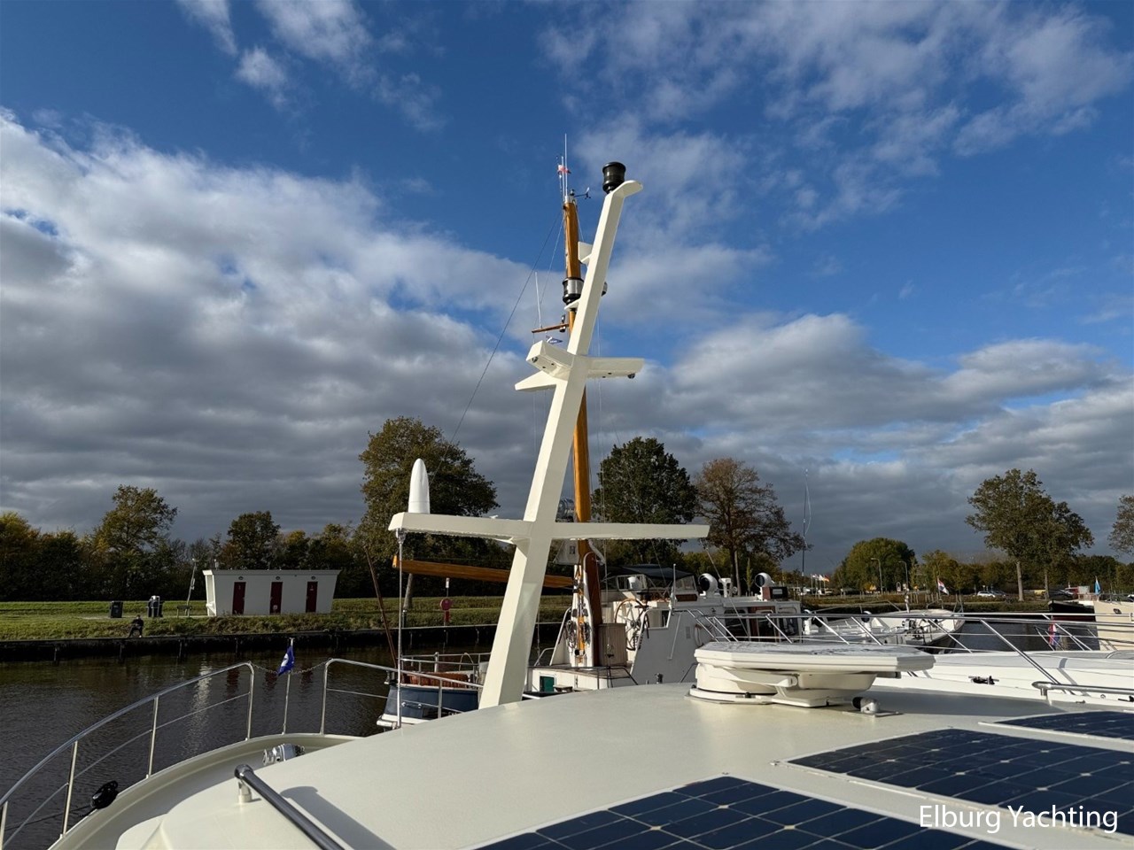 Extremely spacious Linssen Grand Sturdy 43.9 AC (After Cabin) built in 2011 by the renowned Linssen shipyard in Maasbracht. This neat Linssen has three double cabins with two bathrooms, double glazing throughout and a spacious dinette directly opposite the galley. It is clear to see that, over the years, the Linssen shipyard has given careful consideration to creating a practical and, above all, user-friendly layout with a luxurious finish. It is a classic yet modern yacht; timeless is the right word to describe it. Outside, the yacht has a maintenance-free anti-slip deck combined with ship teak on the spacious aft deck. The aft deck is covered by an attractive beige aft tent with windows and zip-out sections. The aft deck has a comfortable bench seat and in the middle is the well-organised helm station with navigation equipment, autopilot and controls for the bow and stern thrusters. On the port side is the entrance door to the yacht, which leads to the beautiful, light and, above all, very spacious saloon. With a spacious sofa, galley and dinette. At the rear is the aft cabin with its own bathroom and a handy wardrobe with safe. At the front are the two guest cabins with shared bathroom facilities. This yacht also comes with: electric bow and stern thrusters 95 kgf, Steyr engine control service, fixed bench on the aft deck, double hot air heating (interior and exterior), Siemens washer-dryer combination, portholes with mosquito nets and rain caps, rubber fender, boiler approx. 60 litres, Thermopane glazing. If you have any questions or would like to make an appointment, you are welcome to visit Elburg Yachting 7 days a week.