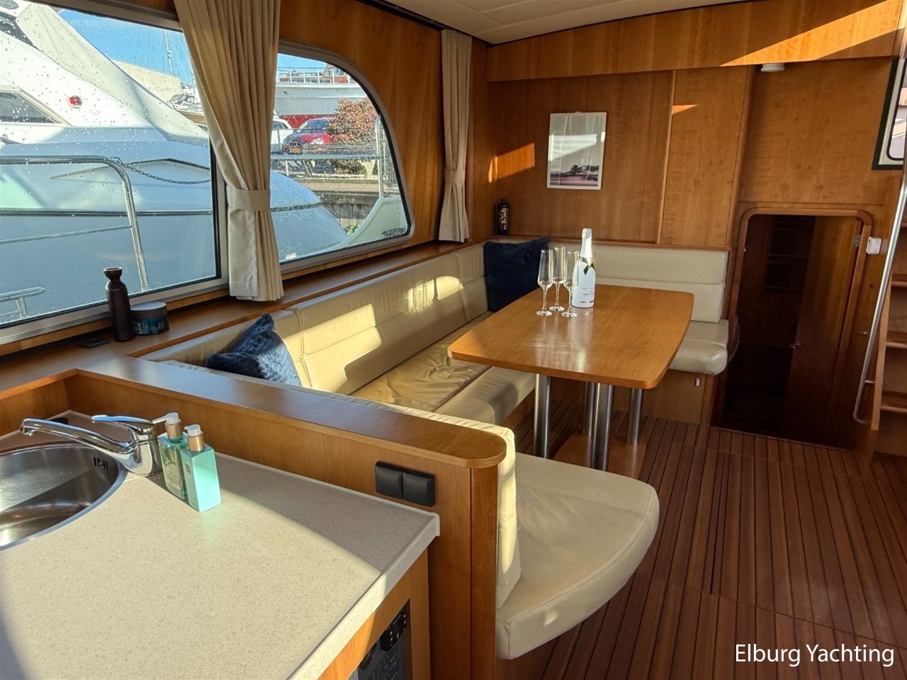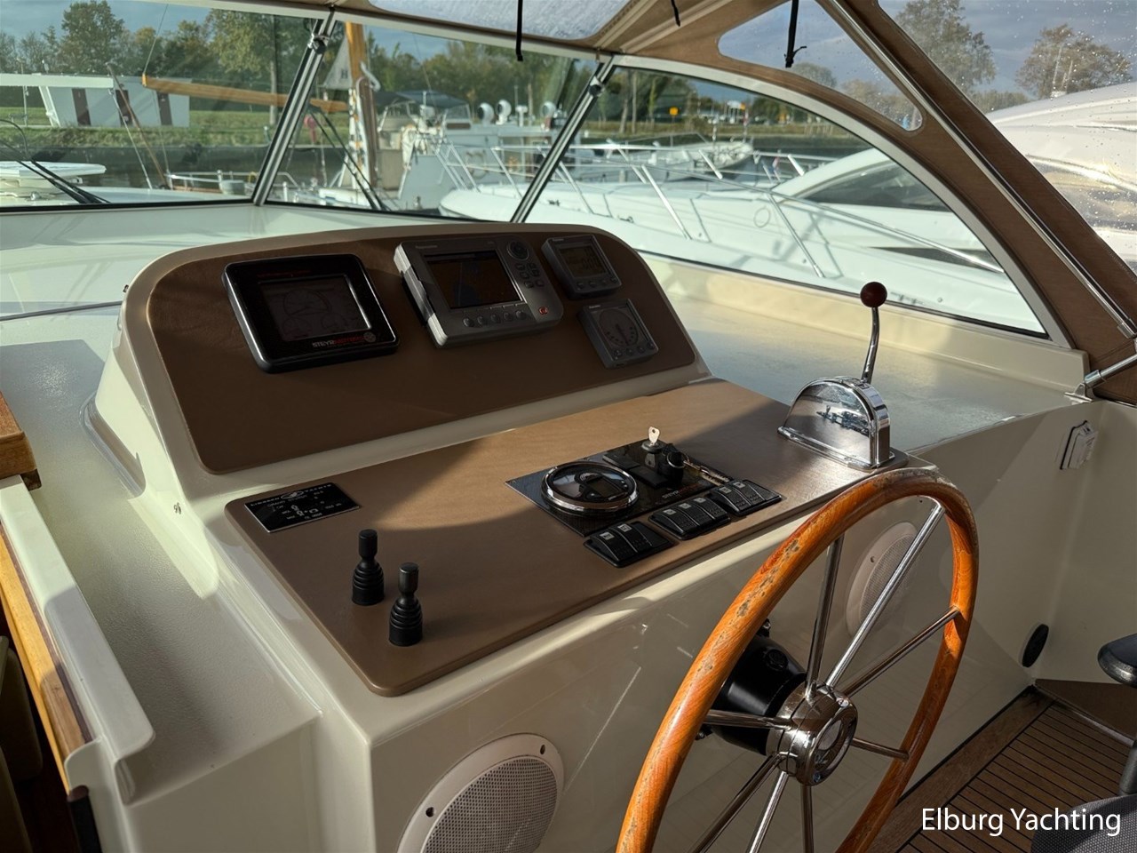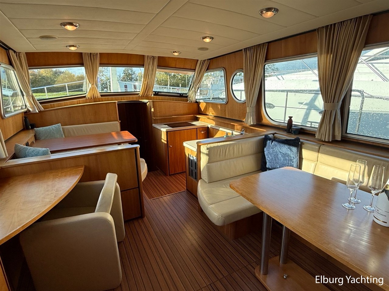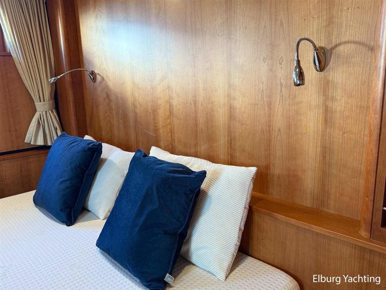 Extremely spacious Linssen Grand Sturdy 43.9 AC (After Cabin) built in 2011 by the renowned Linssen shipyard in Maasbracht. This neat Linssen has three double cabins with two bathrooms, double glazing throughout and a spacious dinette directly opposite the galley. It is clear to see that, over the years, the Linssen shipyard has given careful consideration to creating a practical and, above all, user-friendly layout with a luxurious finish. It is a classic yet modern yacht; timeless is the right word to describe it. Outside, the yacht has a maintenance-free anti-slip deck combined with ship teak on the spacious aft deck. The aft deck is covered by an attractive beige aft tent with windows and zip-out sections. The aft deck has a comfortable bench seat and in the middle is the well-organised helm station with navigation equipment, autopilot and controls for the bow and stern thrusters. On the port side is the entrance door to the yacht, which leads to the beautiful, light and, above all, very spacious saloon. With a spacious sofa, galley and dinette. At the rear is the aft cabin with its own bathroom and a handy wardrobe with safe. At the front are the two guest cabins with shared bathroom facilities. This yacht also comes with: electric bow and stern thrusters 95 kgf, Steyr engine control service, fixed bench on the aft deck, double hot air heating (interior and exterior), Siemens washer-dryer combination, portholes with mosquito nets and rain caps, rubber fender, boiler approx. 60 litres, Thermopane glazing. If you have any questions or would like to make an appointment, you are welcome to visit Elburg Yachting 7 days a week.