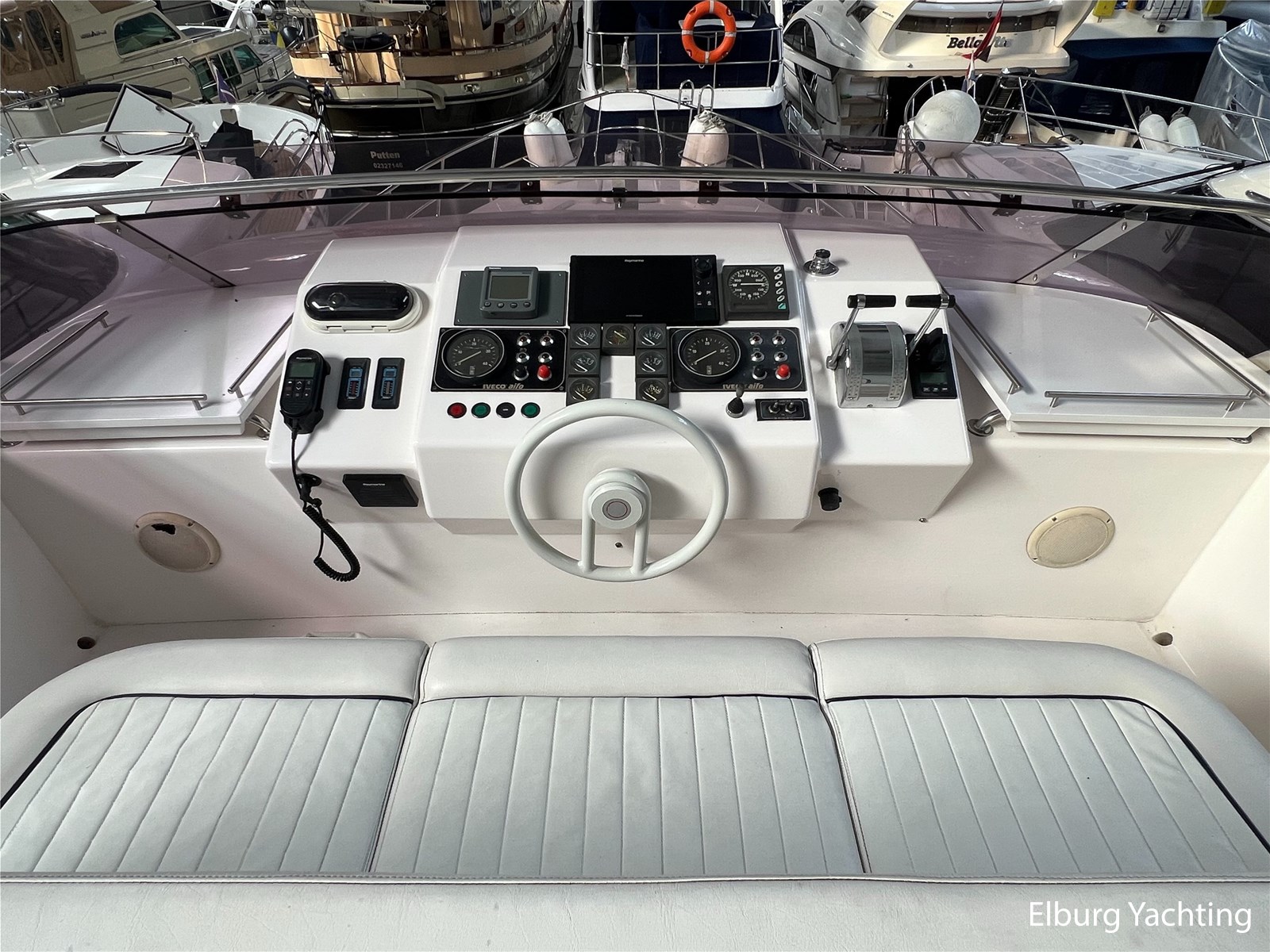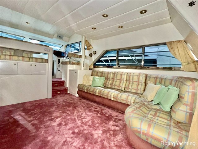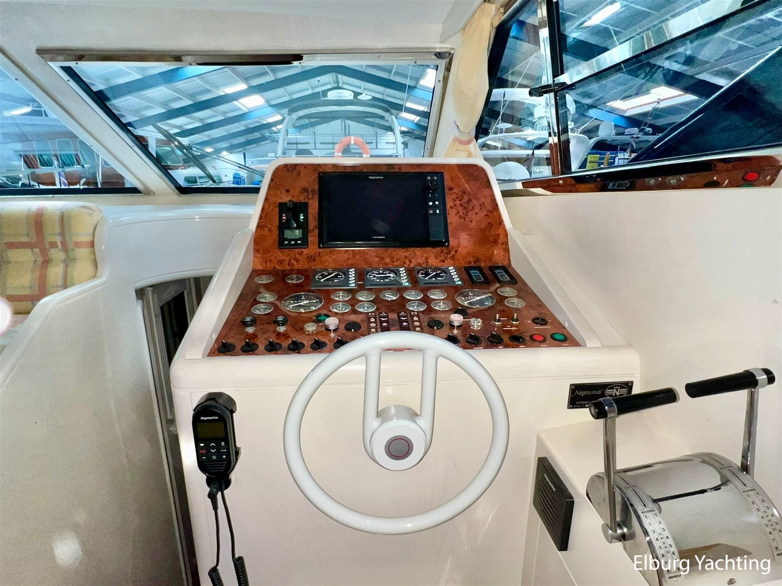 This spacious and sporty Neptunus 156 is in good condition for its age and is being sold by its first owner. The yacht features three cabins for at least six passengers and has two separate bathrooms. The open cockpit and saloon are connected on the same level. A full canopy covers the open cockpit with large viewing windows. An integrated staircase in the cockpit provides access to the spacious flybridge with a U-shaped seating area. The helm station has a two-person pilot seat and offers a well-organized dashboard with all the necessary equipment, including a new Raymarine Axiom plotter. The saloon can be accessed through a stainless steel sliding door. A spacious L-shaped bench and two integrated chairs offers excellent seating comfort. There is ample storage space in the benches and cabinets. The dinette is located opposite the helm station, allowing the entire crew to watch the sailing at a comfortable level. Below deck is the galley with a refrigerator/freezer/microwave/dishwasher/stovetop and sink. On the starboard side, there are two single guest cabins, and on the port side, a double cabin with a French bed. The guest bathroom is located amidships and is freely accessible. Forward is the owner's cabin with a double bed and en-suite bathroom. Ample storage is located under the forward cabin bed. The aft section is accessed through a wide hatch in the cockpit floor. The aft section contains storage space, a washer and dryer, the generator, and other technical equipment. The engine room is accessible from the aft section. The port engine was replaced in the winter of 2023-2024; invoices for this work are available. This Neptunus 156 is also equipped with: removable cushions for the aft deck, flybridge and foredeck, a bimini top over the flybridge, flybridge sections with covers, stainless steel fender holders, lockable cockpit with a door to the bathing platform, exterior lighting, four sliding windows in the saloon for ventilation and two mosquito screens, mosquito screens for the portholes, a removable sunshade on the windshield, and a side ladder. Interior headroom is approximately 2 meter. For questions and/or to make an appointment, you are welcome at Elburg Yachting 7 days a week.