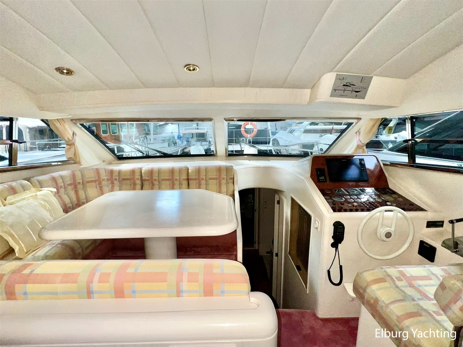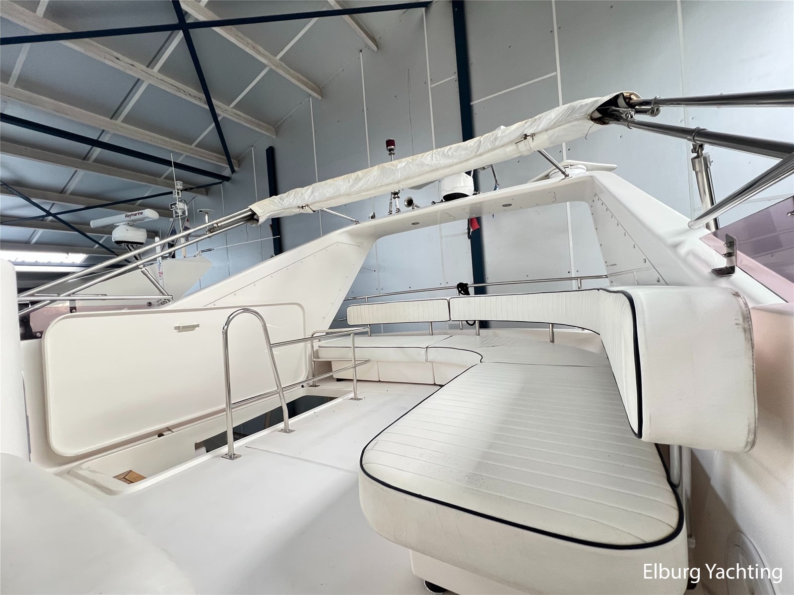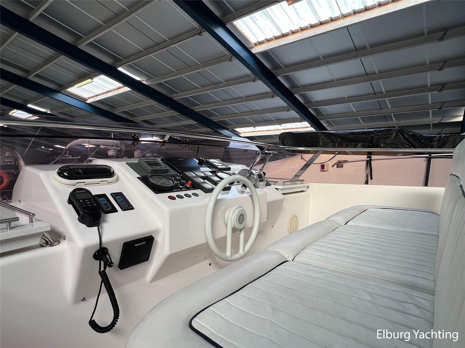 This spacious and sporty Neptunus 156 is in good condition for its age and is being sold by its first owner. The yacht features three cabins for at least six passengers and has two separate bathrooms. The open cockpit and saloon are connected on the same level. A full canopy covers the open cockpit with large viewing windows. An integrated staircase in the cockpit provides access to the spacious flybridge with a U-shaped seating area. The helm station has a two-person pilot seat and offers a well-organized dashboard with all the necessary equipment, including a new Raymarine Axiom plotter. The saloon can be accessed through a stainless steel sliding door. A spacious L-shaped bench and two integrated chairs offers excellent seating comfort. There is ample storage space in the benches and cabinets. The dinette is located opposite the helm station, allowing the entire crew to watch the sailing at a comfortable level. Below deck is the galley with a refrigerator/freezer/microwave/dishwasher/stovetop and sink. On the starboard side, there are two single guest cabins, and on the port side, a double cabin with a French bed. The guest bathroom is located amidships and is freely accessible. Forward is the owner's cabin with a double bed and en-suite bathroom. Ample storage is located under the forward cabin bed. The aft section is accessed through a wide hatch in the cockpit floor. The aft section contains storage space, a washer and dryer, the generator, and other technical equipment. The engine room is accessible from the aft section. The port engine was replaced in the winter of 2023-2024; invoices for this work are available. This Neptunus 156 is also equipped with: removable cushions for the aft deck, flybridge and foredeck, a bimini top over the flybridge, flybridge sections with covers, stainless steel fender holders, lockable cockpit with a door to the bathing platform, exterior lighting, four sliding windows in the saloon for ventilation and two mosquito screens, mosquito screens for the portholes, a removable sunshade on the windshield, and a side ladder. Interior headroom is approximately 2 meter. For questions and/or to make an appointment, you are welcome at Elburg Yachting 7 days a week.