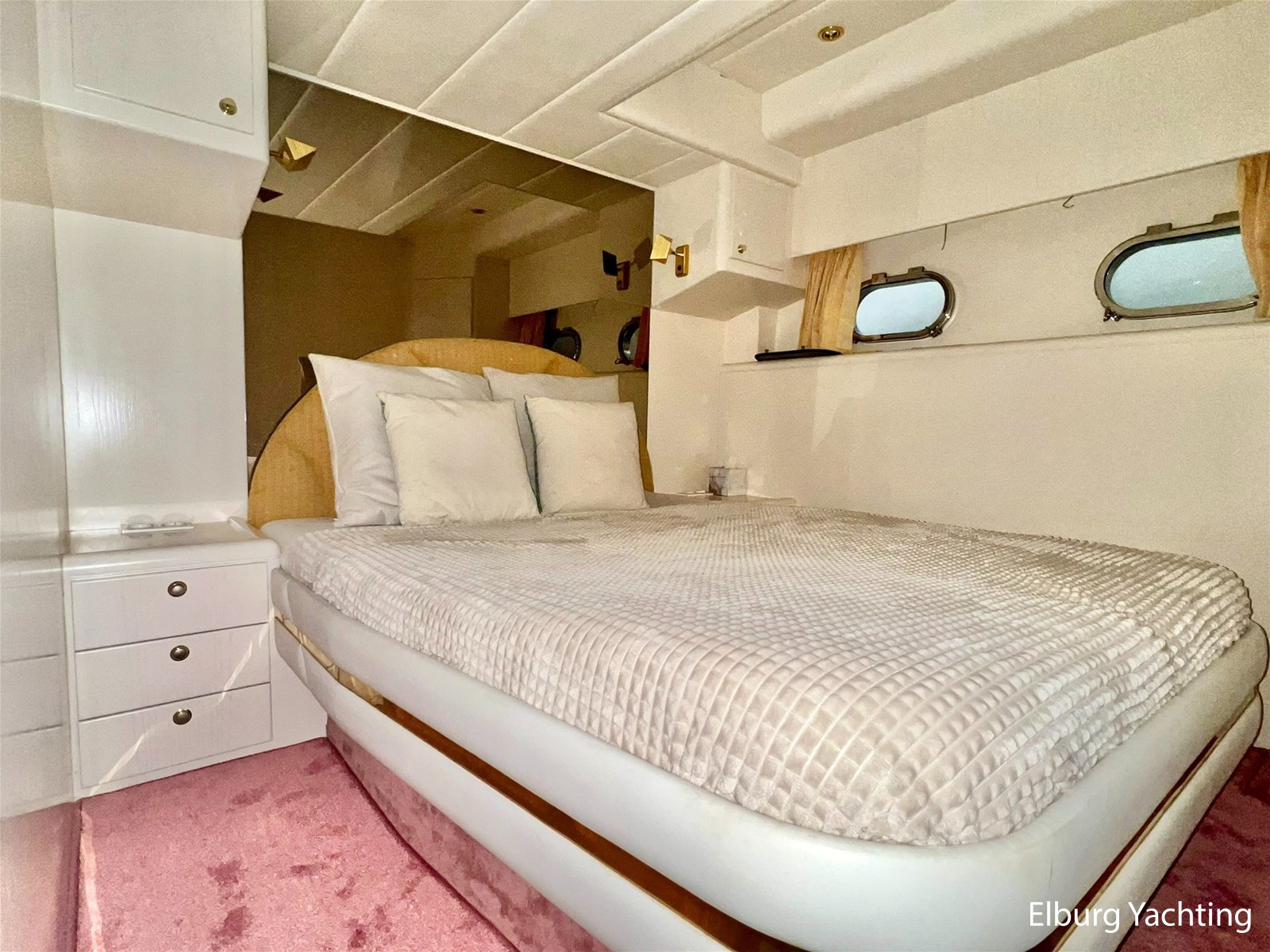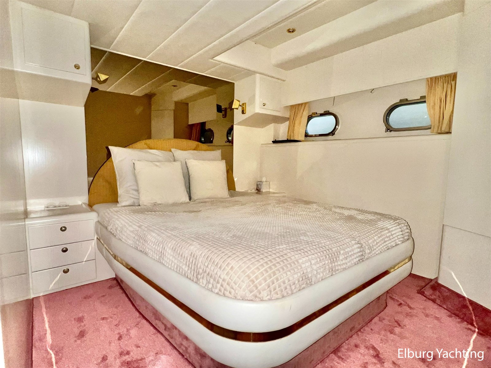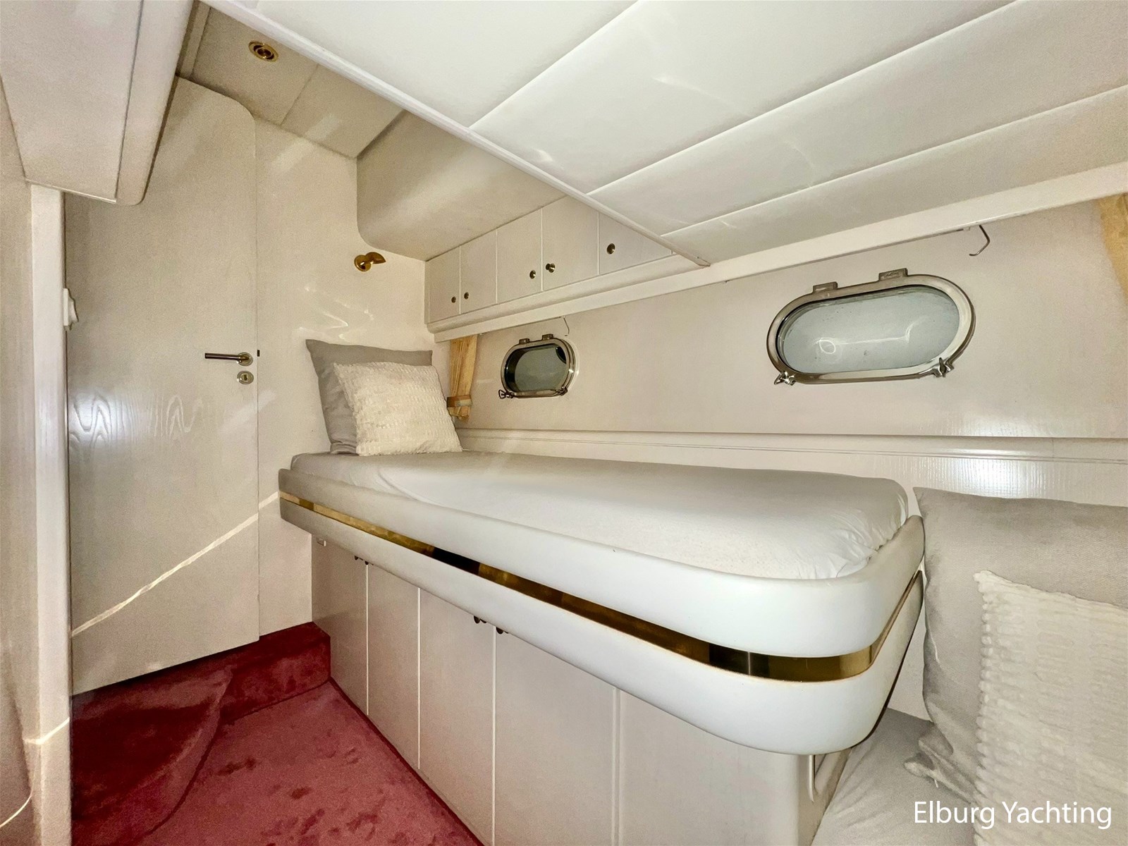 6 x (1 x 2 pers. french bed in front cabin + 1 x 2 pers. french bed in PS-cabin + 2 x 1 pers. bed in SB-cabin)