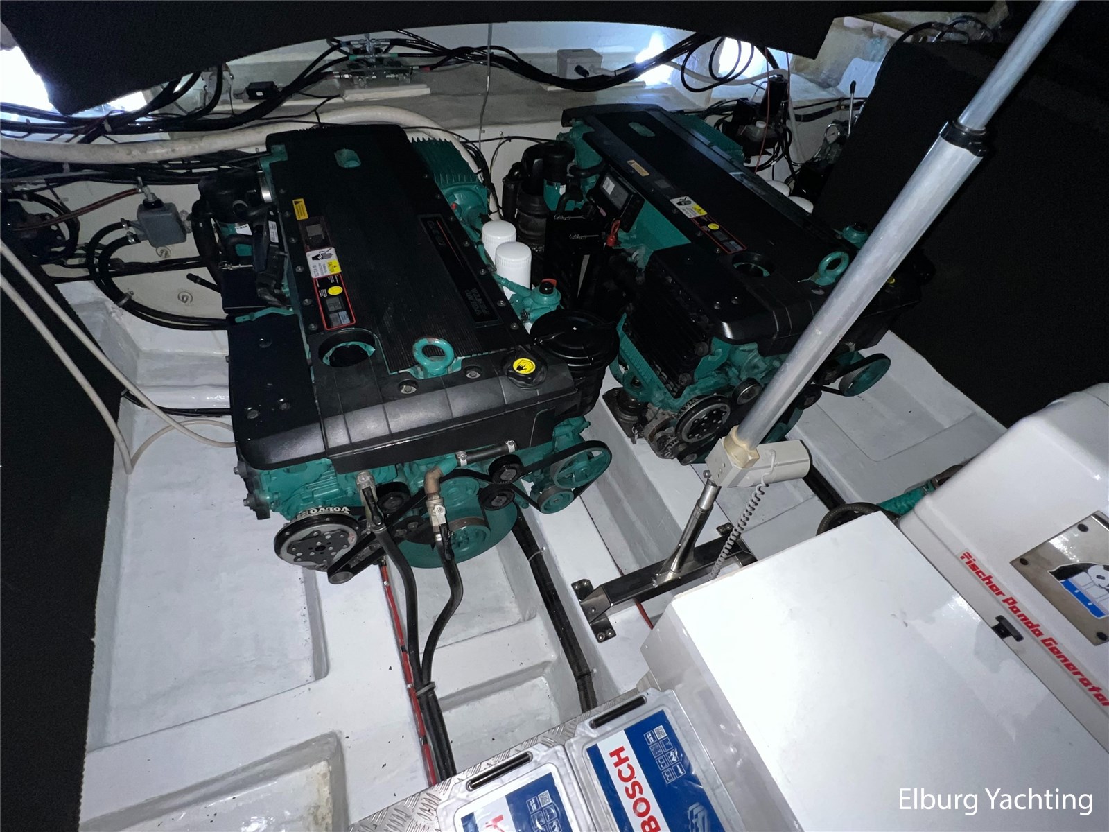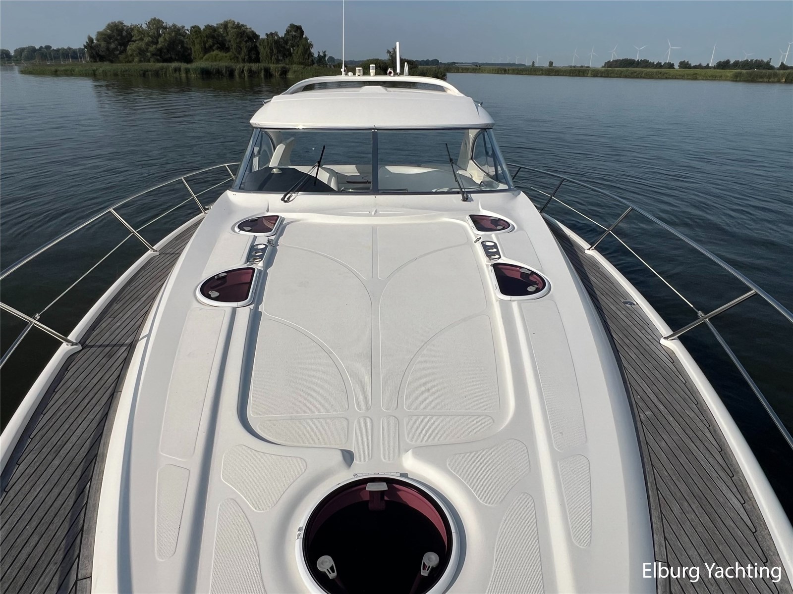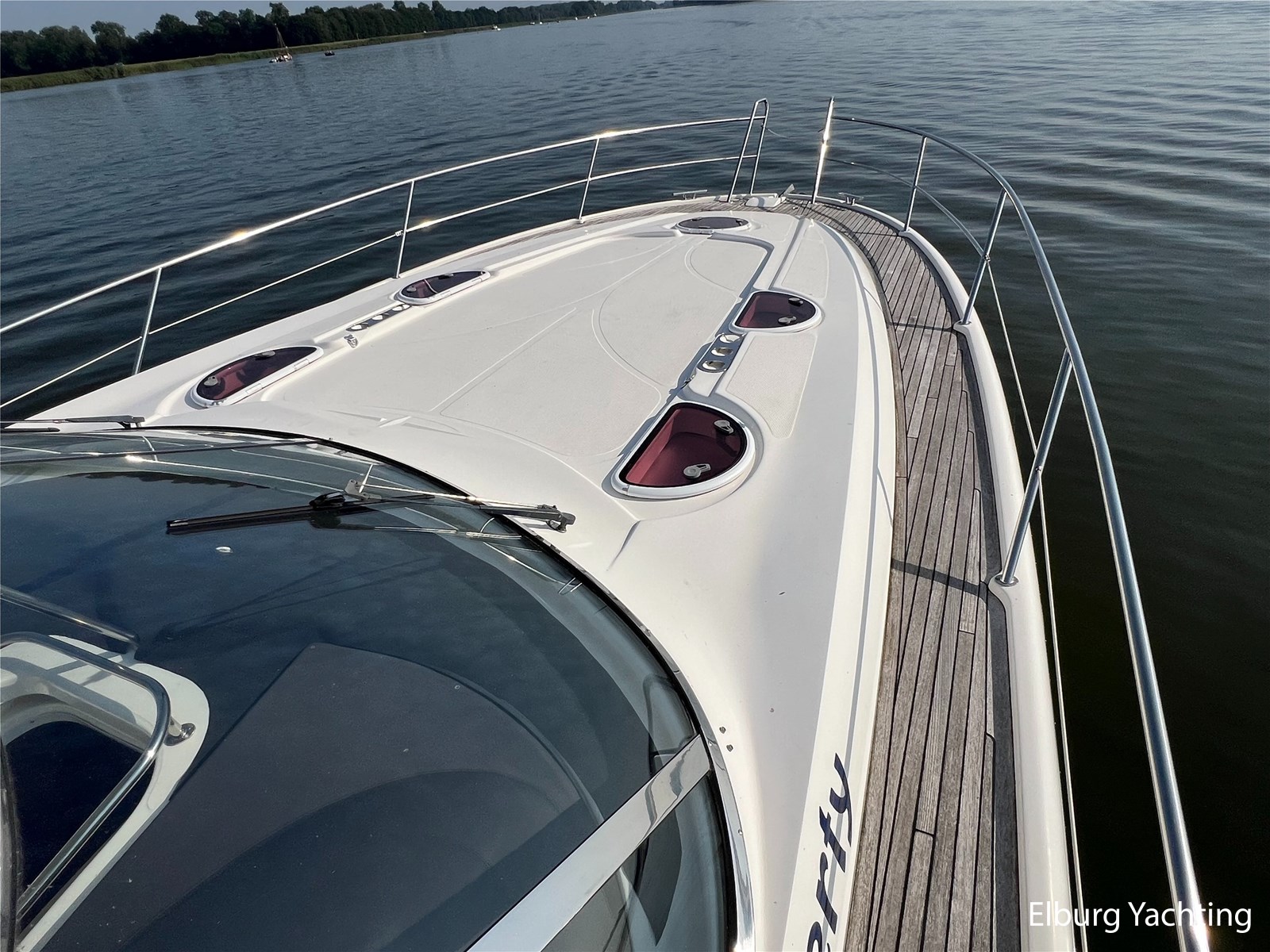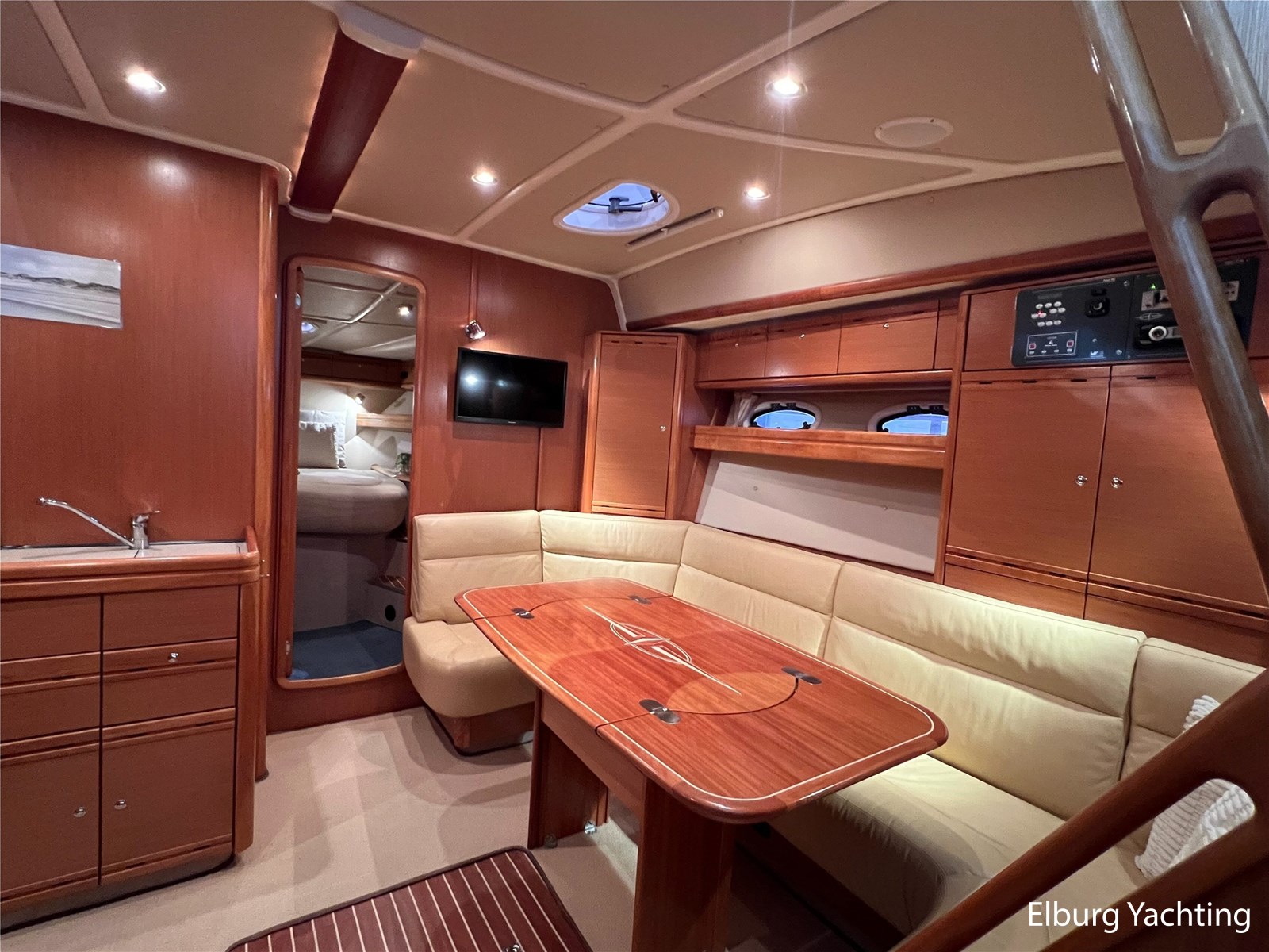 The Bavaria 42 HT Sport combines practical space and good sailing characteristics to be a sporty all-rounder suitable for both inland and open waters. The Bavaria 42 HT is characterized by its fixed superstructure (hardtop) with a large, electrical operated convertible roof, ideal for enjoying good weather or convenient retractable in inclement weather. The entire aft-deck can be closed off with a canopy featuring large removable windows. The hydraulically lowerable swim platform is convenient for bringing a dinghy or for easy entry and exit during a swim. The aft deck features a sunbed with ample storage space underneath. The engine room is accessible from the cockpit via an electrically operated hatch. A passenger bench is positioned facing the sailing direction of travel. The wetbar in the cockpit offers a grill, sink, and refrigerator. The saloon and galley are located below deck. The 2m+ headroom is immediately noticeable and creates a feeling of spaciousness. The forward cabin features a double French bed with its own en-suite bathroom (toilet/shower). A second double cabin is located amidships, also equipped with its own en-suite bathroom. In 2025, various upgrades were carried out, including new antifouling, anodes, life jackets, a wireless headset intercom system, new fenders with covers, stainless steel boat supports (also suitable for a jetski), a Wi-Fi installation, two smart TVs, a Bluetooth radio, custom-made mattresses, and a trickle charger.