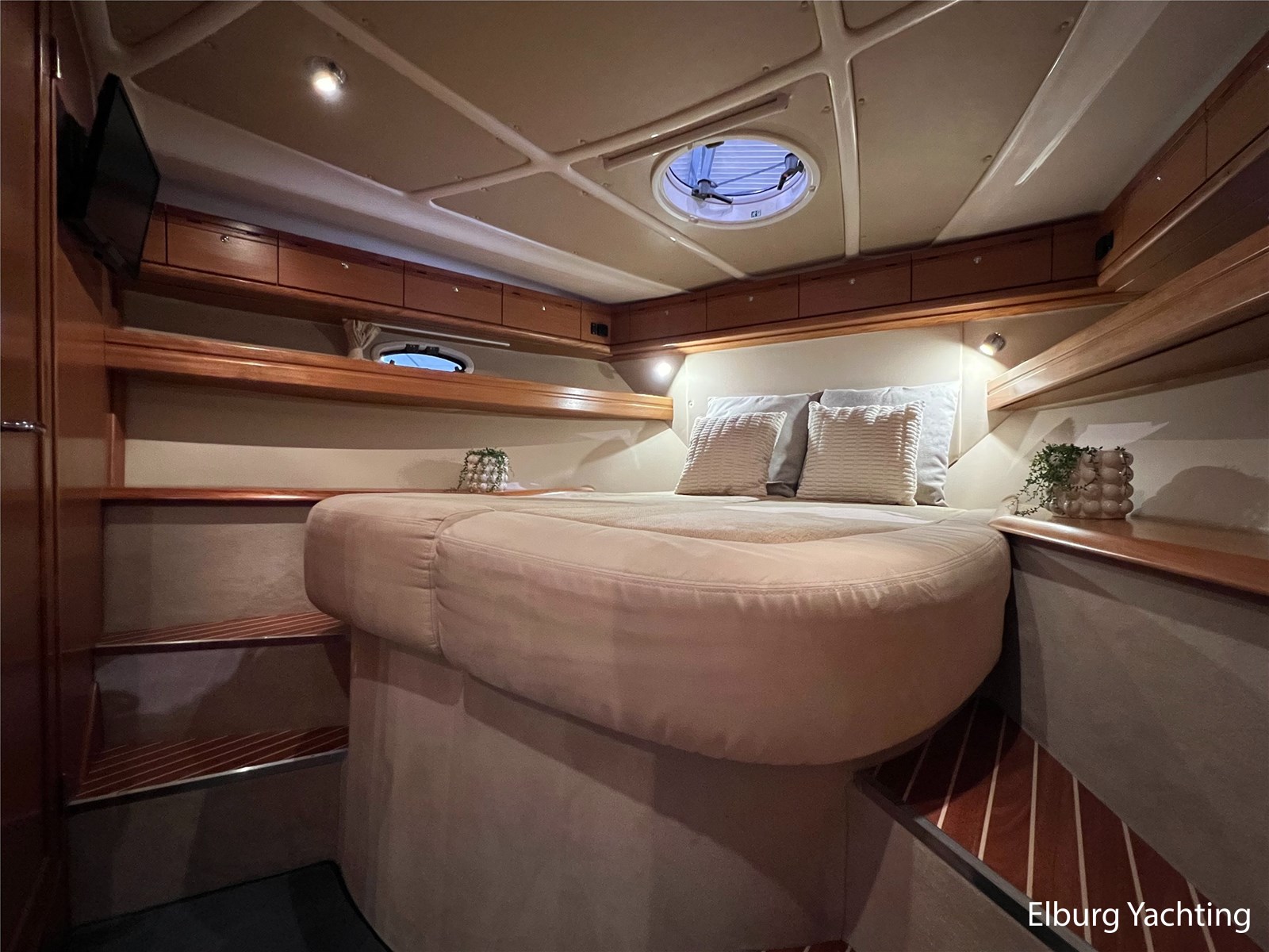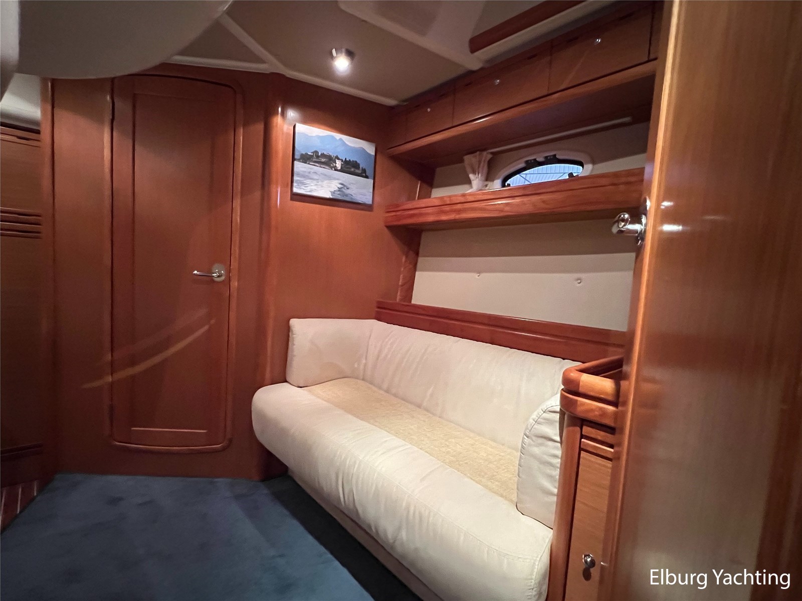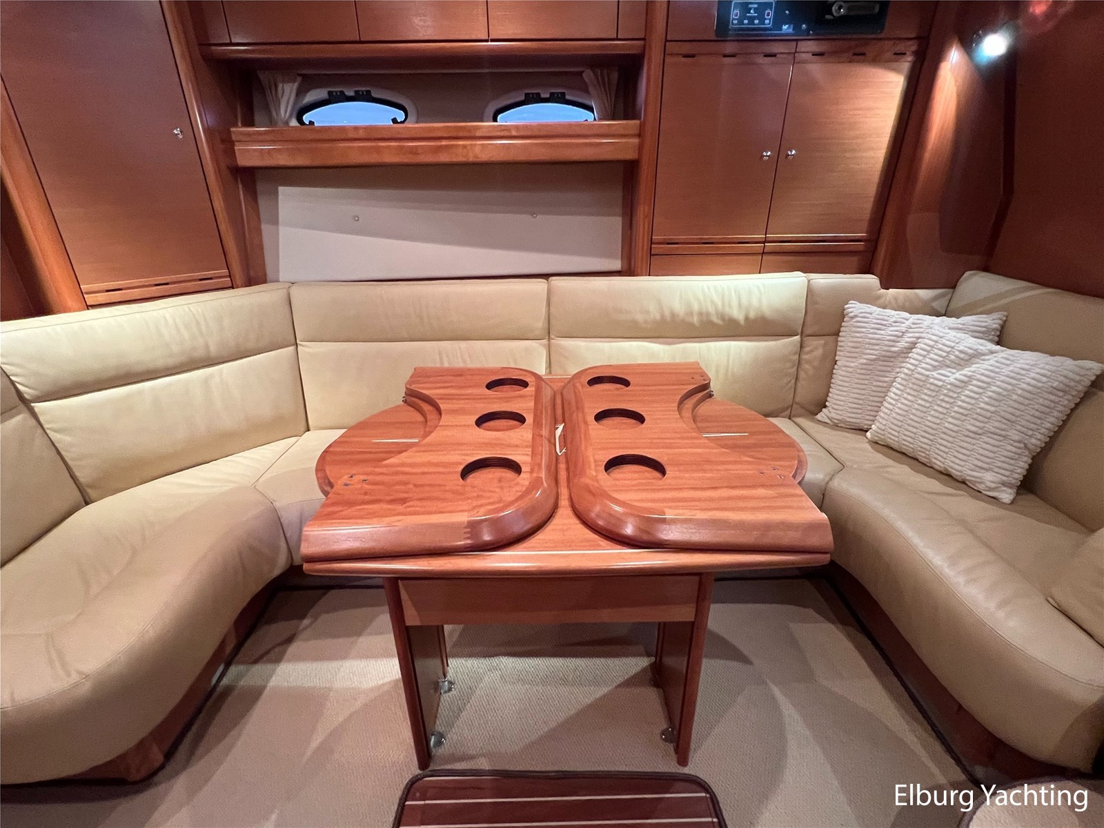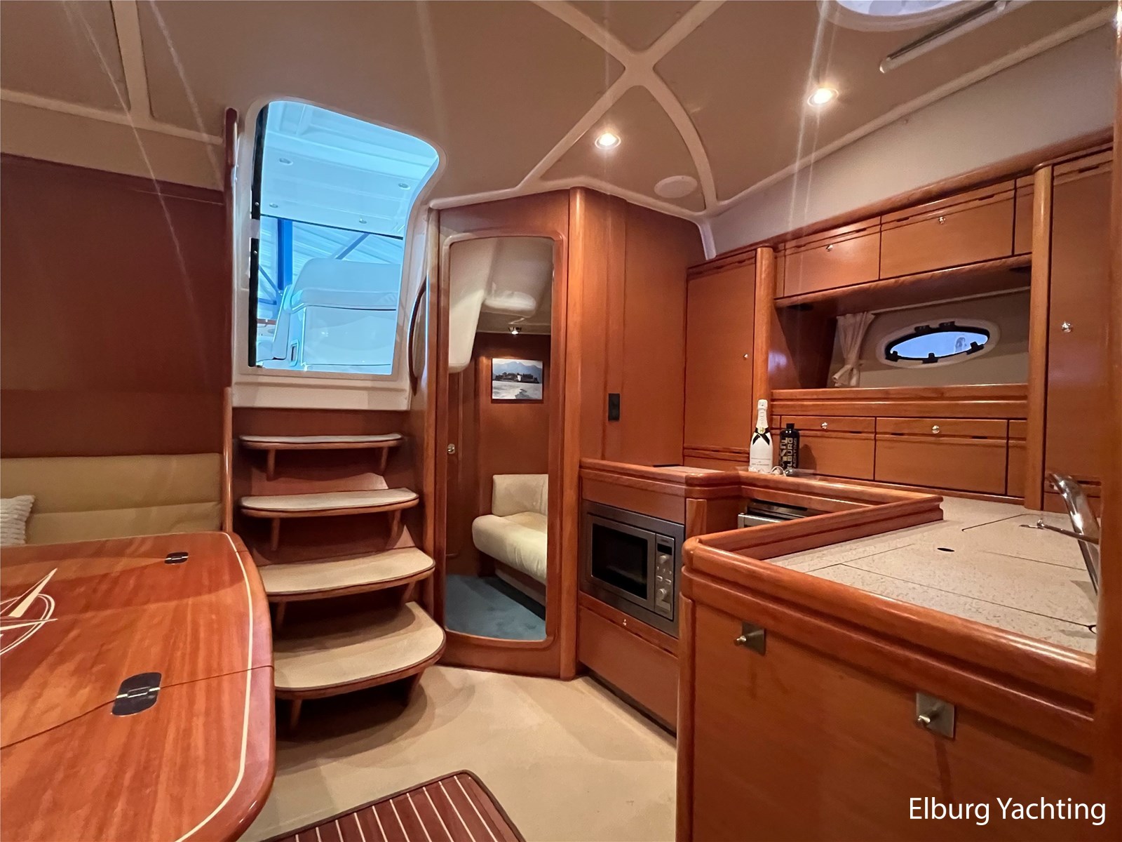 The Bavaria 42 HT Sport combines practical space and good sailing characteristics to be a sporty all-rounder suitable for both inland and open waters. The Bavaria 42 HT is characterized by its fixed superstructure (hardtop) with a large, electrical operated convertible roof, ideal for enjoying good weather or convenient retractable in inclement weather. The entire aft-deck can be closed off with a canopy featuring large removable windows. The hydraulically lowerable swim platform is convenient for bringing a dinghy or for easy entry and exit during a swim. The aft deck features a sunbed with ample storage space underneath. The engine room is accessible from the cockpit via an electrically operated hatch. A passenger bench is positioned facing the sailing direction of travel. The wetbar in the cockpit offers a grill, sink, and refrigerator. The saloon and galley are located below deck. The 2m+ headroom is immediately noticeable and creates a feeling of spaciousness. The forward cabin features a double French bed with its own en-suite bathroom (toilet/shower). A second double cabin is located amidships, also equipped with its own en-suite bathroom. In 2025, various upgrades were carried out, including new antifouling, anodes, life jackets, a wireless headset intercom system, new fenders with covers, stainless steel boat supports (also suitable for a jetski), a Wi-Fi installation, two smart TVs, a Bluetooth radio, custom-made mattresses, and a trickle charger.