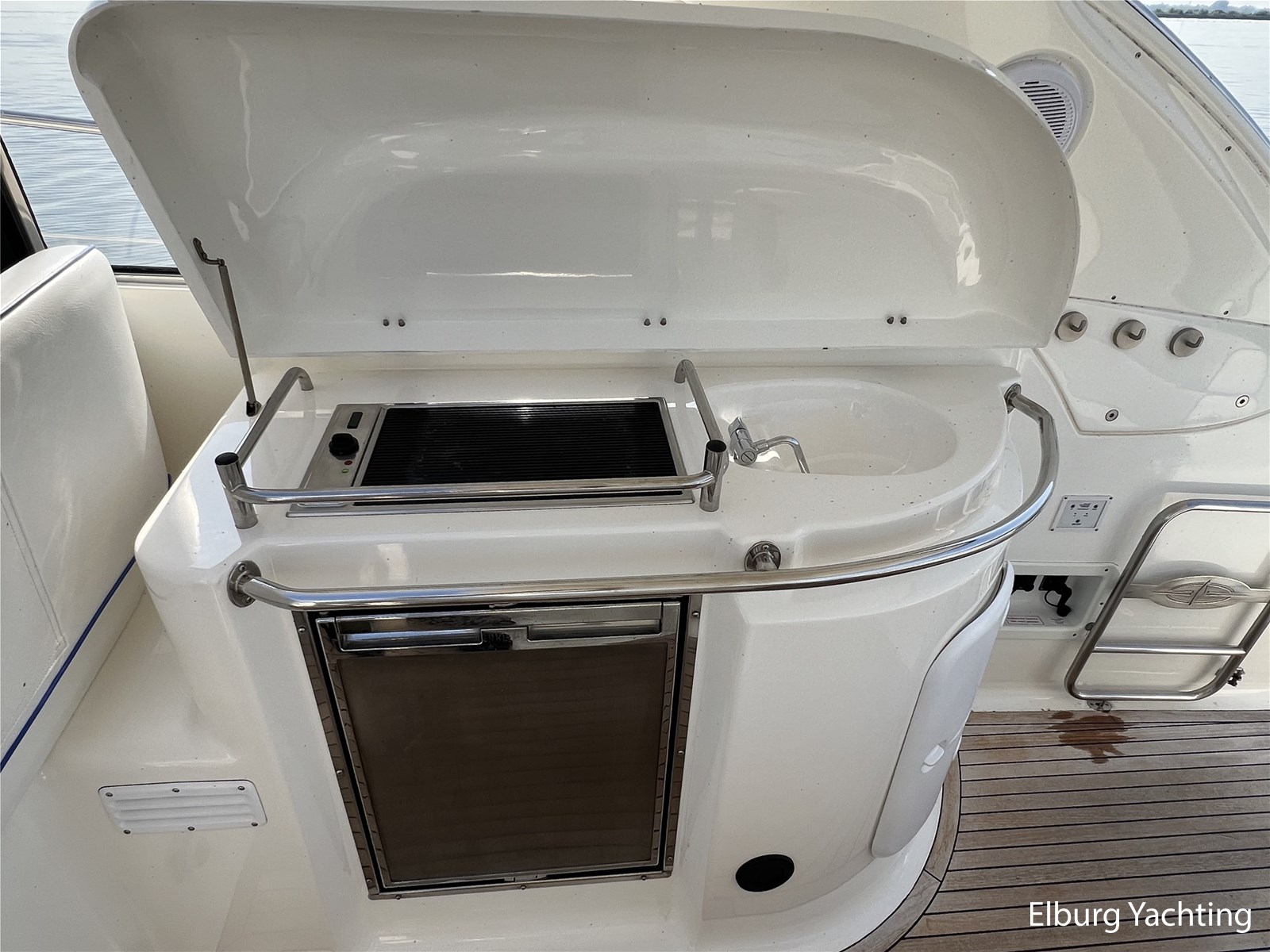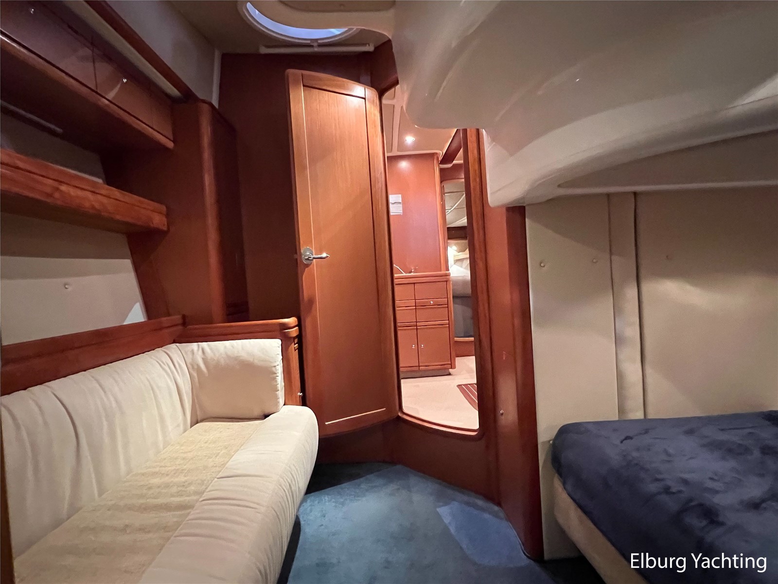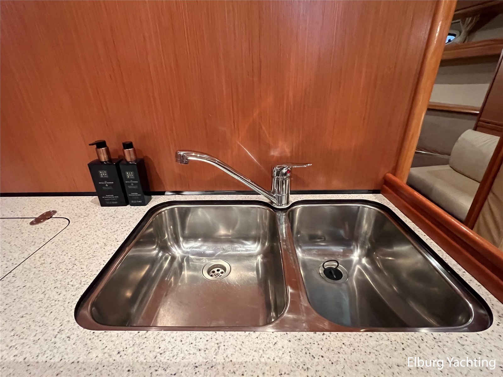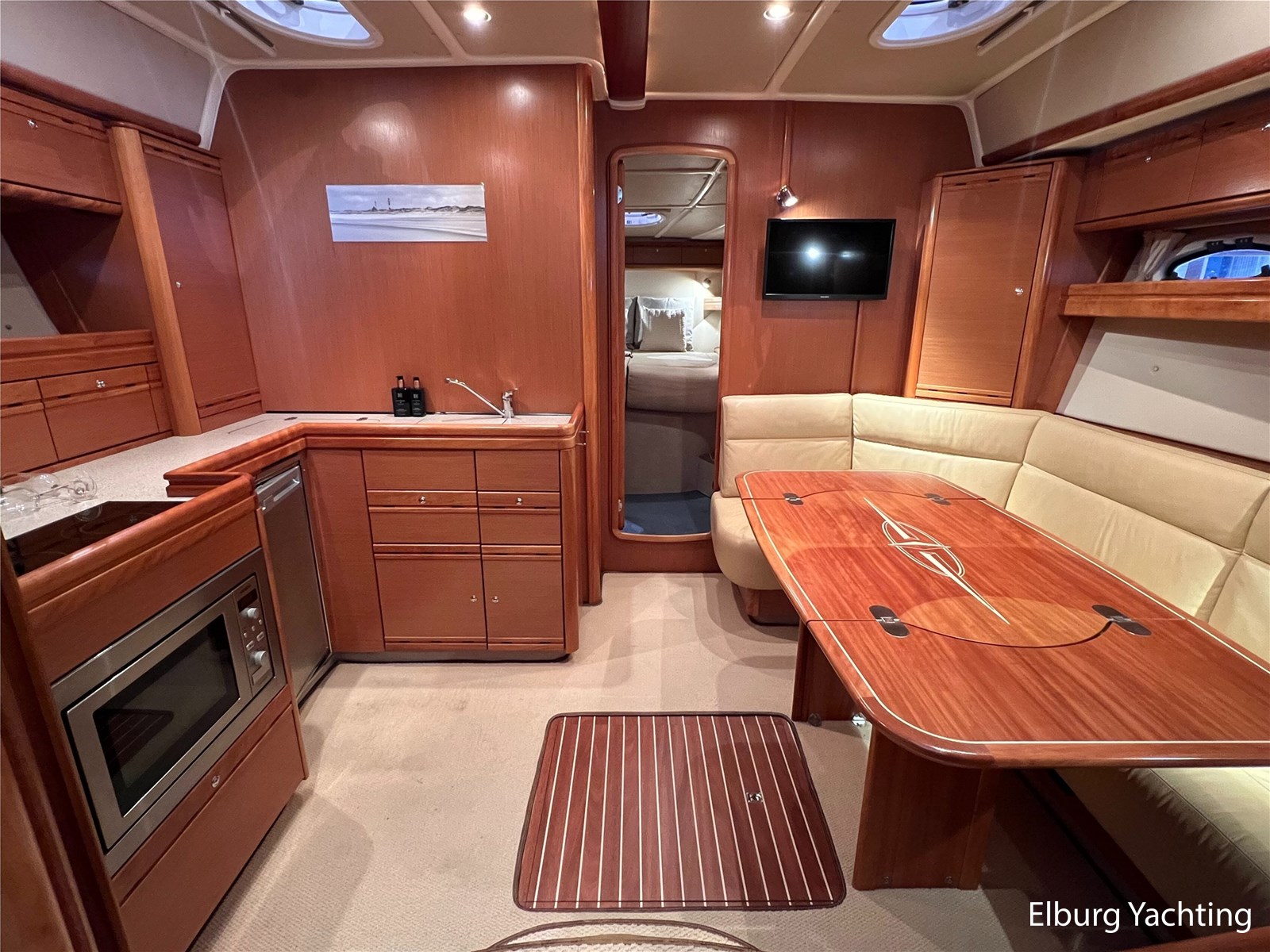 The Bavaria 42 HT Sport combines practical space and good sailing characteristics to be a sporty all-rounder suitable for both inland and open waters. The Bavaria 42 HT is characterized by its fixed superstructure (hardtop) with a large, electrical operated convertible roof, ideal for enjoying good weather or convenient retractable in inclement weather. The entire aft-deck can be closed off with a canopy featuring large removable windows. The hydraulically lowerable swim platform is convenient for bringing a dinghy or for easy entry and exit during a swim. The aft deck features a sunbed with ample storage space underneath. The engine room is accessible from the cockpit via an electrically operated hatch. A passenger bench is positioned facing the sailing direction of travel. The wetbar in the cockpit offers a grill, sink, and refrigerator. The saloon and galley are located below deck. The 2m+ headroom is immediately noticeable and creates a feeling of spaciousness. The forward cabin features a double French bed with its own en-suite bathroom (toilet/shower). A second double cabin is located amidships, also equipped with its own en-suite bathroom. In 2025, various upgrades were carried out, including new antifouling, anodes, life jackets, a wireless headset intercom system, new fenders with covers, stainless steel boat supports (also suitable for a jetski), a Wi-Fi installation, two smart TVs, a Bluetooth radio, custom-made mattresses, and a trickle charger.