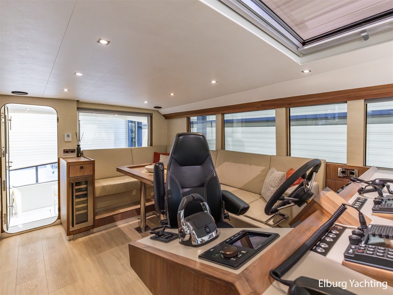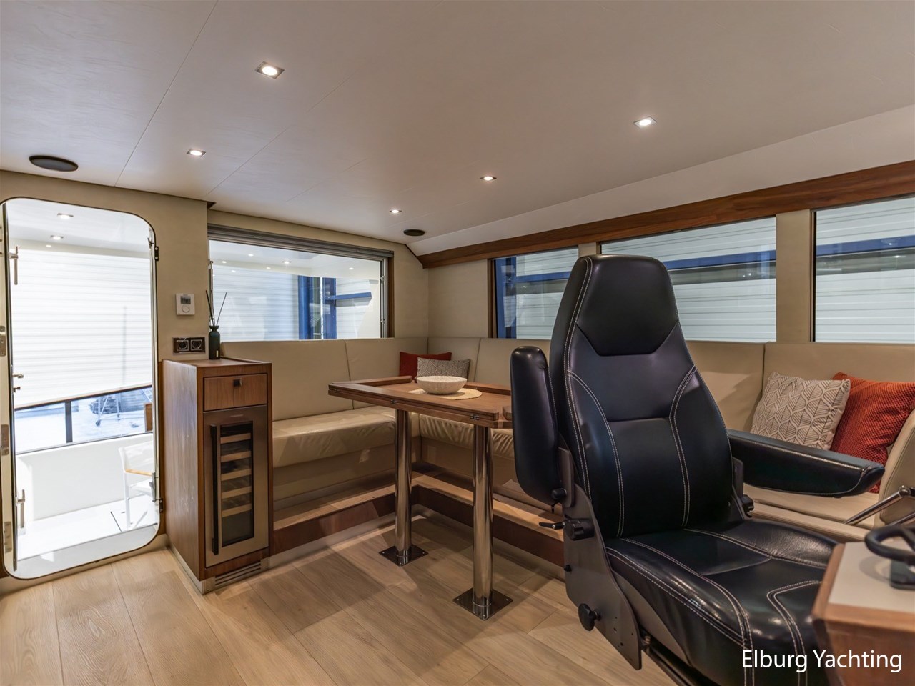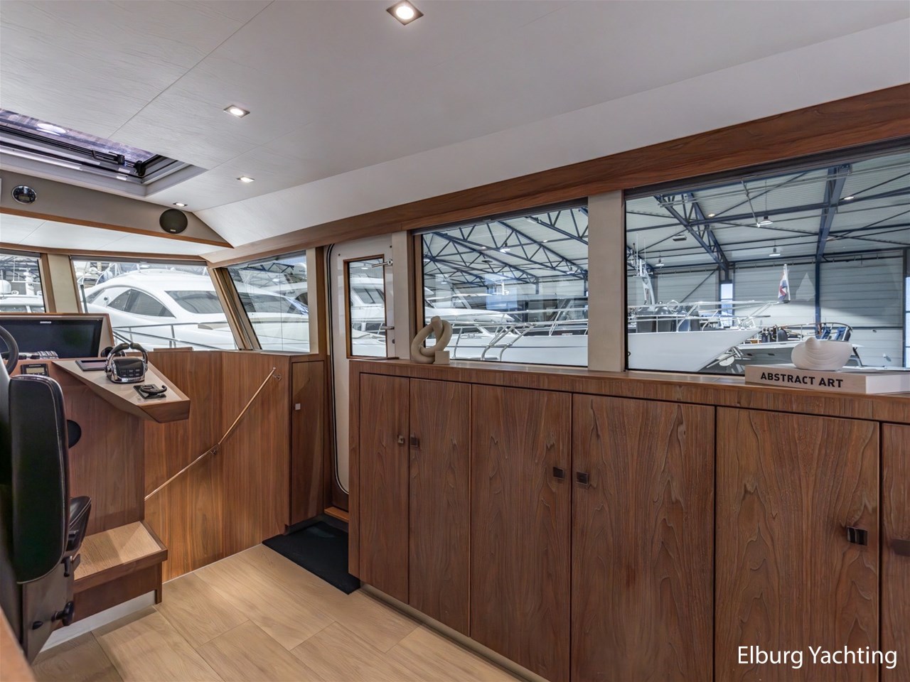 The ship has been proofen well maintained under the current and first owner. The extensive and professional Simrad navigation tools, AIS transponder and Simrad 4G radar ensure a comfortable trip with a high level of safety. The high-quality 2-component polyurethane blue hull coating is in good condition together with the rest of the ship. The Volvo Penta D6 diesel engines (435 hp each) drive the propellers built into half tunnels, which ensures less vulnerability, better protection and less draft. The D-fenders all around provide even greater stability (= safety) in bad weather. Plenty of storage space due to numerous cupboards and drawers throughout the ship. The ship is equipped with: Spacious and sunken open cockpit for a sheltered seat with fixed bench incl. accompanying cushions, the cockpit is equipped with a canopy with night/work lighting and can be extended with a canvas sunshade, cockpit with closed (deep) lockers, spacious storage hatch in the stern, foldable transom that can be used as a bathing platform, wheelhouse/saloon entrance via rear and side door (SB), full view all-round from the steering position, luxurious Norsapp helm seat, professionally furnished dashboard with high-quality Simrad navigation instruments, There is a WiFi on-board network via 4G, for the co-pilot there is an electrically height-adjustable co-pilot seat, which in rest position can also be adjusted to a cozy seat at the saloon table, the interior is equipped with comfortable underfloor heating, blinds and pleated blinds, Samsung TV on lift in saloon, Samsung TV in front cabin, large sliding roof above steering position, Bosch kitchen appliances with an induction cooking plate / microwave oven / dishwasher, mosquito screens, Samsung washer/dryer combination, electrically equipment housed in the "technical room". In the bow there is room for storage of items such as mooring lines and fenders incl. the anchor chain. The engine room has an automatic extinguishing system & double fuel filters. The radar bracket is electrically foldable, as is the transom, which can be electrically operated both in the cockpit outside and on the dashboard inside. A comfortable sailing speed for inland waterways is around 6 á 7 knots, with a total consumption of approximately 10 liters per hour. The maximum speed is approximately 25 knots. A more extensive consumption table is available on request. The clearance height with the folded bracket is approx. 3.60 meters and with the bracket up it is approx. 6.20 meters.