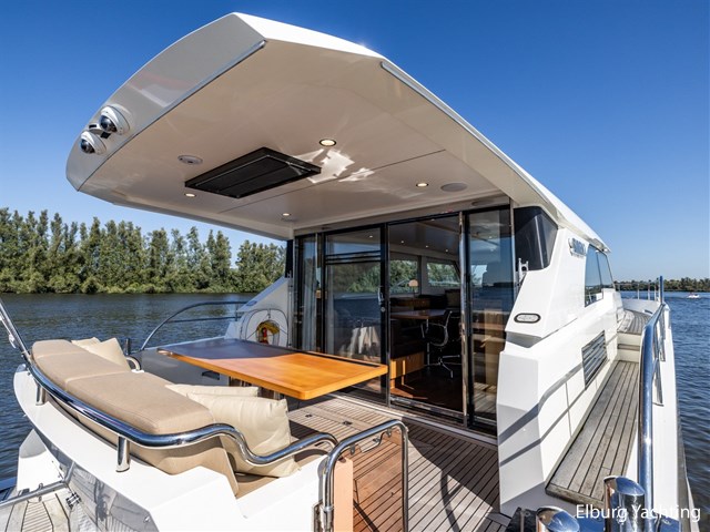 The Altena 52 - Fast Going - Aluminium is a fast going aluminum motor yacht designed by Theo Werner, built by the renowned Dutch shipyard Altena. The cockpit, saloon and wheelhouse are on single level floor and in open connection with each other. The stainless steel sliding doors provide access to the spacious living saloon. Below deck, this yacht offers sleeping accommodation for five people, divided into a French bed in the forward cabin / 2 x single bed midships on SB / 1 single bed midships on PS. All cabins have private shower and toilet facilities. In the floor of the open cockpit you have access to a spacious storage room and the heart of the electrical installations. A watertight door from the spacious storage room gives access to the engine room. Unique are the two integrated side stairs (SB+PS) that can be adjusted to scaffold height for easy step on. This Altena 52 is equipped with lighting and a heating element in the ceiling over the aft deck, the cockpit can be completely closed off with a removable tent, many stainless steel details on deck, 2 x door to bathing platform, sun bed on foredeck with removable cushions, storage space in forepeek for fenders and lines, lots of light and good visibility all around through the large window area so you can enjoy the ultimate feeling on the water, electric pleated curtains, TV on elevator, Volvo Penta docking station, AIS, 2 x electrically operated telescopic spud poles (fore + aft) making mooring child's play and access to the most beautiful anchor locations, storage in floor by galley, tanks with manholes, professionally equipped engine room with good accessibility to the technology, clearance approx. 3.45m.