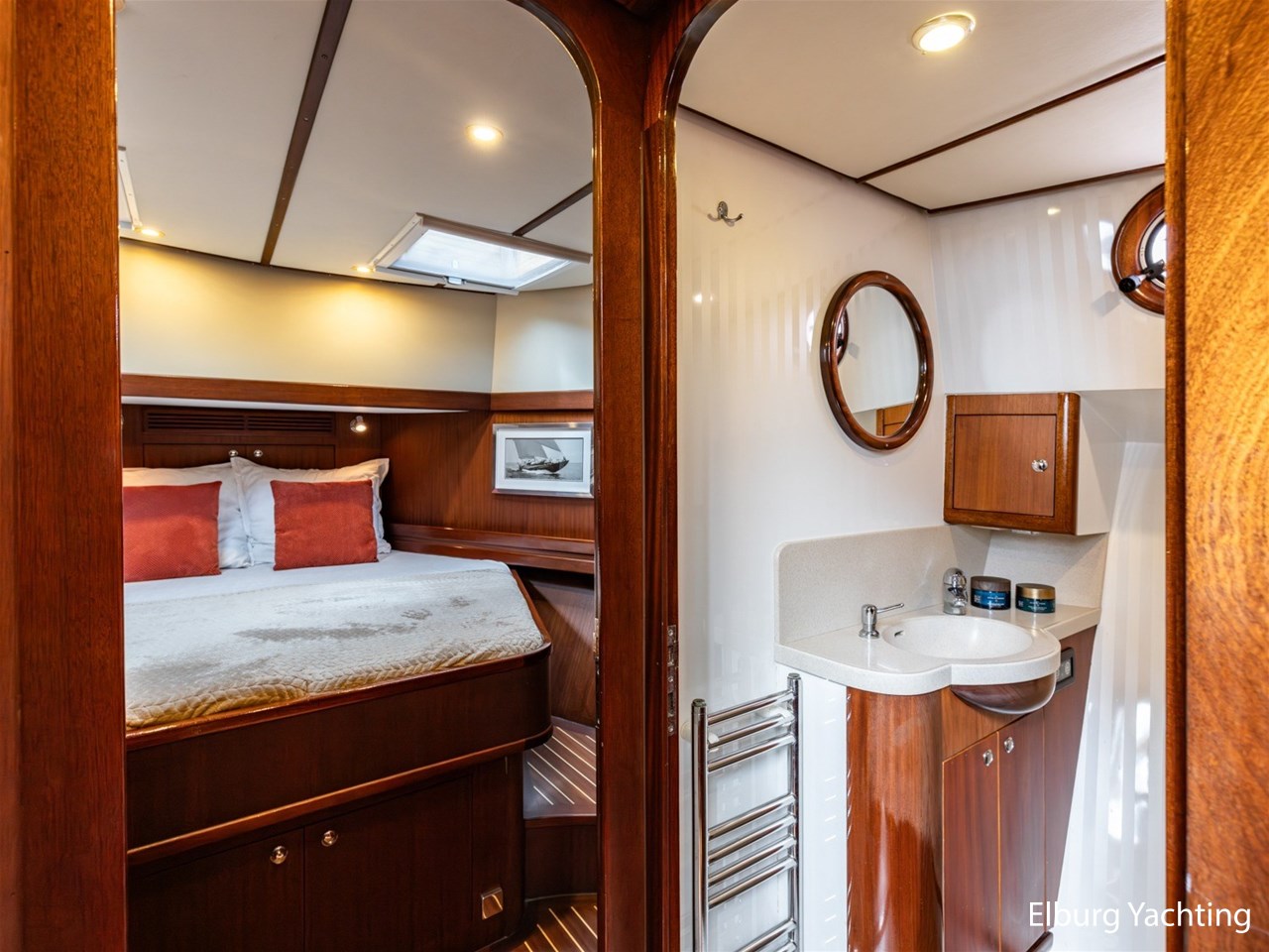 Deze zeewaardige en complete Stentor 1800 is reeds voorzien van een nieuw verfsysteem (opbouw en romp). Ze is getekend door Vripack en in 2002 afgebouwd door de kwalitatief ijzersterke jachtwerf Stentor. Het jacht is degelijk gebouwd met het oog op zeewaardigheid (CE-A). In de afgelopen jaren heeft de huidige eigenaar fors geïnfesteerd in dit jacht. Onder andere is het jacht voorzien van een Raymarine Autopilot systeem op beide stuurstanden, verder is het jacht reeds voorzien van een zonnepanelensysteem met Victron Cerbo besturing welke op afstand afleesbaar is en is er een Victron Quattro omvormer / acculader geplaatst. Het jacht is geschikt voor zeegaande reizen, de hydraulische stabilisatoren in combinatie met het rondspant casco draagt bij aan het comfort op zee. Er is een back-upsysteem voor de hydrauliek geïnstalleerd. De lay-out van dit jacht is goed doordacht en kenmerkt zich met name door het fraaie, ruim opgezette achterdek dat is voorzien van een ruime U-vormige bank, met dubbele tafels en een degelijke achtertent van 2020. De tweede stuurstand bevindt zich in het vaste stuurhuis en is toegankelijk via de schuifdeuren in beide ruime gangboorden. Het vaste stuurhuis dient tevens als Salon en is uitgerust met een comfortabele L-bank en beschikt over veel lichtinval middels de grote raampartijen. De kombuis is beneden het achterdek en is voorzien van een ruim opgezette keuken in L-vorm en een comfortabele dinette. De masterbedroom bevindt zich achter de kombuis en is voorzien van een tweepersoons vrijstaand bed welke diagonaal in de kamer gesitueerd is. Veder beschikt de masterbedroom over veel kastruimte en een ensuite badkamer met wastafel, elektrisch toilet en douchecabine. Voor is de gastenhut gesitueerd met een tweepersoons vrijstaand bed. Vanuit de gang is de tweede badkamer te bereiken alsmede de overzichtelijke machinekamer. De romp en opbouw zijn in 2024 opnieuw gespoten. Voor vragen en/of het maken van een afspraak bent u van harte welkom bij Elburg Yachting.
