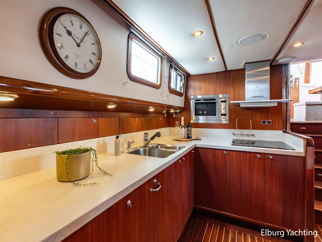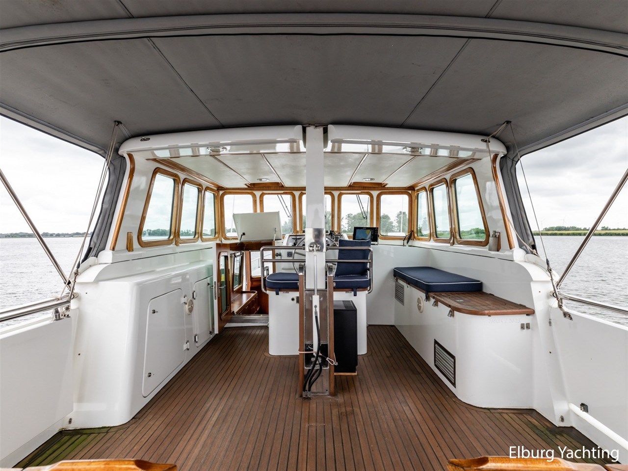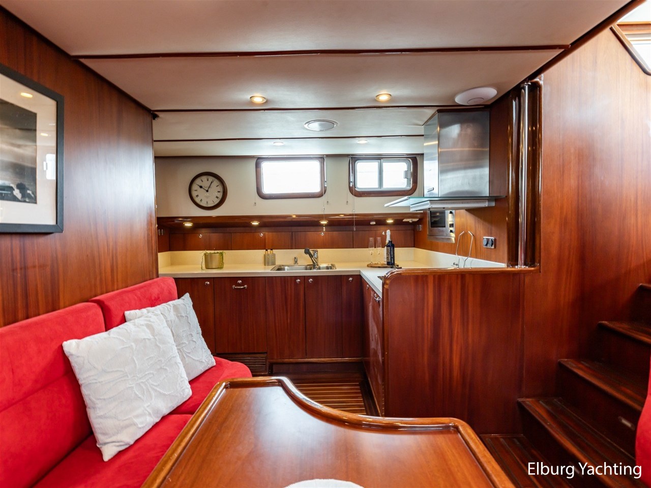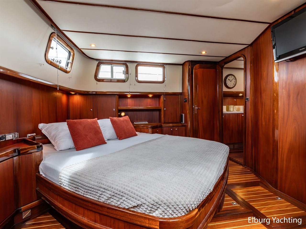 Massief scheeps teakhouten betimmering met een teak vloer door het gehele jacht