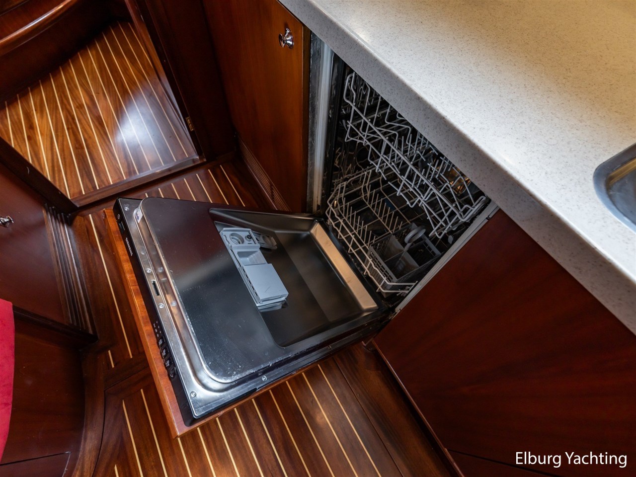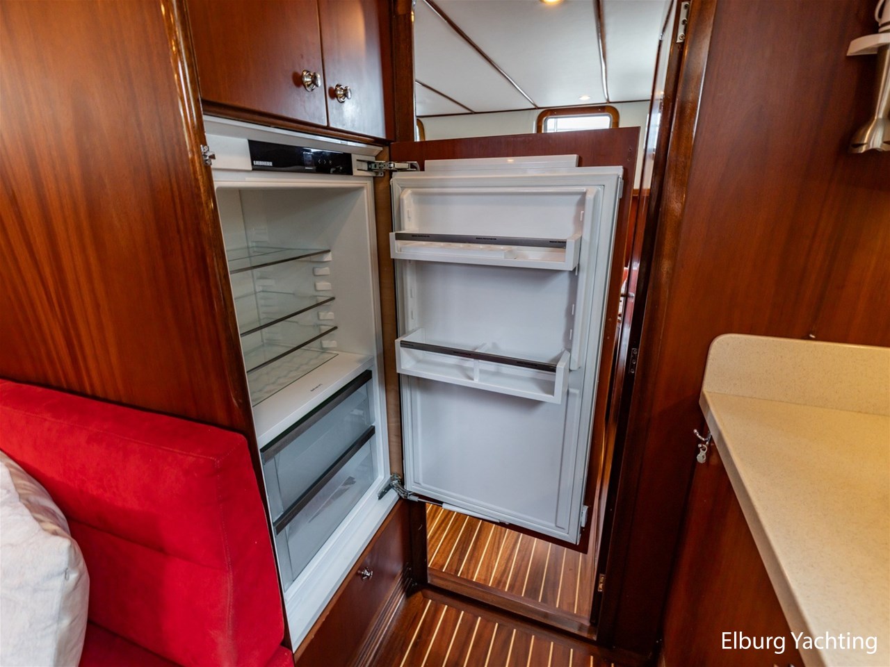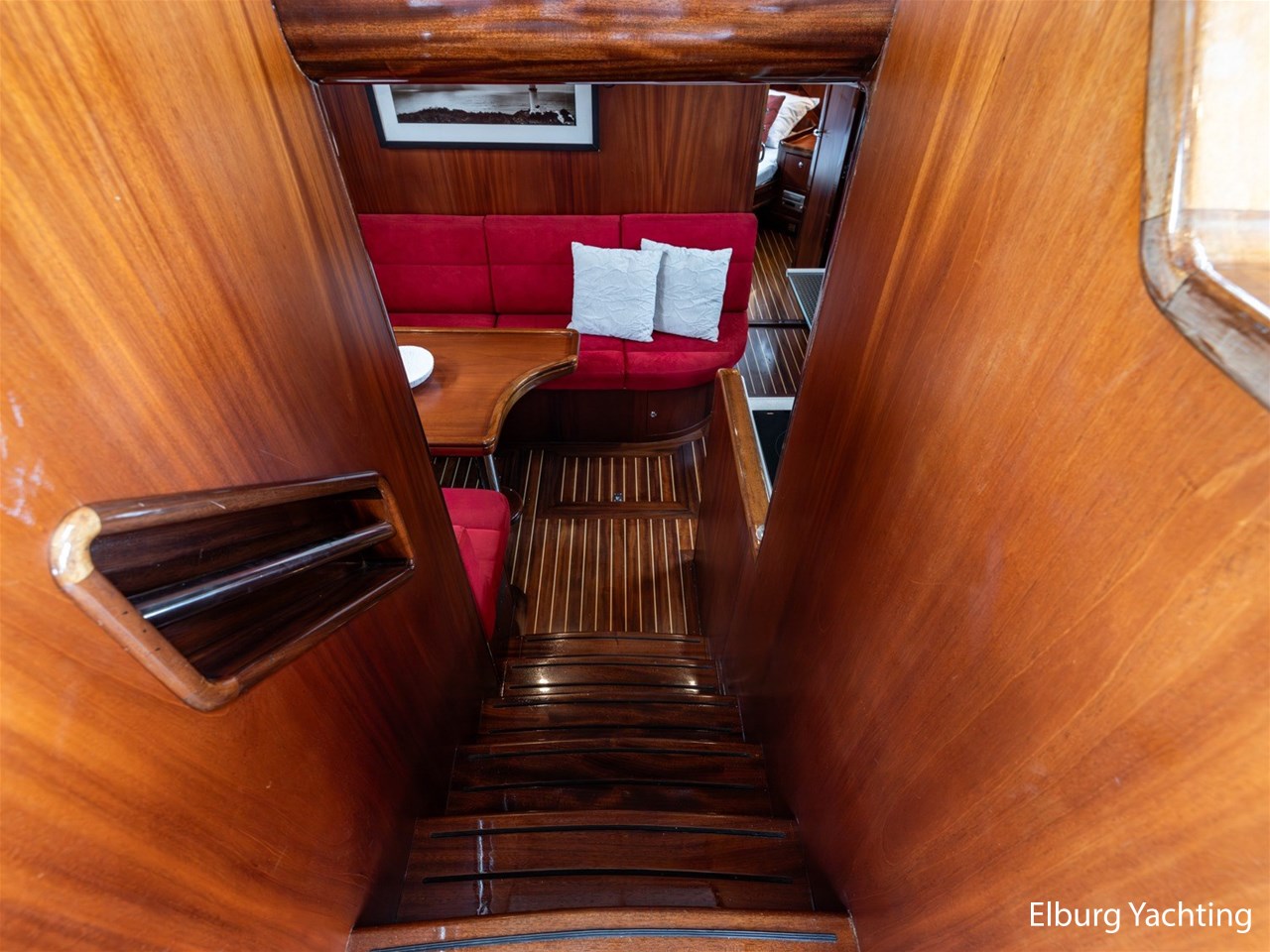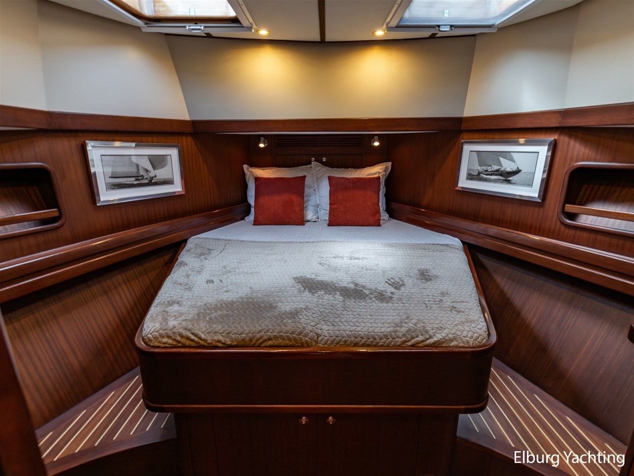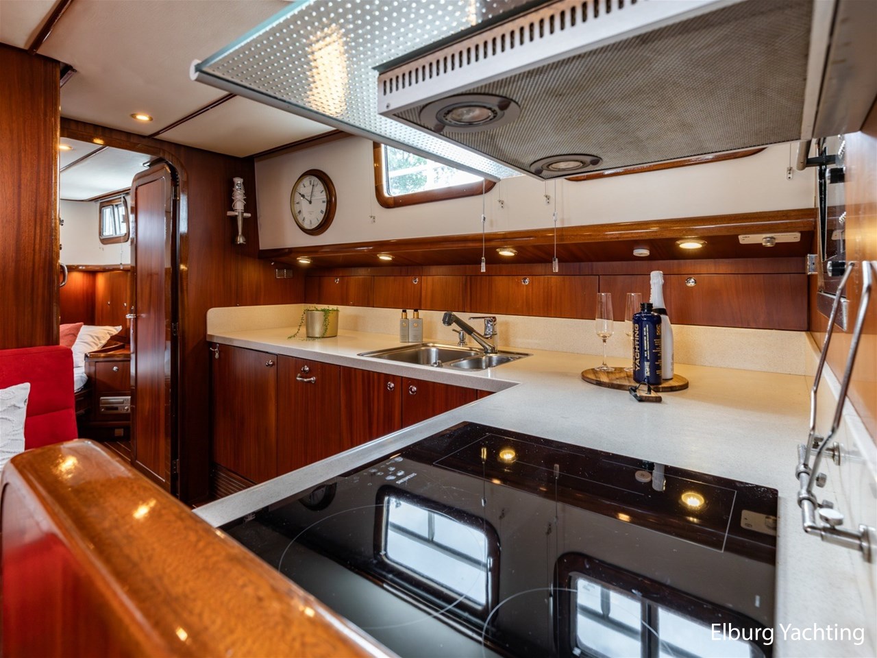 Massief scheeps teakhouten betimmering met een teak vloer door het gehele jacht