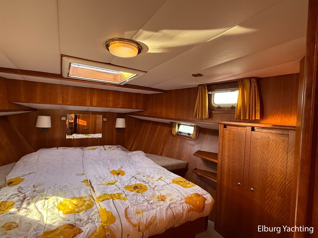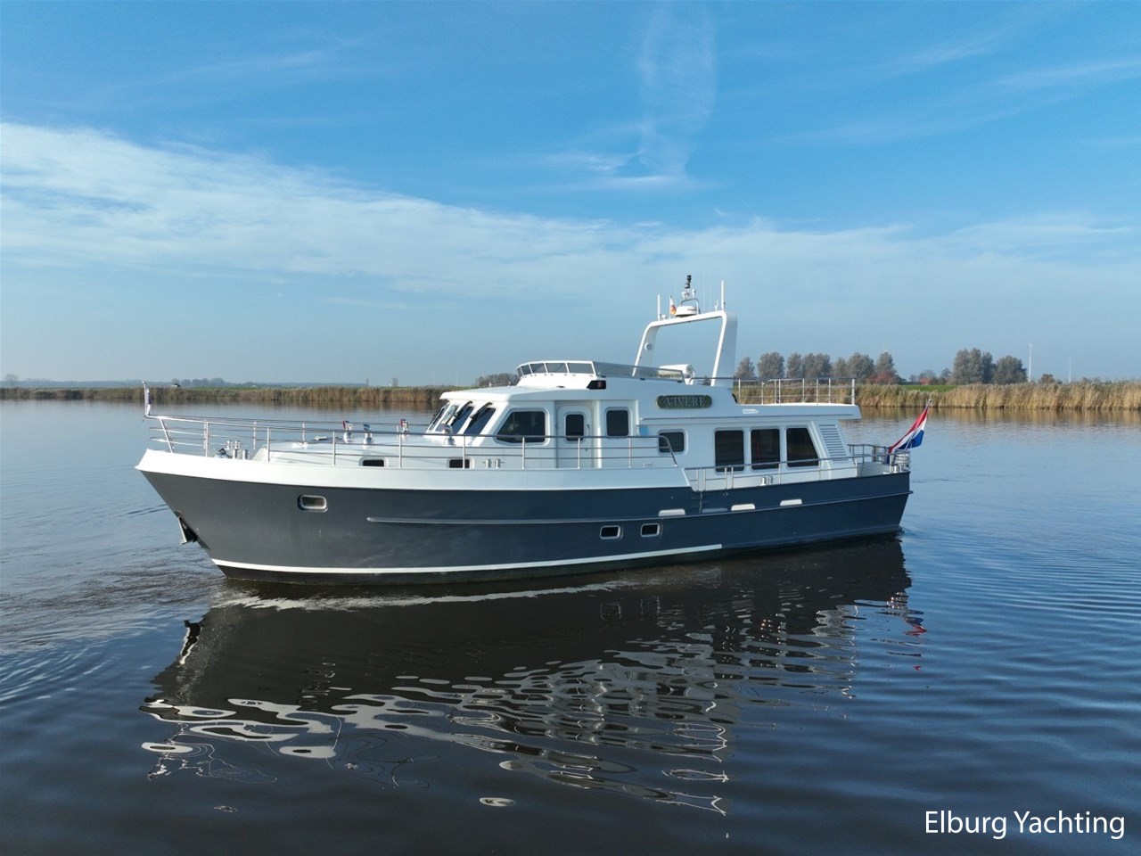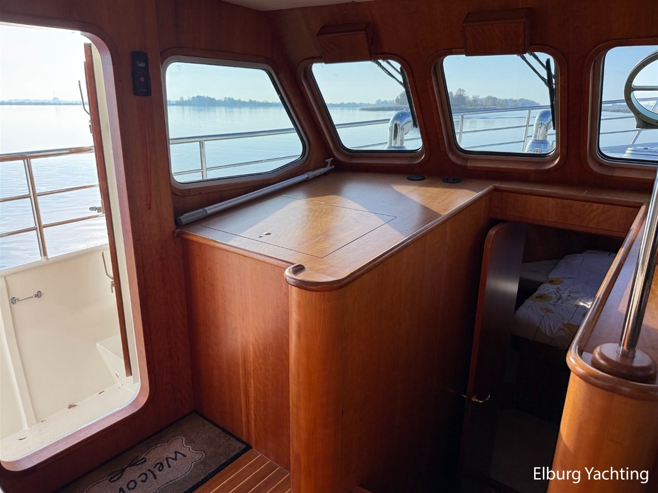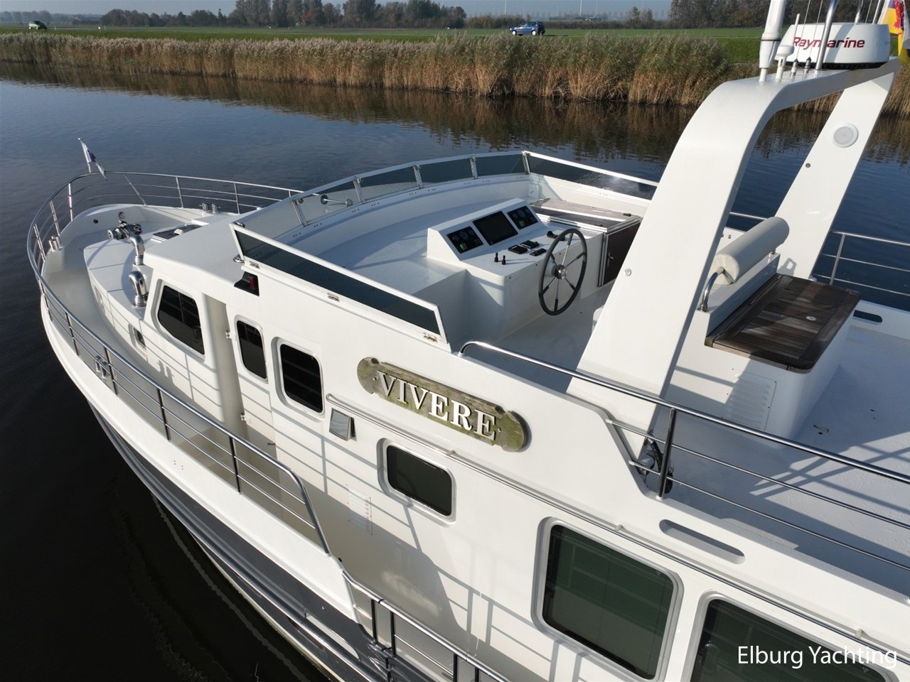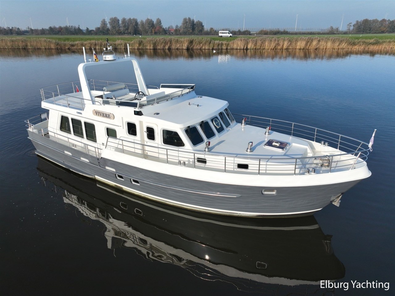 Extremely sturdy Altena Blue Water Trawler 50 - Variant (with the open afterdeck). The hull of the “Vivere” dates from the year 2001 but in 2021 the yacht was very thoroughly refitted on behalf of her current owner, with the following being addressed, among other things: Paint system hull + superstructure, DMS Stabilisers (2 x), interior parts + interior lining, kitchen equipment renewed plastic water tank, Raymarine navigation equipment, Hydronautica remote control for bow and stern thruster and controls engines, also the electrical installation (shore power, isolator, inverter and battery charger) has been renewed. The yacht is characterised by the robust “Trawler” appearance that makes her also a widely deployable yacht. The twin John Deere engines in combination with the DMS stabilisers ensure a fine sailing experience even on the larger waters. The vertical clearance with the mast and windows down on the flybridge is appr. 3.45 metres, allowing her to sail the French canals. The layout of the Altena Blue Water Trawler 50 is very practical. The yacht features three cabins and 2 spacious wet rooms with toilet and shower. The saloon features a spacious round seat combined with the practical galley. The open afterdeck is accessible at floor-level from the saloon and has a cosy aft seating area. The engine room is accessible from the afterdeck. From the saloon, you can easily enter the fixed wheelhouse. The fixed wheelhouse has two exterior doors as well as access to the spacious flybridge. The lower deck of the wheelhouse gives access to the sleeping quarters. The yacht is currently on location and can be visited by appointment. For questions and/or to make an appointment, you are welcome 7 days a week at Elburg Yachting.