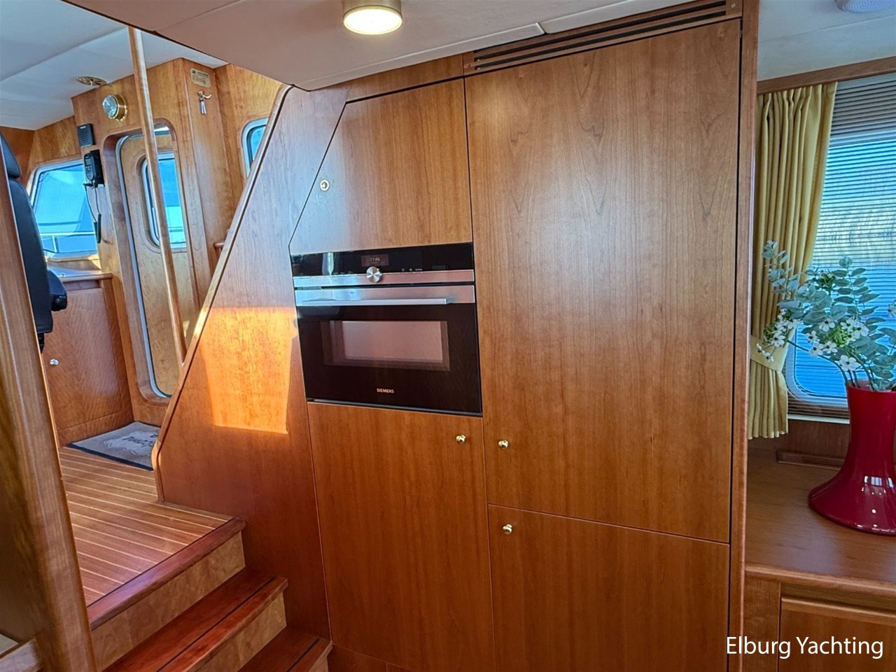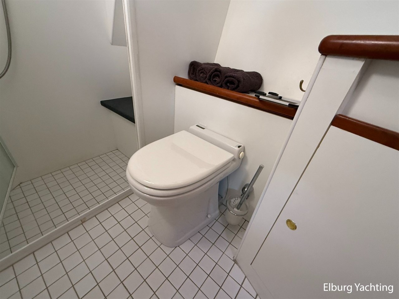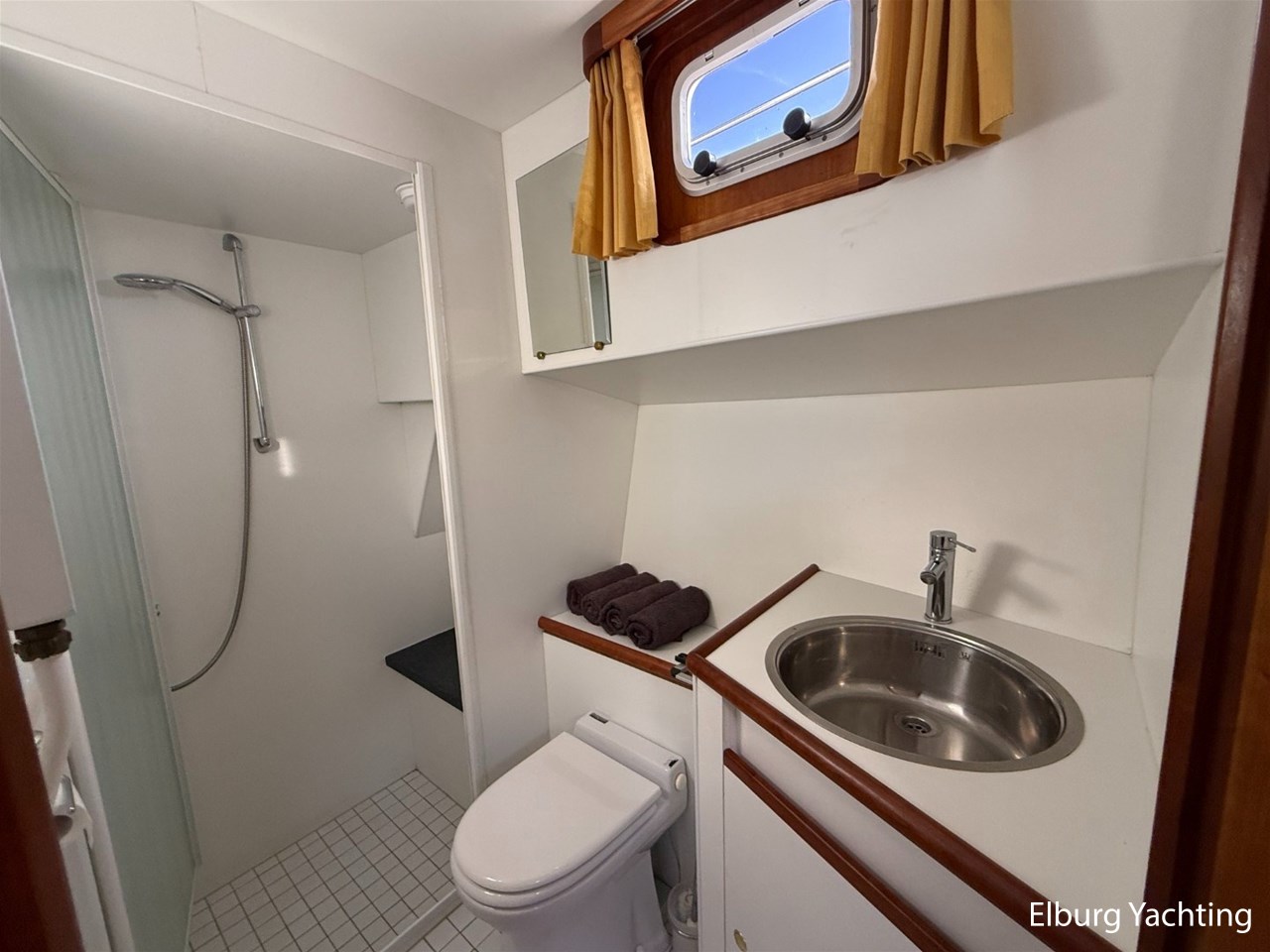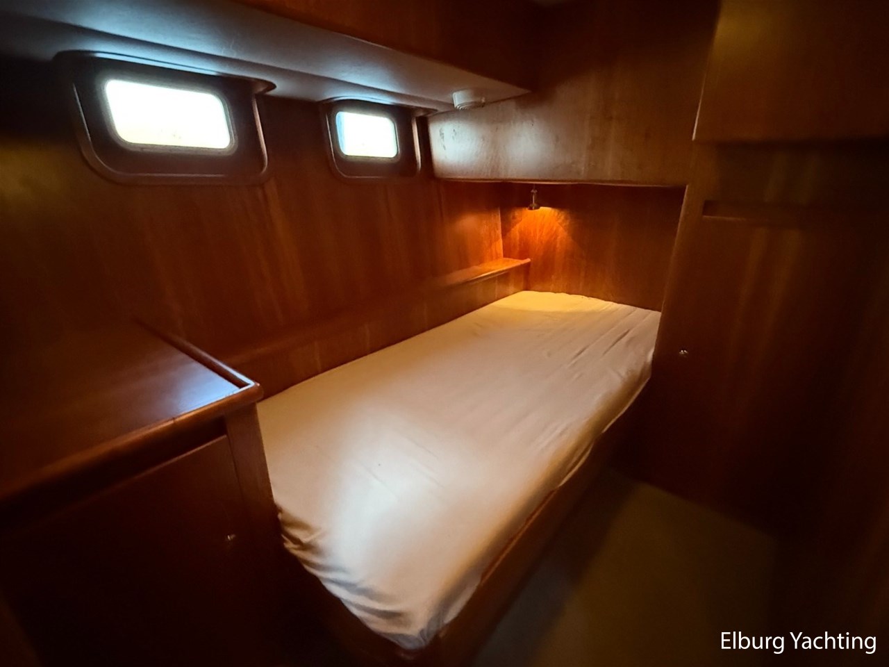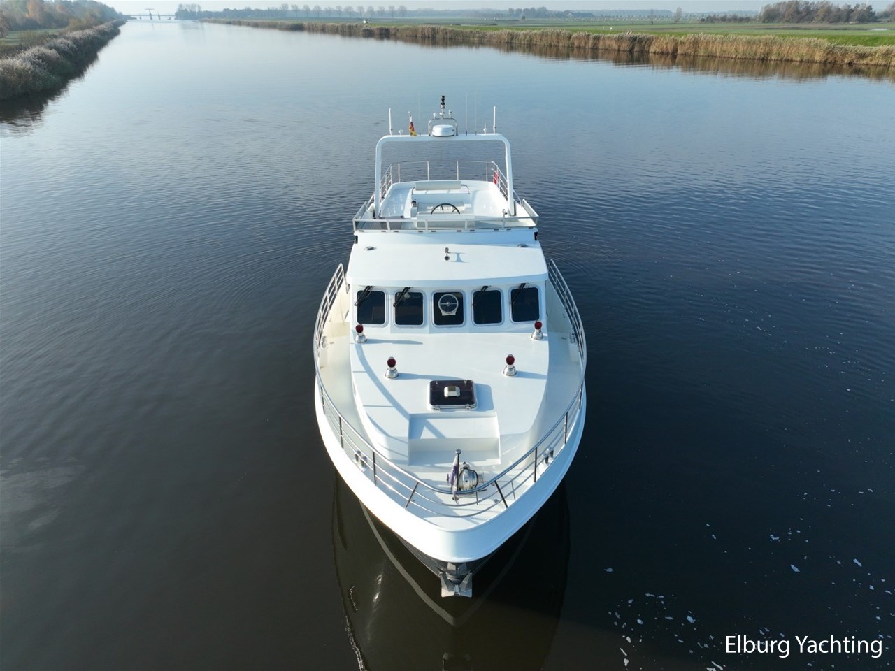 Extremely sturdy Altena Blue Water Trawler 50 - Variant (with the open afterdeck). The hull of the “Vivere” dates from the year 2001 but in 2021 the yacht was very thoroughly refitted on behalf of her current owner, with the following being addressed, among other things: Paint system hull + superstructure, DMS Stabilisers (2 x), interior parts + interior lining, kitchen equipment renewed plastic water tank, Raymarine navigation equipment, Hydronautica remote control for bow and stern thruster and controls engines, also the electrical installation (shore power, isolator, inverter and battery charger) has been renewed. The yacht is characterised by the robust “Trawler” appearance that makes her also a widely deployable yacht. The twin John Deere engines in combination with the DMS stabilisers ensure a fine sailing experience even on the larger waters. The vertical clearance with the mast and windows down on the flybridge is appr. 3.45 metres, allowing her to sail the French canals. The layout of the Altena Blue Water Trawler 50 is very practical. The yacht features three cabins and 2 spacious wet rooms with toilet and shower. The saloon features a spacious round seat combined with the practical galley. The open afterdeck is accessible at floor-level from the saloon and has a cosy aft seating area. The engine room is accessible from the afterdeck. From the saloon, you can easily enter the fixed wheelhouse. The fixed wheelhouse has two exterior doors as well as access to the spacious flybridge. The lower deck of the wheelhouse gives access to the sleeping quarters. The yacht is currently on location and can be visited by appointment. For questions and/or to make an appointment, you are welcome 7 days a week at Elburg Yachting.
