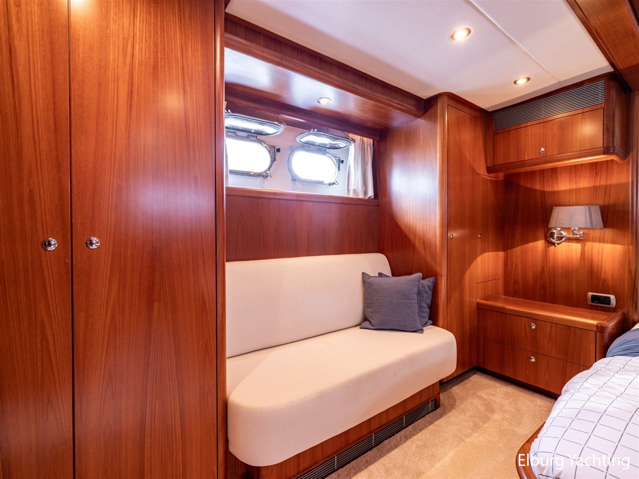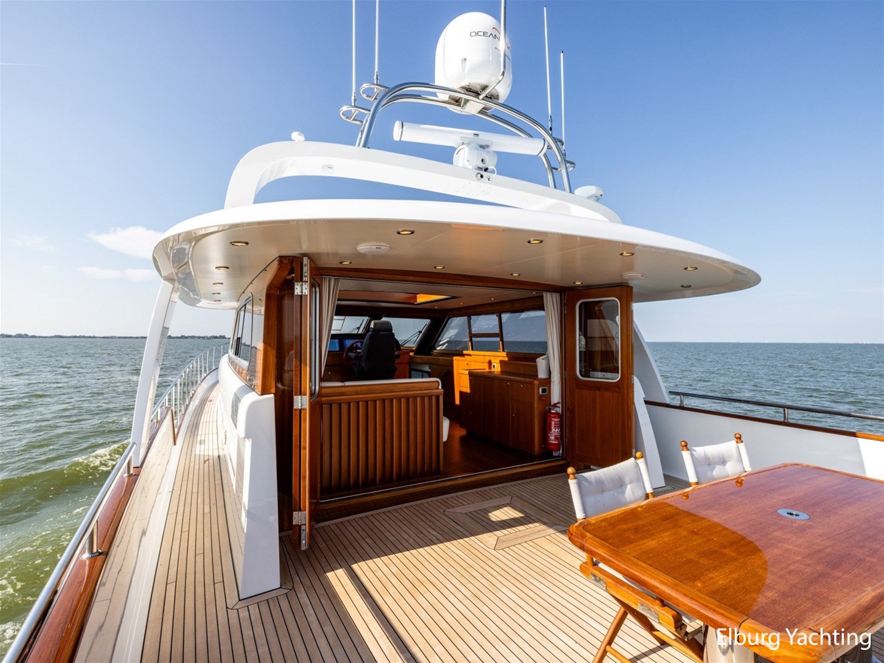 De Mulder 70 Wheelhouse is een ruim en comfortabel gebouwd motorjacht welke is gebouwd door de topindustrie van de Nederlandse jachtbouw. Elegant en klassiek/modern gelijnd jacht met een zeer hoogwaardig afwerkingsniveau. Mulder 70 Wheelhouse is uitermate geschikt voor lange tochten voor binnen- en buitenwateren. Het jacht is in 2022-2023 gerefit waarbij de volgende werkzaamheden zijn uitgevoerd: Romp gespoten in Awlgrip moonglow silver metallic, opbouw geschilderd in Awlgrip, navigatie apparatuur vernieuwd voor het merk Simrad, Victron omvormer acculader vernieuwd, nieuwe accuset, dashboard volledig opnieuw ingericht, garage van binnen geschilderd, elektrisch bedienbare plissé gordijnen in stuurhuis, houten jaloezieën in salon geplaatst, teakdek deels gerubberd en geschuurd, 2 x r.v.s. ankers + kettingen geplaatst, Hydronautica motorbediening en afstandsbediening, nieuwe zonnescherm over achterdek met wegneembare carbon palen, nieuwe Neptune matras, lakwerk interieur. Verder is deze Mulder 70 Wheelhouse voorzien van: Geïntegreerde kuipbank op het achterdek met bijbehorende kussens en afdekhoes, gelakte teaktafel met afdekhoes, 4 x klapbare deuren naar stuurhuis, ruime garage in achterschip voor bijboot (niet inbegrepen) en materialen/gereedschappen, afneembare zijtrap, Opacmare gangway, dekwaspomp, 5-blads schroeven, groot schuifdak in stuurhuis, TV in salon/stuurhuis/hutten, Böse audio installatie, Siemens vaatwasser, groot bergluik in keuken voor opslag voorraad en locatie van de vriezer, muggenhorren en r.v.s. blinds voor patrijspoorten, Utility room aan SB-zijde in achterschip met Miele wasmachine en Miele droger tevens doorgang naar machinekamer, afneembare zonneschermen rondom stuurhuis, kussens op voordek ten behoeve van zonnebed. Motoronderhoud uitgevoerd in 2023 door PON Caterpillar.