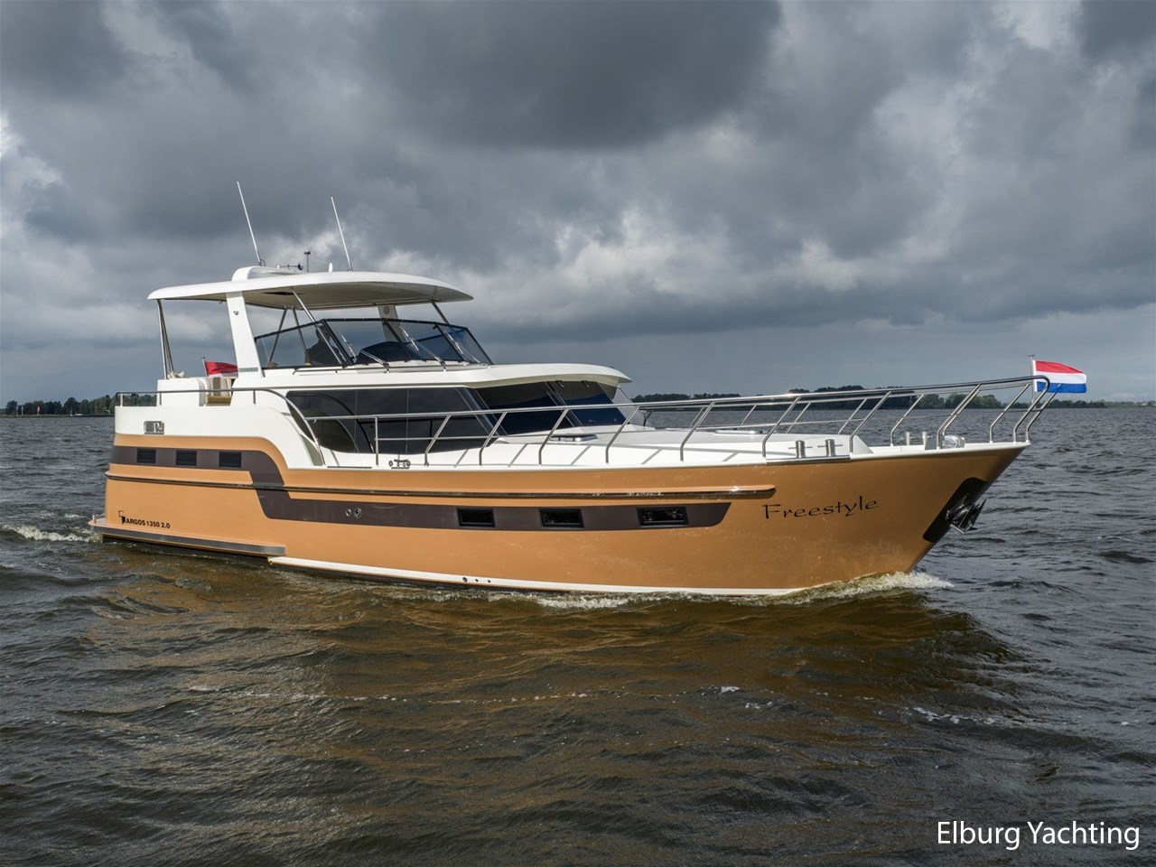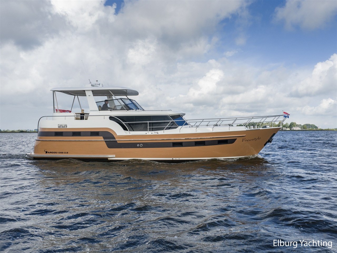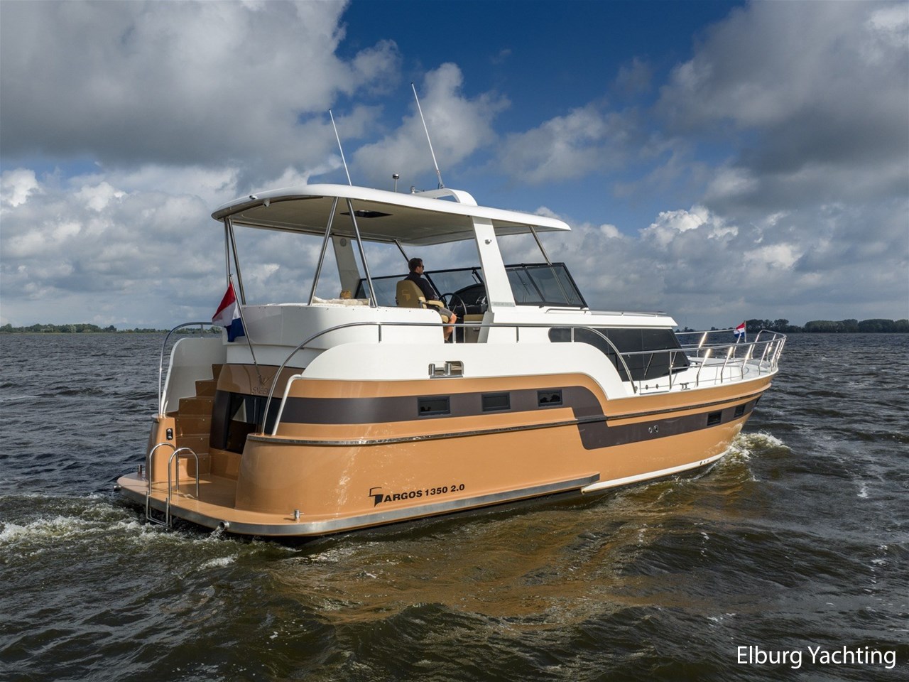 Beautiful, modern Argos Line 13.50 2.0 offered by its first Dutch owner. This beautiful example was built by the Argos shipyard in Sneek and designed by Vripack design, also from Sneek. Many factors were taken into account during the construction process: the yacht had to be modern with a practical layout (including three full cabins and various comfortable seats). The yacht also had to be suitable for longer stays on board, so double glazing was installed along with efficient central heating. It was also important that the yacht had a warm appearance, so it was given a beautiful two-tone hull in combination with an extremely modern interior using only high-quality materials. The yacht is equipped with a “floating hardtop” over the afterdeck where one can sit comfortably out of the sun. The saloon has two attractive seating areas with a practical open kitchen. At the front are two sleeping areas with sanitary facilities, and at the stern is the owner's cabin with its own sanitary facilities. The yacht has been chartered for a short period of time, exclusively to VIP customers selected by the shipyard who have experience in recreational boating. As a result, any delivery issues are known and have been professionally resolved by the shipyard. The asking price of the yacht includes 21% VAT, but the yacht can also be delivered excluding VAT. If you have any questions and/or would like to make an appointment, you are welcome to visit Elburg Yachting 7 days a week.