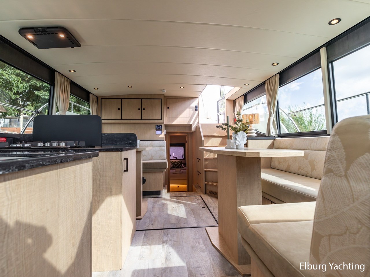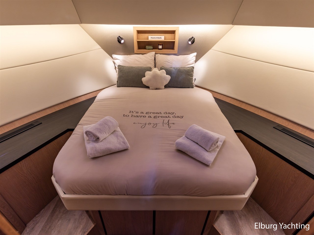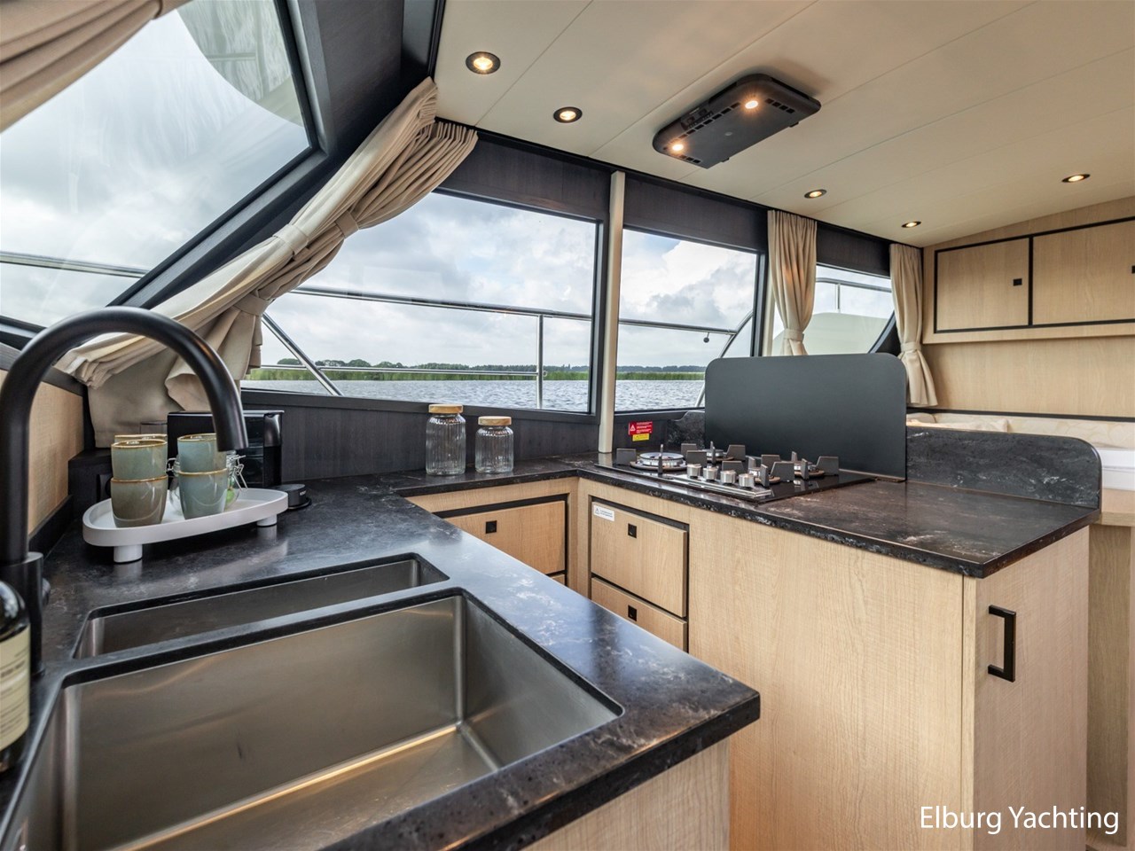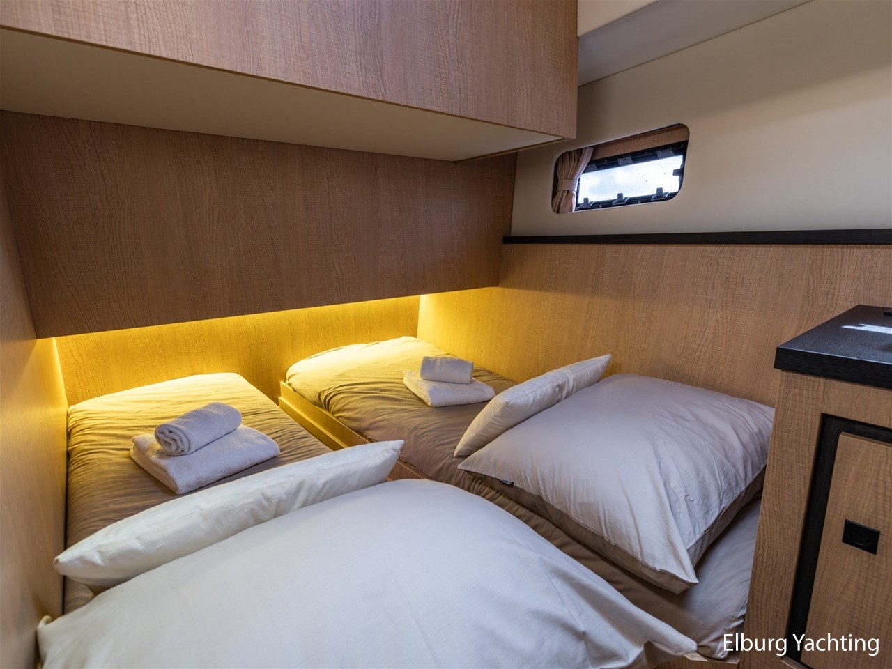 Beautiful, modern Argos Line 13.50 2.0 offered by its first Dutch owner. This beautiful example was built by the Argos shipyard in Sneek and designed by Vripack design, also from Sneek. Many factors were taken into account during the construction process: the yacht had to be modern with a practical layout (including three full cabins and various comfortable seats). The yacht also had to be suitable for longer stays on board, so double glazing was installed along with efficient central heating. It was also important that the yacht had a warm appearance, so it was given a beautiful two-tone hull in combination with an extremely modern interior using only high-quality materials. The yacht is equipped with a “floating hardtop” over the afterdeck where one can sit comfortably out of the sun. The saloon has two attractive seating areas with a practical open kitchen. At the front are two sleeping areas with sanitary facilities, and at the stern is the owner's cabin with its own sanitary facilities. The yacht has been chartered for a short period of time, exclusively to VIP customers selected by the shipyard who have experience in recreational boating. As a result, any delivery issues are known and have been professionally resolved by the shipyard. The asking price of the yacht includes 21% VAT, but the yacht can also be delivered excluding VAT. If you have any questions and/or would like to make an appointment, you are welcome to visit Elburg Yachting 7 days a week.