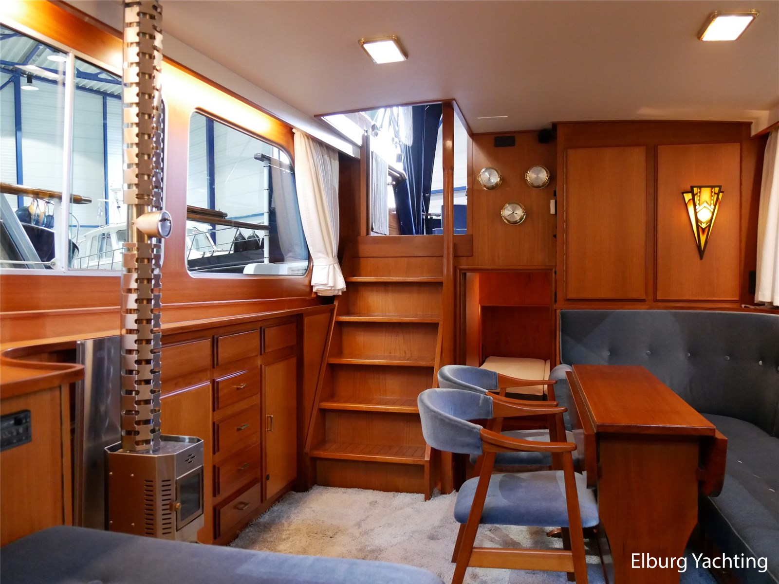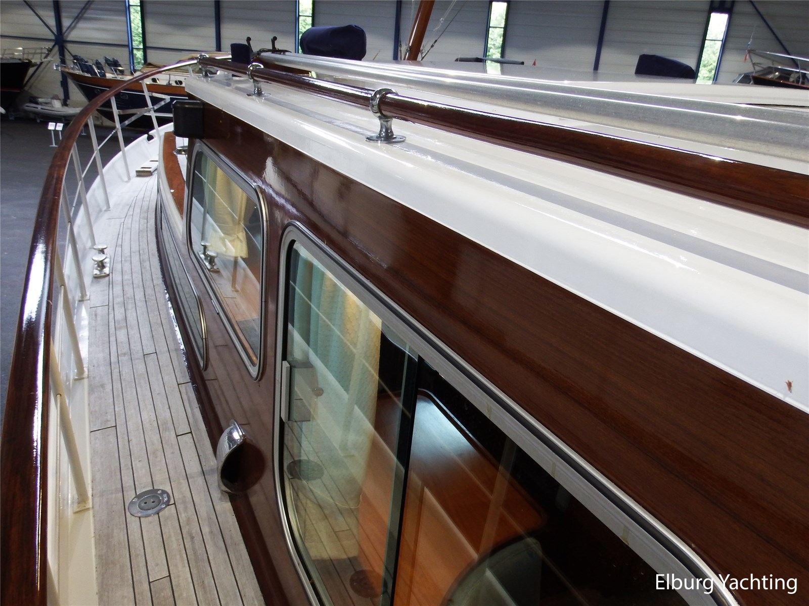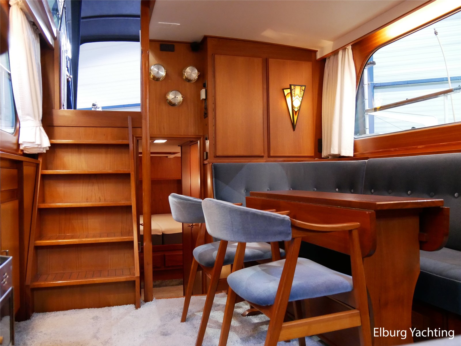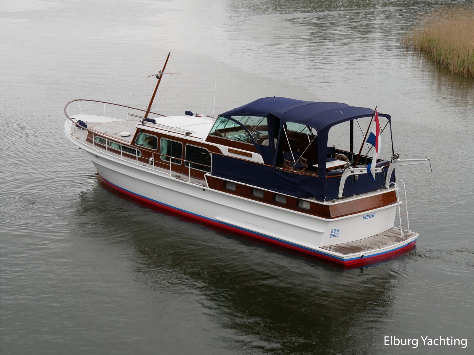 Lovingly maintained Super van Craft 13.80 with clearance height suitable for sailing through the French canals. Convertible top over steering position, spacious afterdeck with fully closable bimini/aft tent, fixed bench on afterdeck including cushions, storage lockers, large sliding roof in saloon, 3 folding front windows in saloon, 2 sliding windows in saloon, access to engine room via laundry room, second cabin in bow with double V-bed and private toilet and laundry room, freestanding French bed with high entry in the owner's cabin, separate shower and toilet room located next to the owner's cabin, original Super van Craft seats on board, steering position panel can be closed with high-gloss lacquered protective cover, Candy washer-dryer combination, Dickinson 5kW heater (removable). For questions and/or to make an appointment, you are welcome at Elburg Yachting 7 days a week.