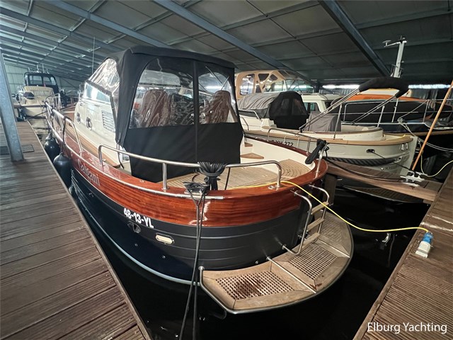 Beautiful Apreamare 10 Semi Cabinato with pleanty of space to enjoy outside on the aft en front deck. The current owner has refitted and improved many things on board in recent years. The following work has been carried out: Woodwork repainted/varnished in Q2 2025, gearboxes completely overhauled, 12-liter boiler replaced with a new 40-liter boiler, Webasto hot-air heating installed, new Raymarine plotter touchscreen and new Raymarine autopilot, Garmin marine radio with AIS, 3000-watt Victron inverter, new batteries installed, new refrigerator, new slatted bed base and mattresses, underwater hull stripped and new antifouling applied. Since 2021, this boat has been stored in a boathouse for all years. This boathouse in Ossenzijl / The Netherlands is separately transferable for rent or purchase. This Apreamare 10 Semi Cabinato is equipped with: a fixed bench in open cockpit and on the foredeck with removable cushions, bimini top over aft deck, storage space in bench, stainless steel fender holders, a full cockpit canopy over the helm with removable sections, the engine room accessible via two large cockpit hatches, dual Separ fuel filters, two luxury height-adjustable pilot seats, trim tabs, radio, Victron battery display. The canopy over the helm is easy and quick foldable, providing a minimum clearance of 2.20 meters.