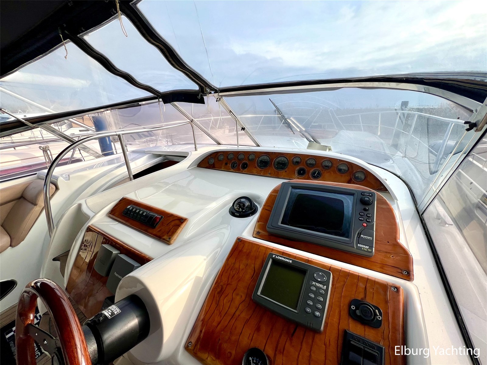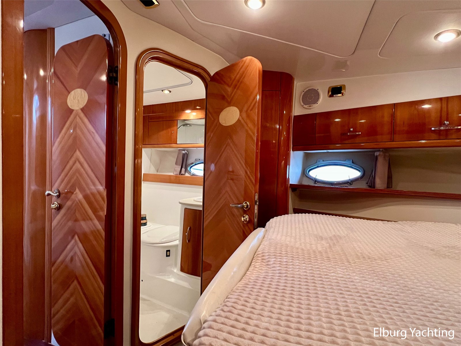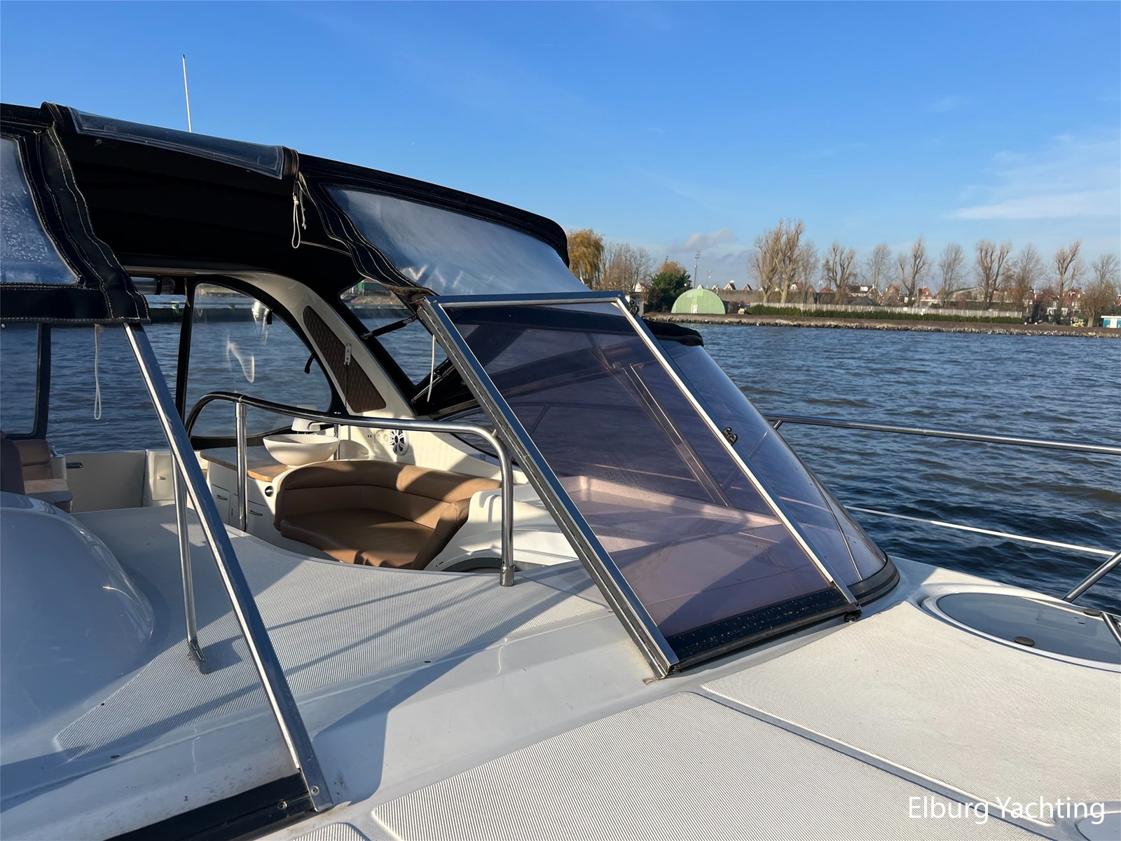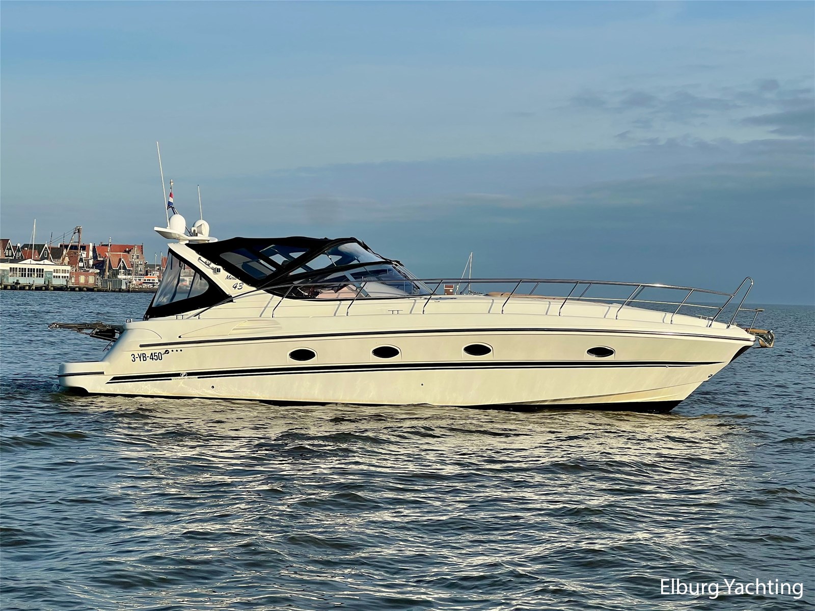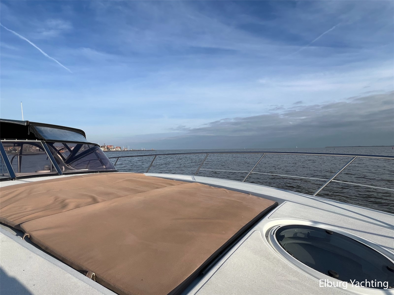 Italiaans design in combinatie met veel praktische ruimte kenmerkt deze Mira 43 van de werf Innovazione e Progetti uit Italie. Dit jacht is van bouwjaar 2004 en is voorzien van twee krachtige Volvo Penta D6 motoren met elk 350 pk. De aandrijving verloopt via twee Volvo Penta DPH hekdrives, welke in 2025 zijn geserviced. Deze Mira 43 is voorzien van: Volledige tent rondom kuip met uitristbare delen, hydraulisch uitschuifbare gangway met afstandsbediening, groot bergluik in zwemplateau, kuip voorzien van koelkast / spoelkom / radio met speakers, loop naar het voordek via gangboorden maar ook binnendoor via opstap bij stuurstand, afneembaar zonnebed op het voordek, elektrisch/hydraulisch bedienbaar luik naar machinekamer, diverse 230V aansluitpunten door de boot, TV in salon (2025), tapijt delen in het interieur uitneembaar, 2 x bergluik in salonvloer. Verfsysteem onderwaterschip vernieuwd in juli 2025. Dit schip is op afspraak in Nederland te bezichtigen. Wij maken graag met u een afspraak voor een vrijblijvend bezoek aan boord. Voor vragen en/of het maken van een afspraak bent u 7 dagen per week van harte welkom bij Elburg Yachting.