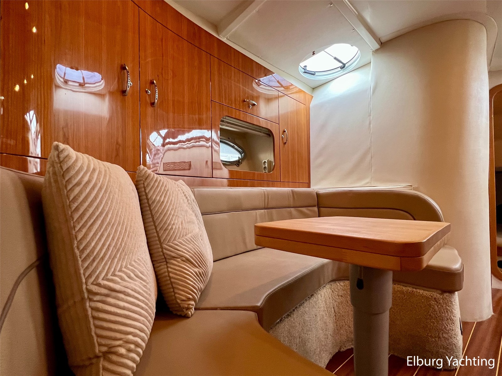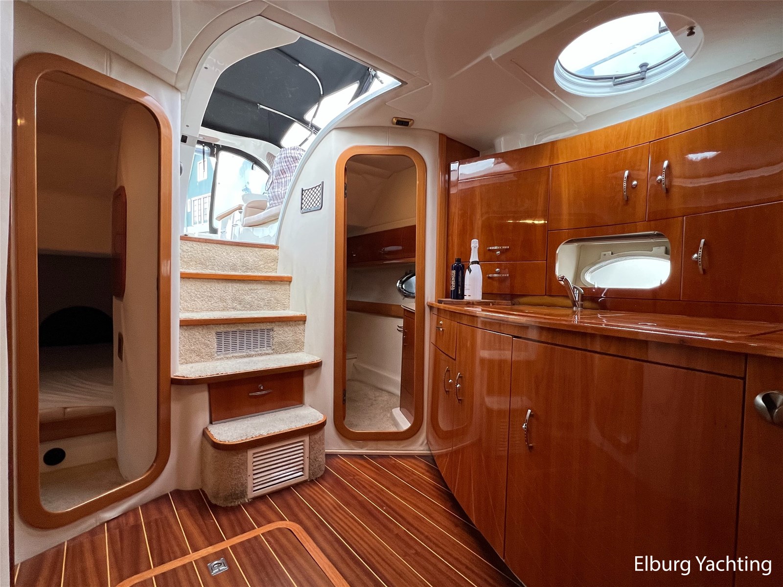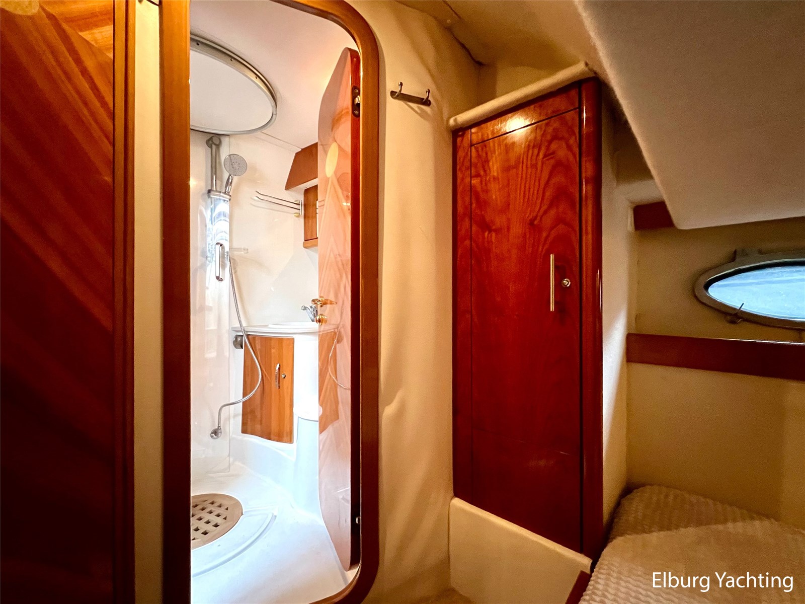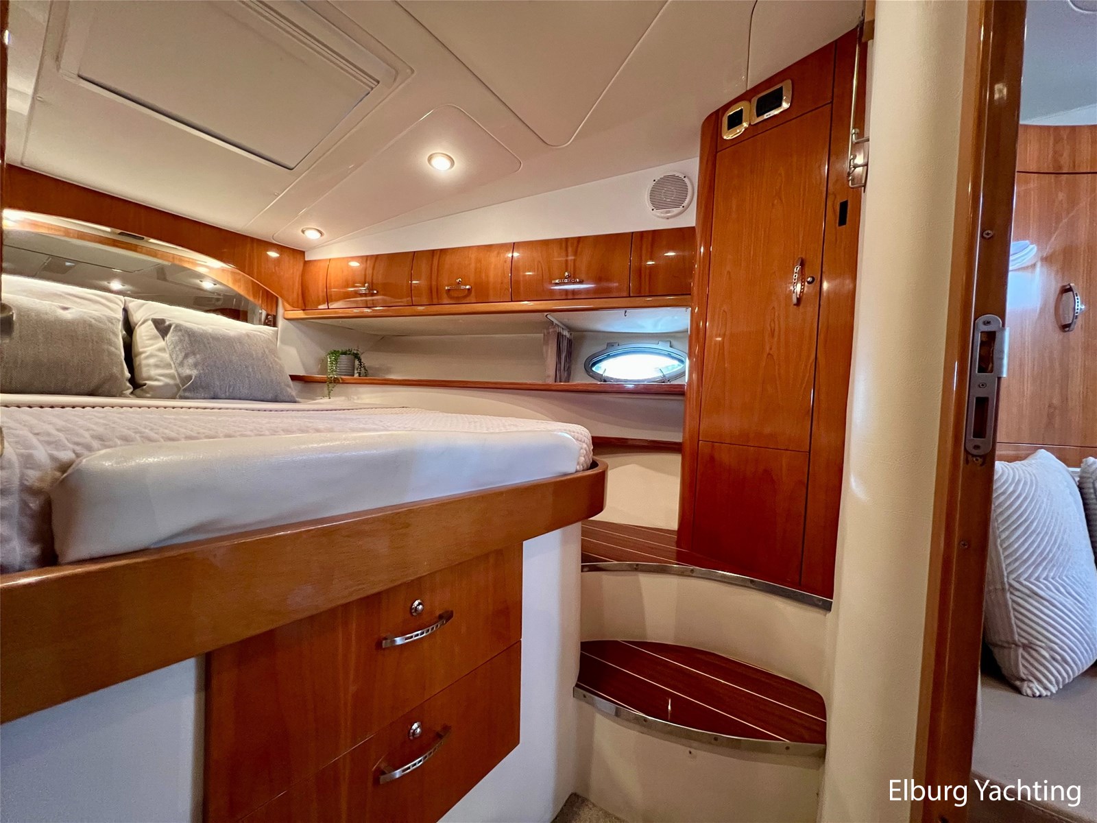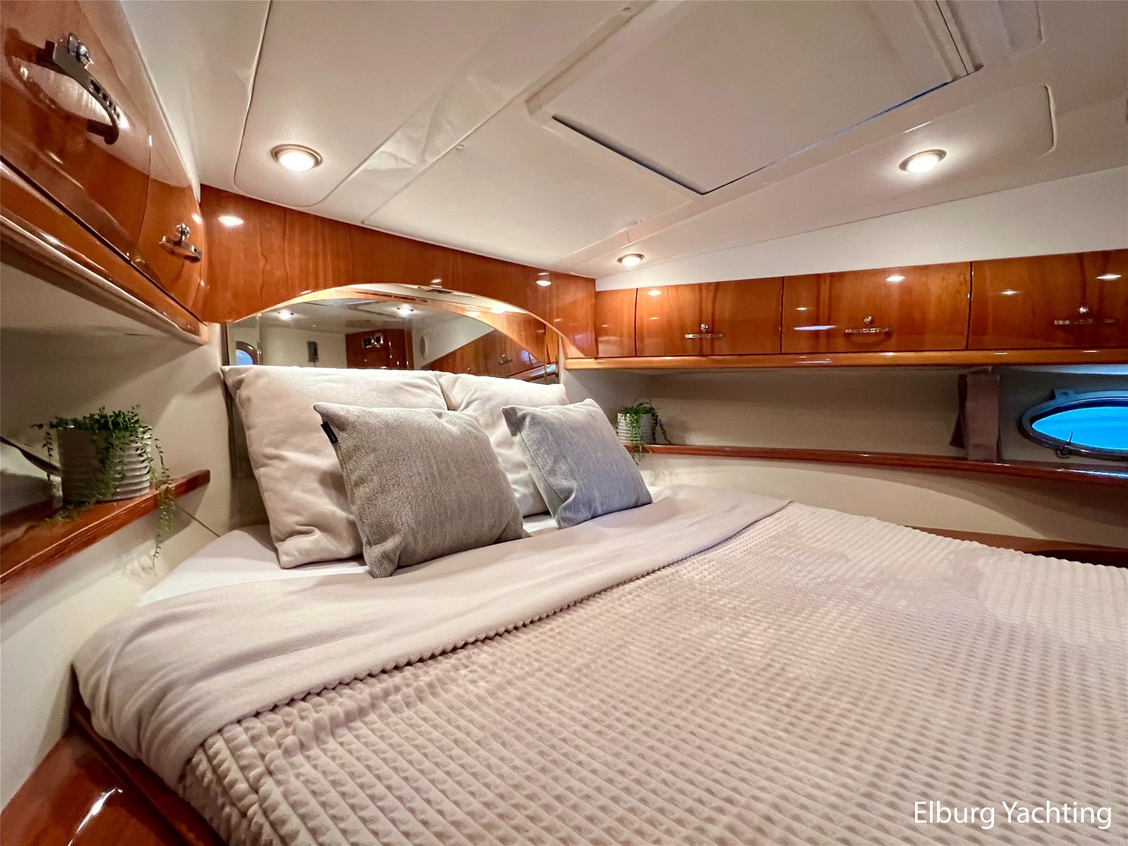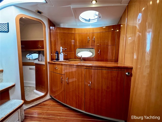 Italiaans design in combinatie met veel praktische ruimte kenmerkt deze Mira 43 van de werf Innovazione e Progetti uit Italie. Dit jacht is van bouwjaar 2004 en is voorzien van twee krachtige Volvo Penta D6 motoren met elk 350 pk. De aandrijving verloopt via twee Volvo Penta DPH hekdrives, welke in 2025 zijn geserviced. Deze Mira 43 is voorzien van: Volledige tent rondom kuip met uitristbare delen, hydraulisch uitschuifbare gangway met afstandsbediening, groot bergluik in zwemplateau, kuip voorzien van koelkast / spoelkom / radio met speakers, loop naar het voordek via gangboorden maar ook binnendoor via opstap bij stuurstand, afneembaar zonnebed op het voordek, elektrisch/hydraulisch bedienbaar luik naar machinekamer, diverse 230V aansluitpunten door de boot, TV in salon (2025), tapijt delen in het interieur uitneembaar, 2 x bergluik in salonvloer. Verfsysteem onderwaterschip vernieuwd in juli 2025. Dit schip is op afspraak in Nederland te bezichtigen. Wij maken graag met u een afspraak voor een vrijblijvend bezoek aan boord. Voor vragen en/of het maken van een afspraak bent u 7 dagen per week van harte welkom bij Elburg Yachting.