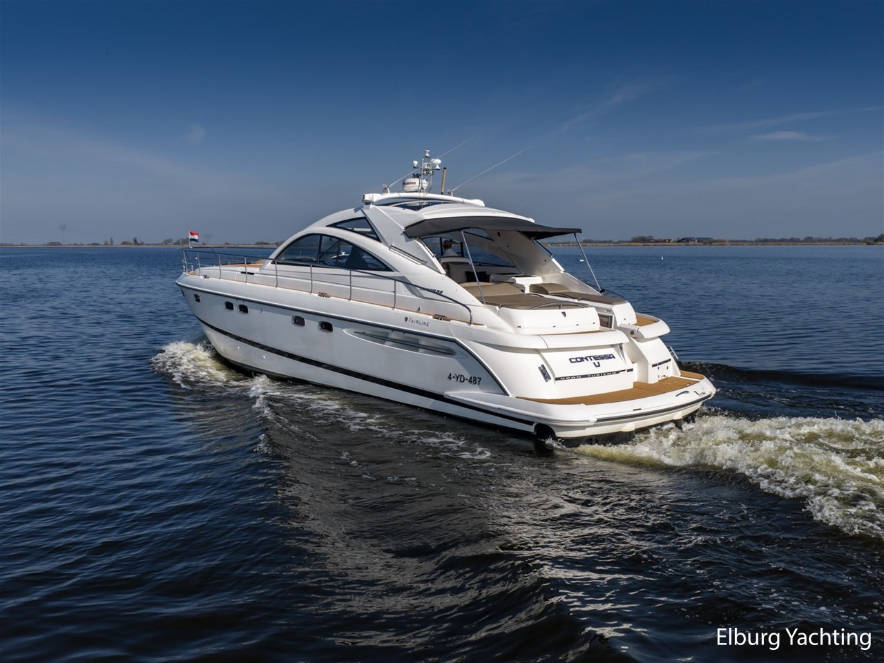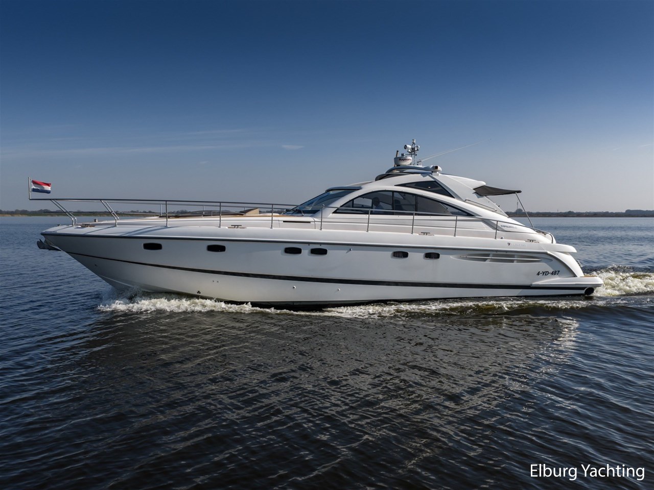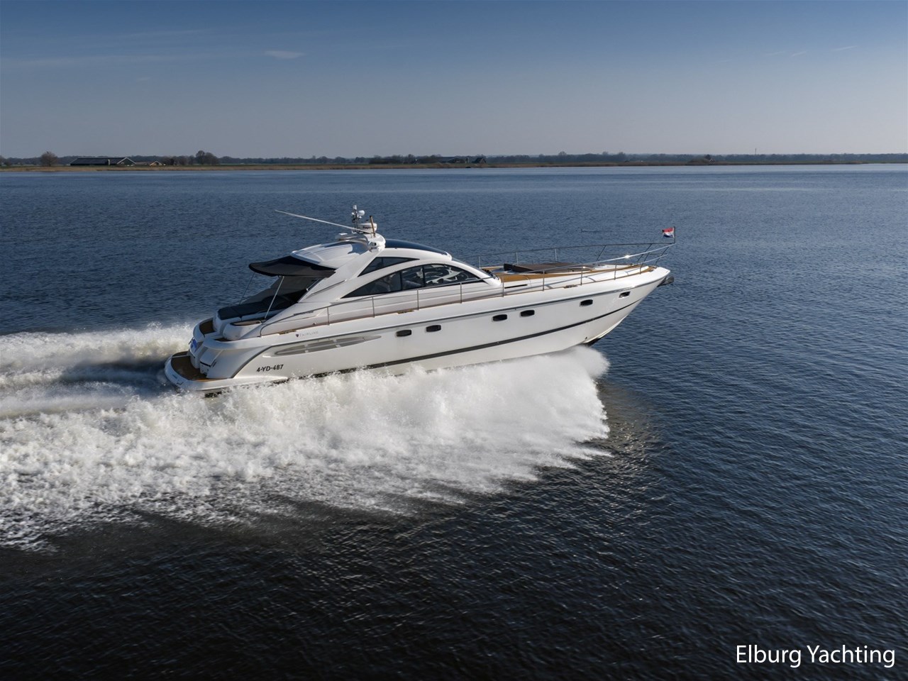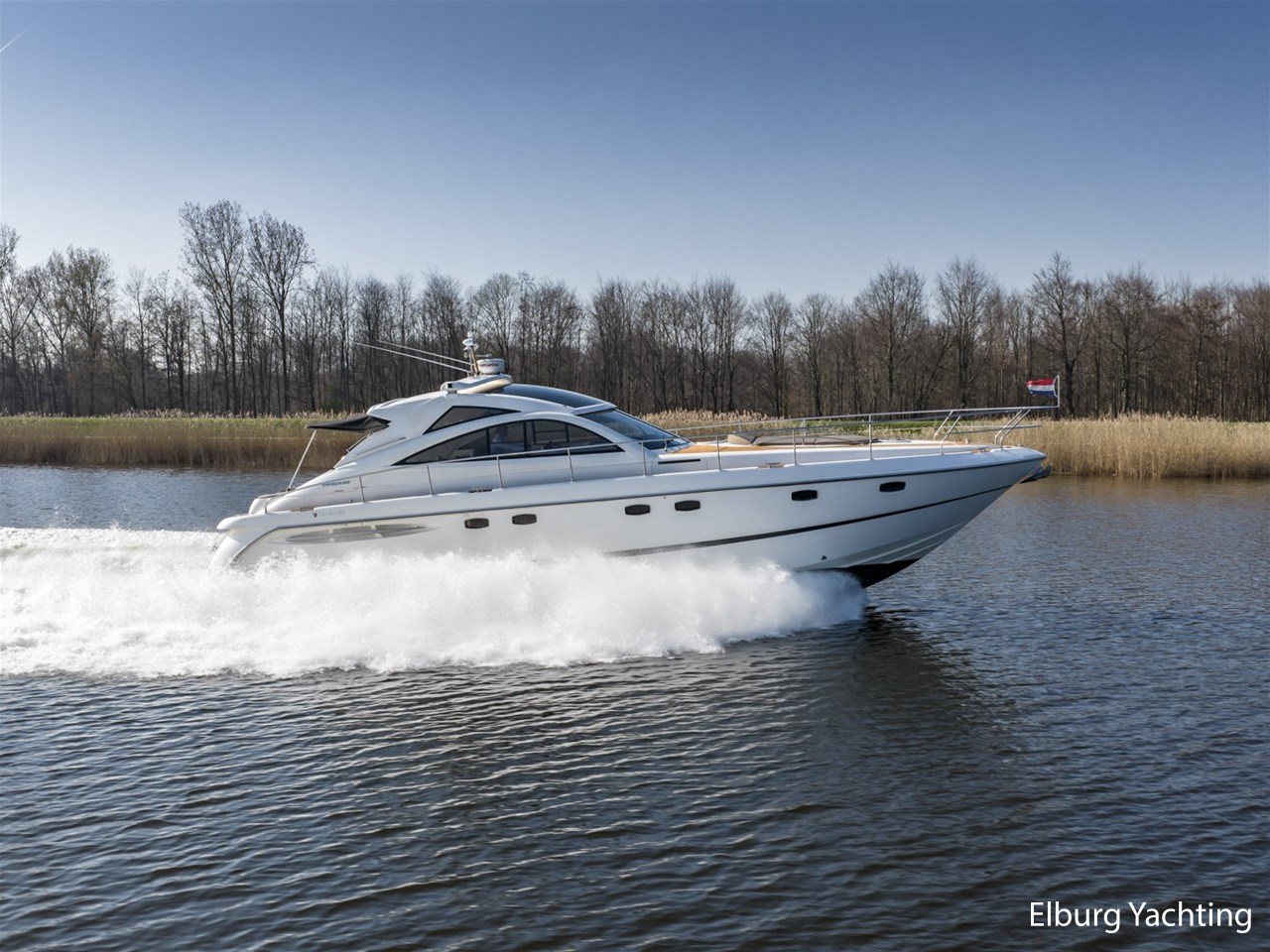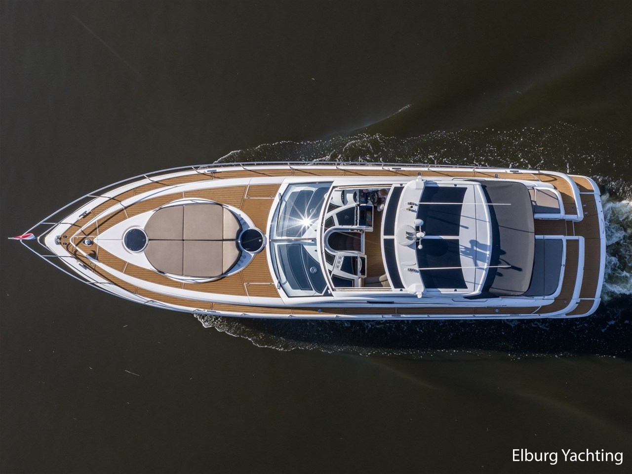In addition, this Fairline Targa 52 GT is fully equipped with, among other things: a fully closable awning over the aft deck, a large electrically operated sunroof above the helm station, access to the engine room from the open cockpit with storage options, a height-adjustable coffee table, TV in the saloon, a deep storage hatch in the floor of the galley, mosquito nets for portholes and hatches, trim tabs, 2 x Volvo Penta on-board computers, Raymarine AIS700, cushions on the foredeck, and sunshades around the helm and cockpit.