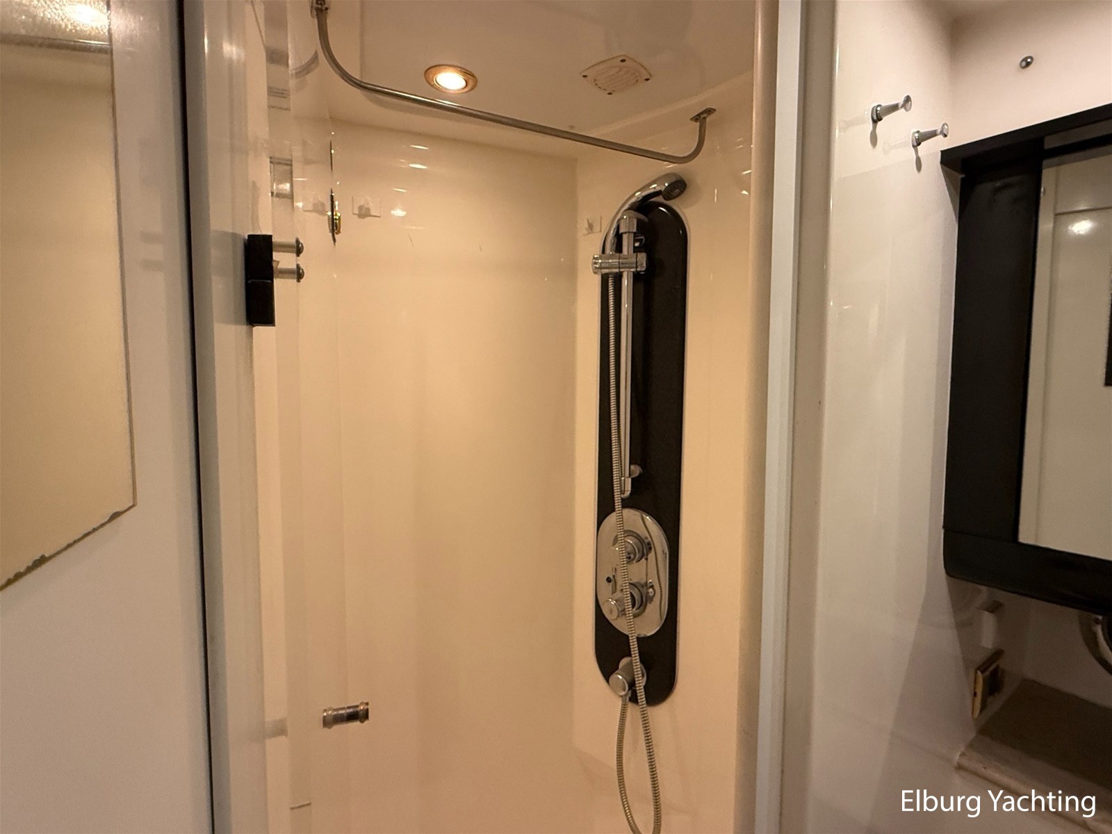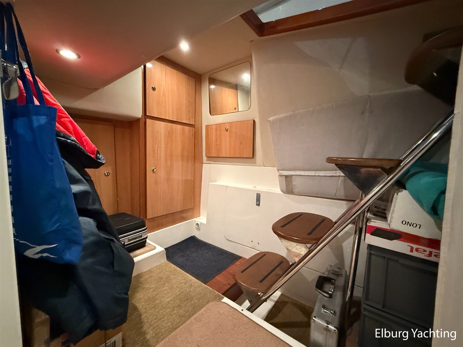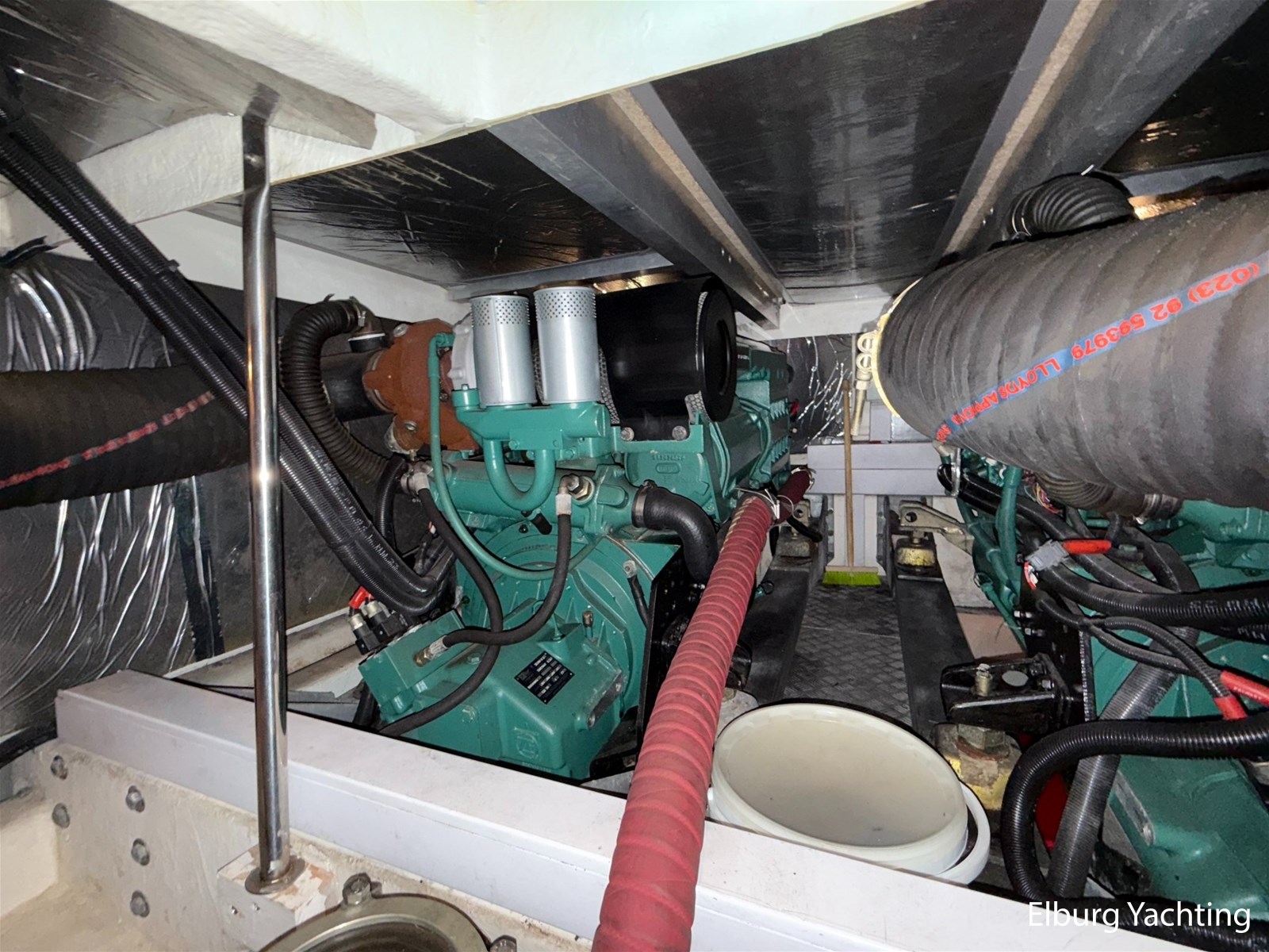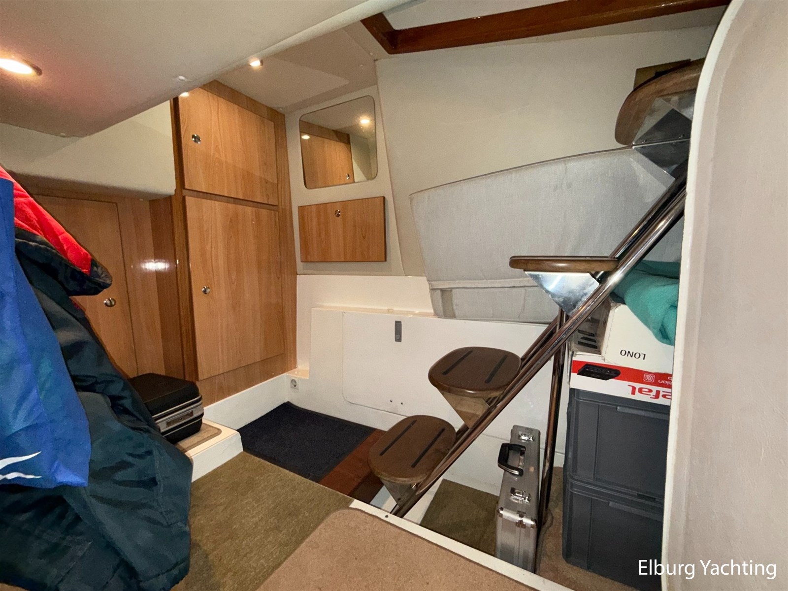 Attractive and, above all, very sporty Sealine T47 with two cabins and two powerful Volvo Penta TAMD 75 diesel engines, offered for sale by its German owner. The yacht is stored in winter every year and is well maintained. The interior upholstery has recently been replaced with new light-coloured artificial leather, giving the yacht a fresh look. The yacht has a spacious layout. It has a generous saloon with a large corner sofa with a cherry wood coffee table, a desk with two armchairs, and an indoor helm with two seats, one for the captain and one for the co-skipper. Further forward is the galley with a sink, refrigerator and electric cooking facilities. At the front of the yacht is the owner's cabin with a double freestanding French bed and en-suite bathroom (shower, toilet and washbasin). On the starboard side is the guest cabin with a double bed, and the second bathroom is also located on the starboard side of the yacht. This space is accessible from the corridor and from the guest cabin and is equipped with a shower, washbasin and toilet. The Sealine T47 has a spacious cockpit with a fixed bench and a large storage hatch under the bench that could also be used as a crew cabin. The engine room is accessible via the floor hatch in the cockpit. The flybridge is accessible from the cockpit and has a second helm, dinette and refrigerator. Sailing from the flybridge gives you a great overview and it is a wonderful place to relax on warmer days. The yacht can be viewed on location (in winter storage) by appointment. For questions and/or to make an appointment, you are welcome at Elburg Yachting 7 days a week.