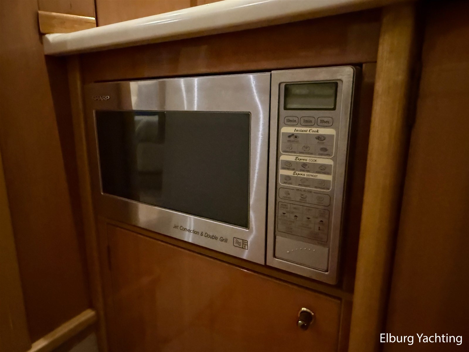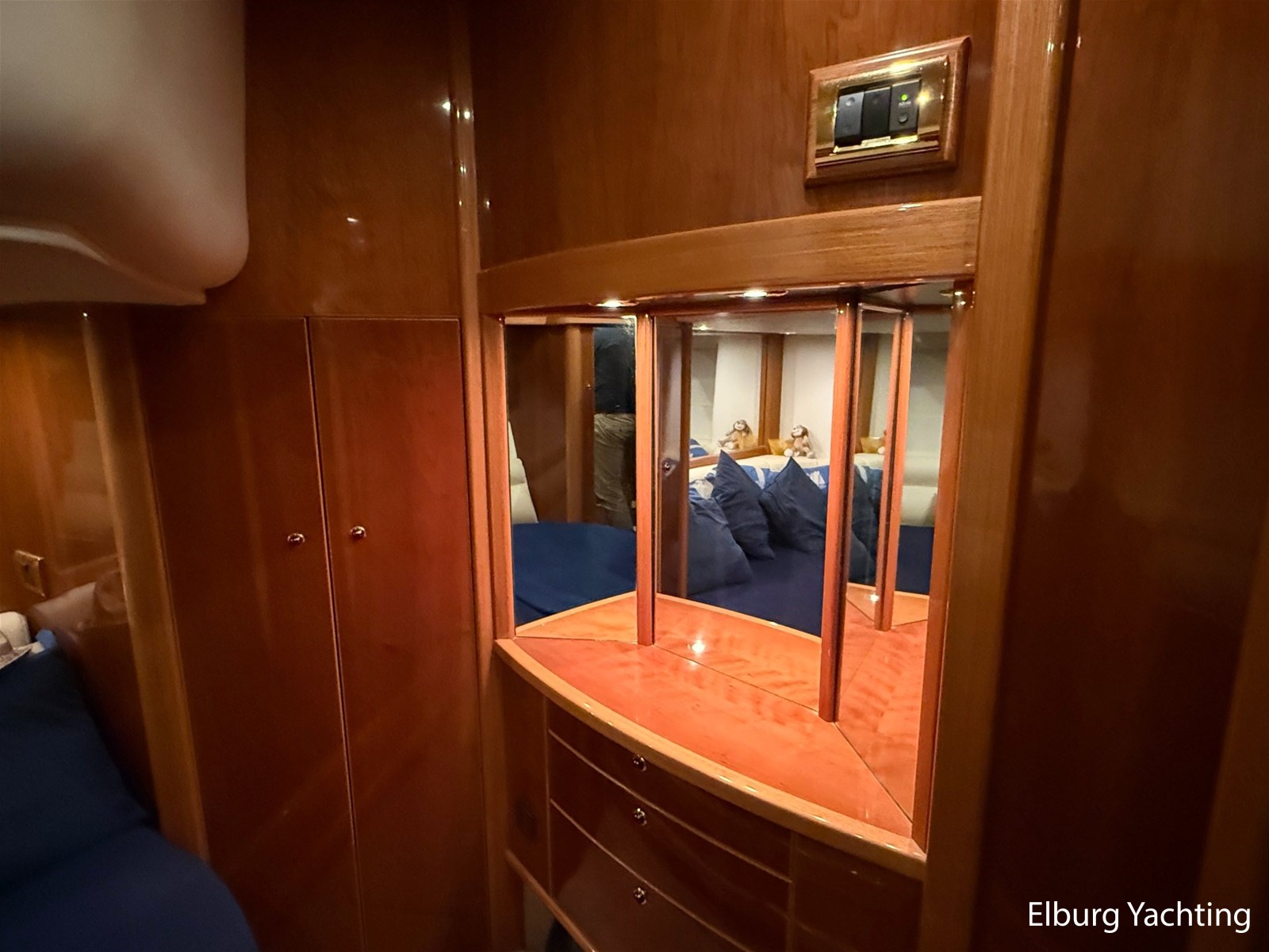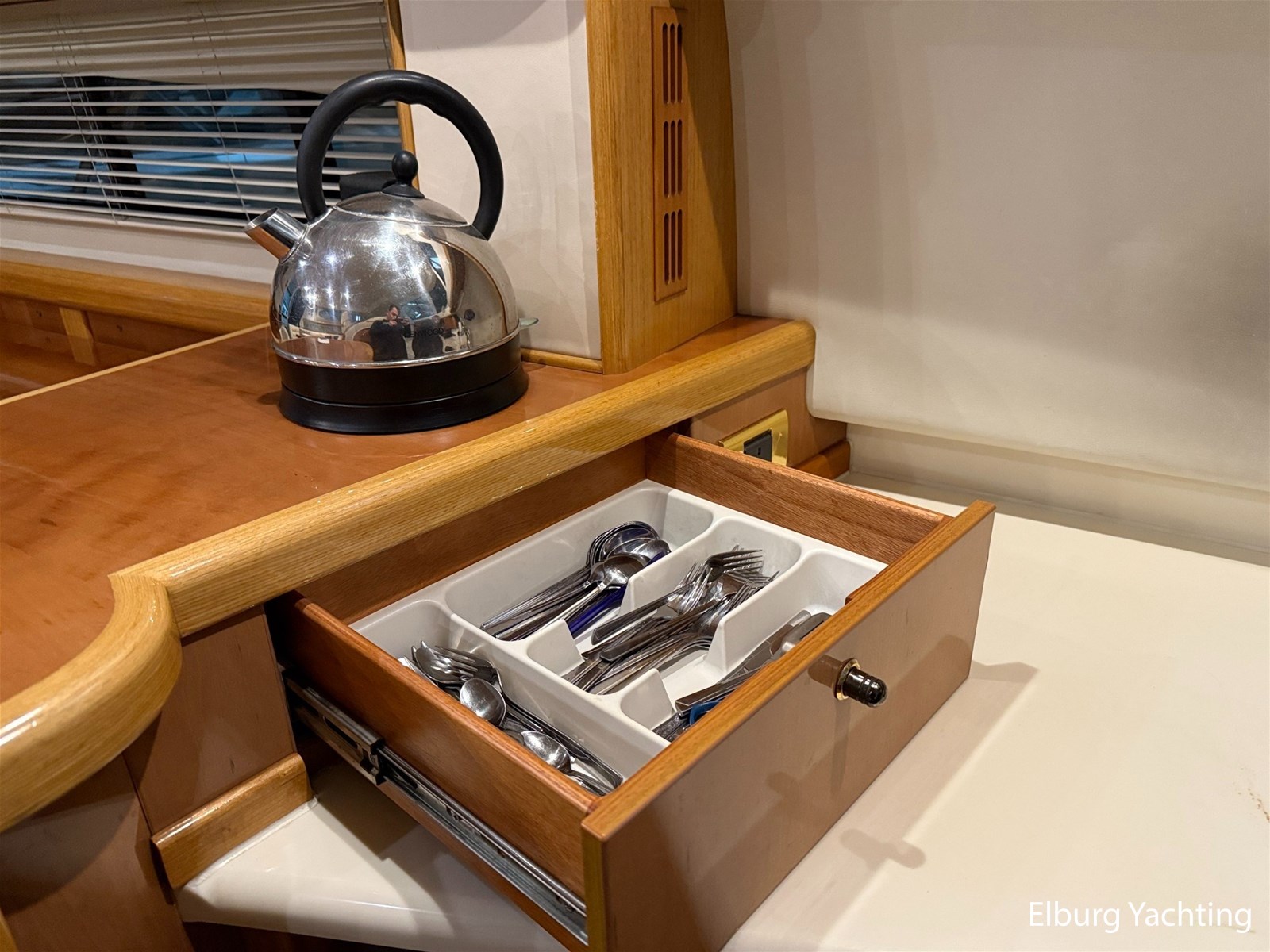 - Non-slip deck all around with teak in the cockpit + flybridge + swimming platform