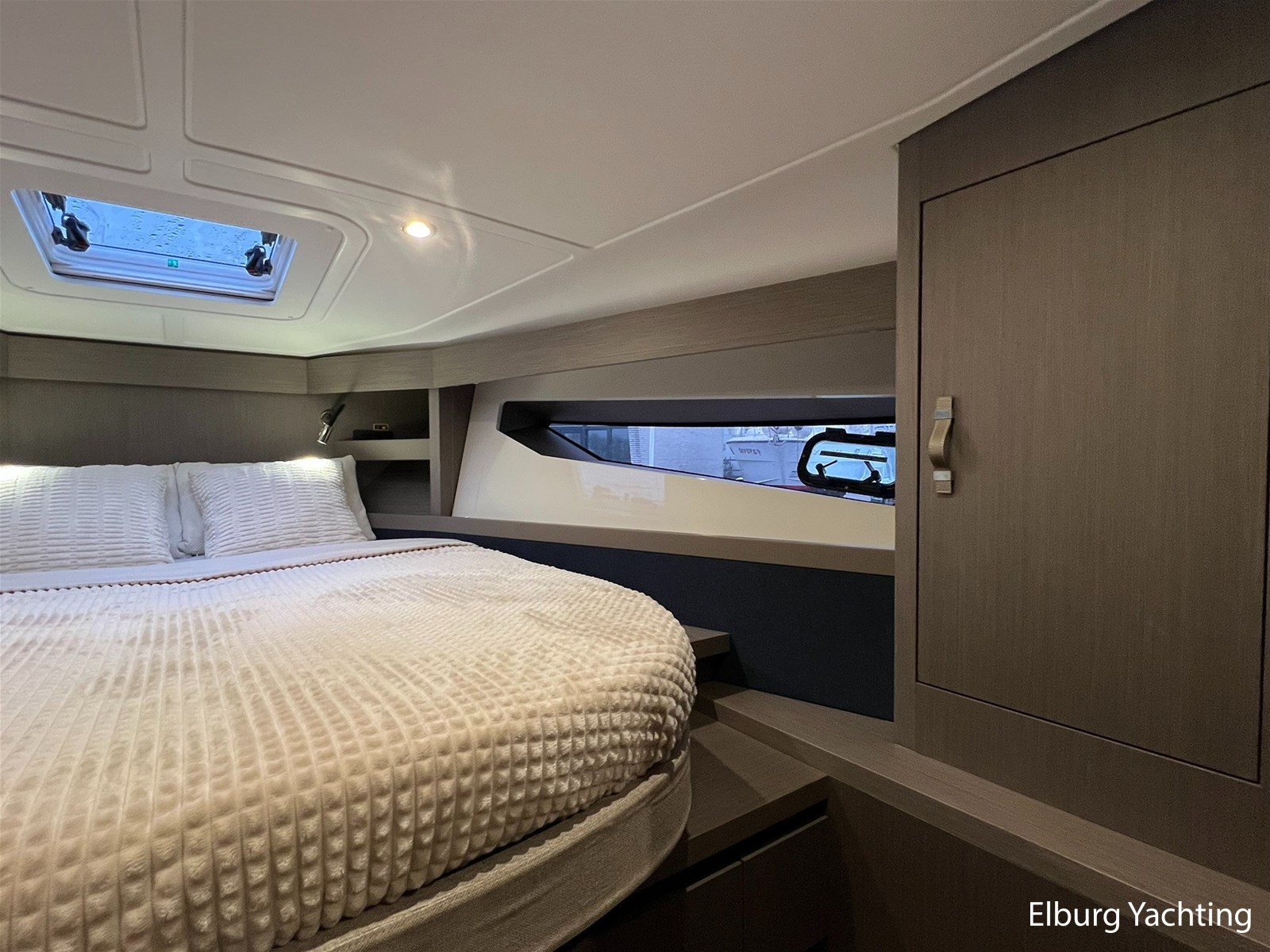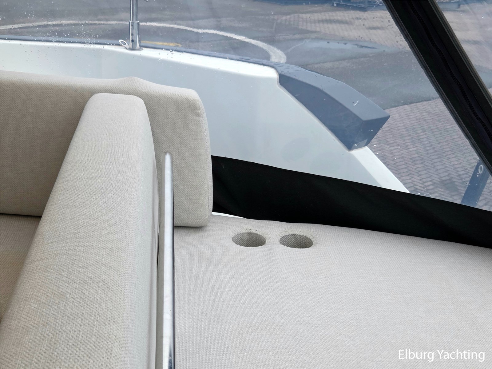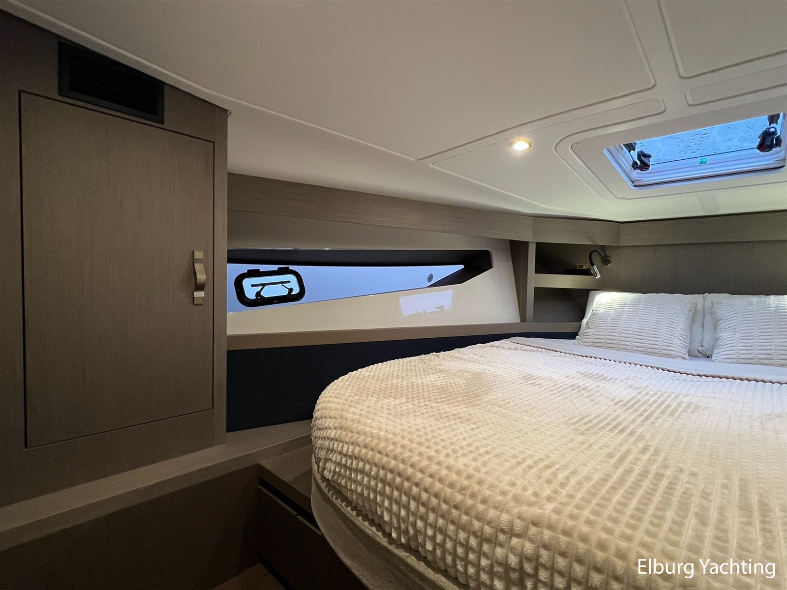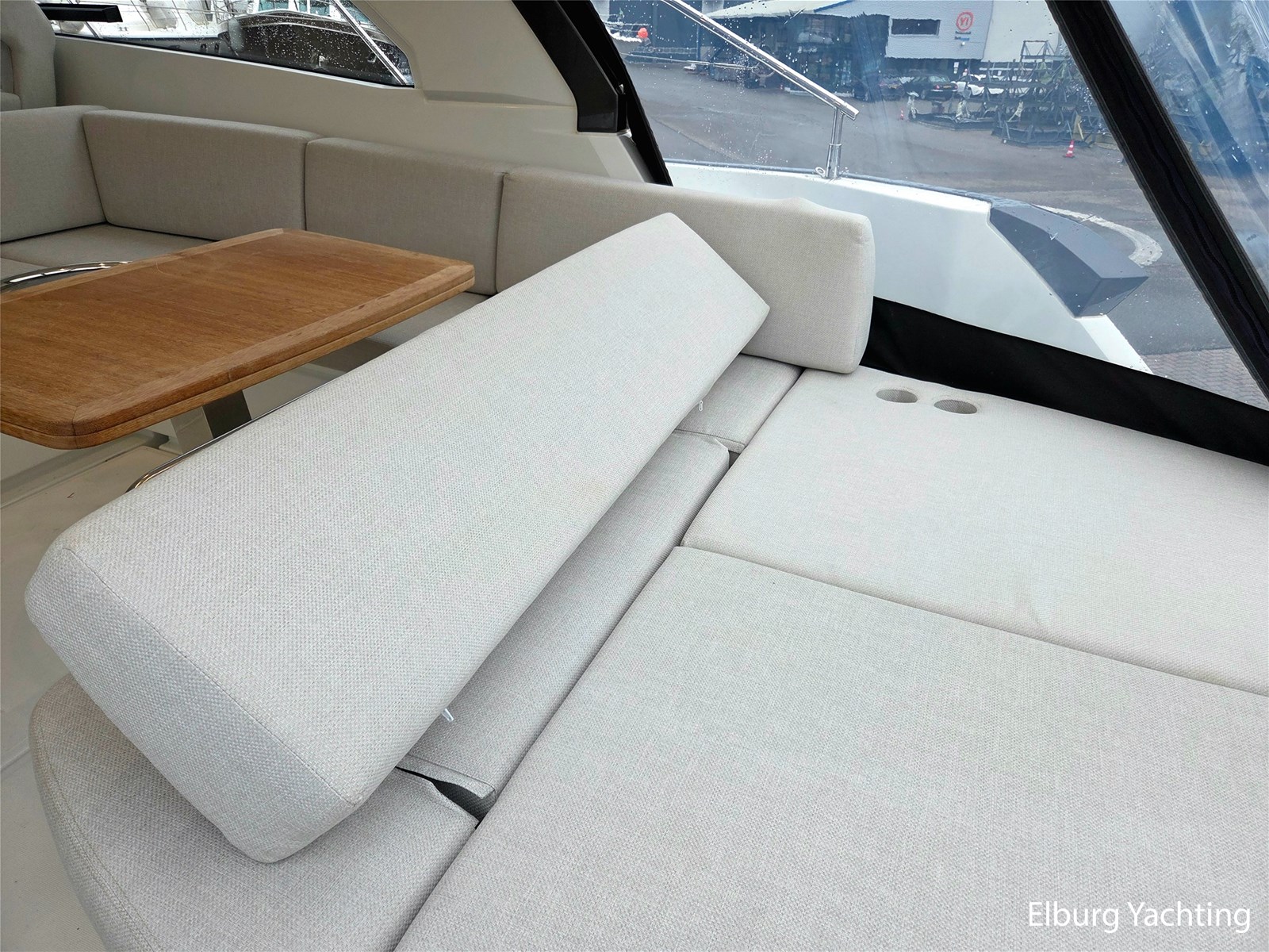 The Beneteau 41 Gran Tourismo is a sporty all-rounder for both inland waters and the open sea, thanks to its combination of practical space and excellent sailing characteristics. It is powered by two 380 hp Volvo Penta D6 engines with docking joystick. The Volvo docking system significantly improves the control and maneuverability of the boat and makes mooring and docking child's play. With a joystick at the helm, every conceivable maneuver can be performed. A supporting electric bow thruster from Sleipner is also present. In the cockpit, there is a large U-shaped bench seat that is open to the helm. The cockpit has an extra refrigerator and sink. The aft deck has a large sunbed with a sliding headrest for extra length. Under the sunbed is an extra-large storage space. This Beneteau 41 Gran Tourismo is equipped with: Full tent around the aft deck, adjustable cockpit table, transom door to swimming platform, helm seat with extra passenger seat on starboard side, refrigerator in cockpit, storage lockers, Volvo Penta computer for reading engine information and current fuel consumption. Volvo trim tabs, 2 x sliding windows at the helm, large electrically operated sliding roof above the helm, Fusion audio system speakers in saloon and cockpit, spacious wardrobe with lighting in forward cabin, bed in second cabin amidships, removable cushions on foredeck, various 220V and USB plug connections available, removable sunshades around the helm position (3 pieces).