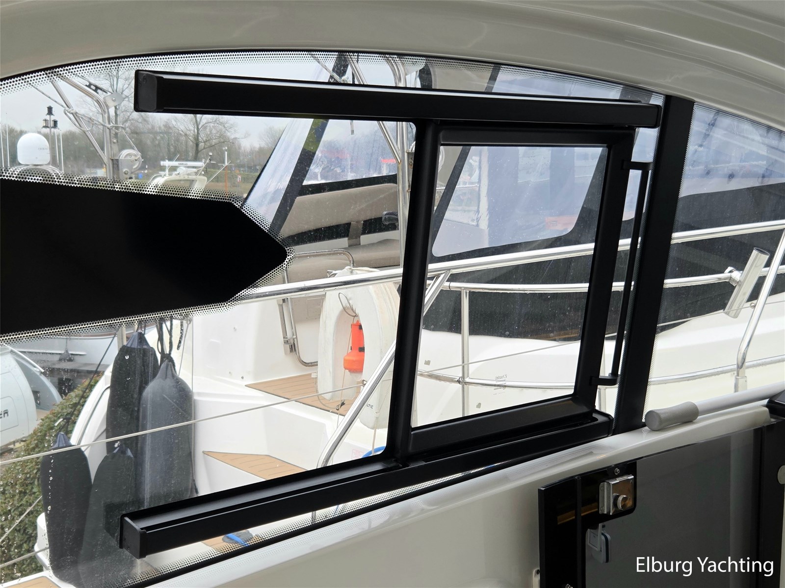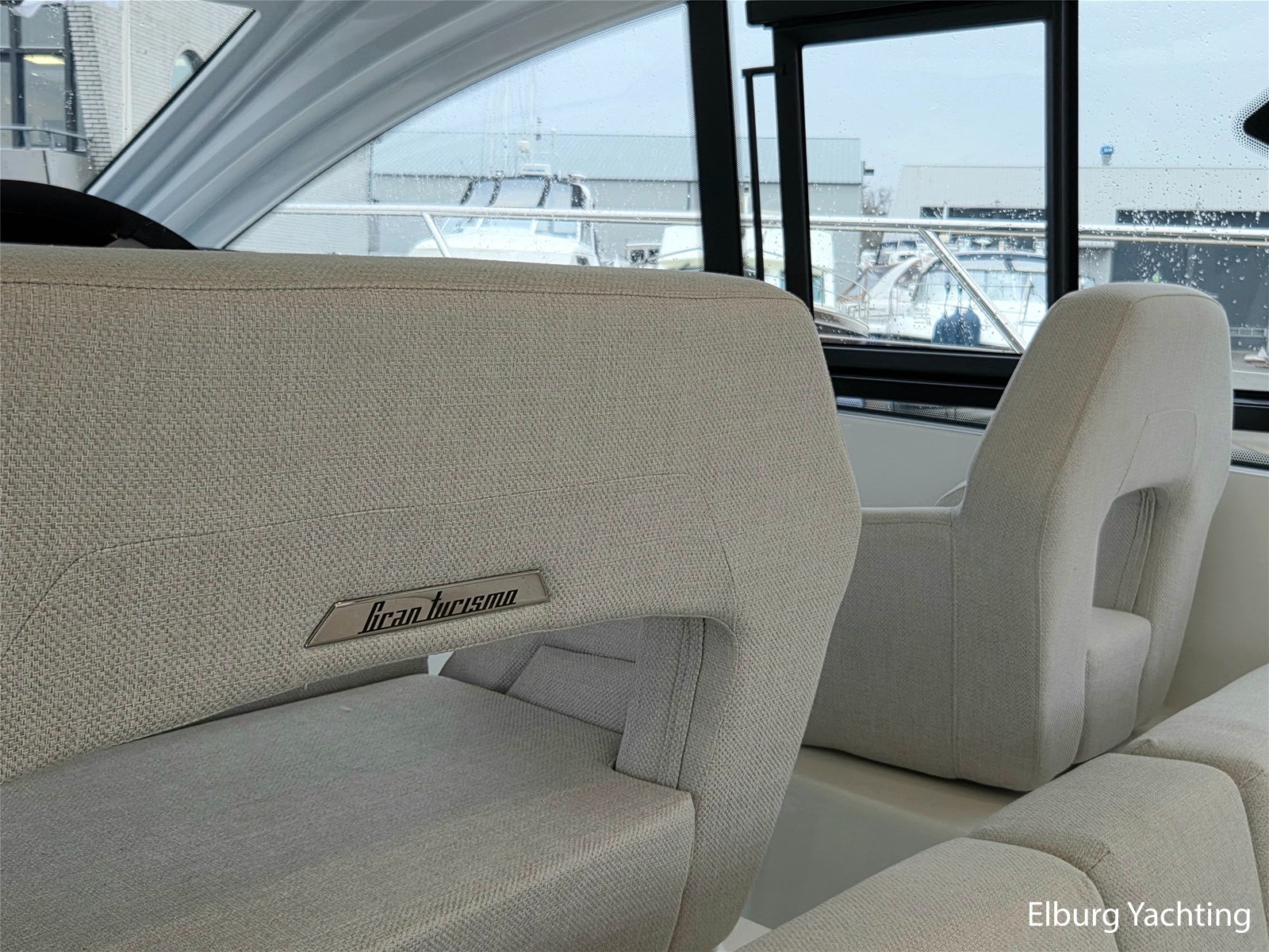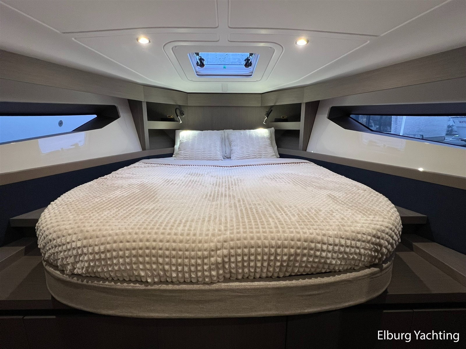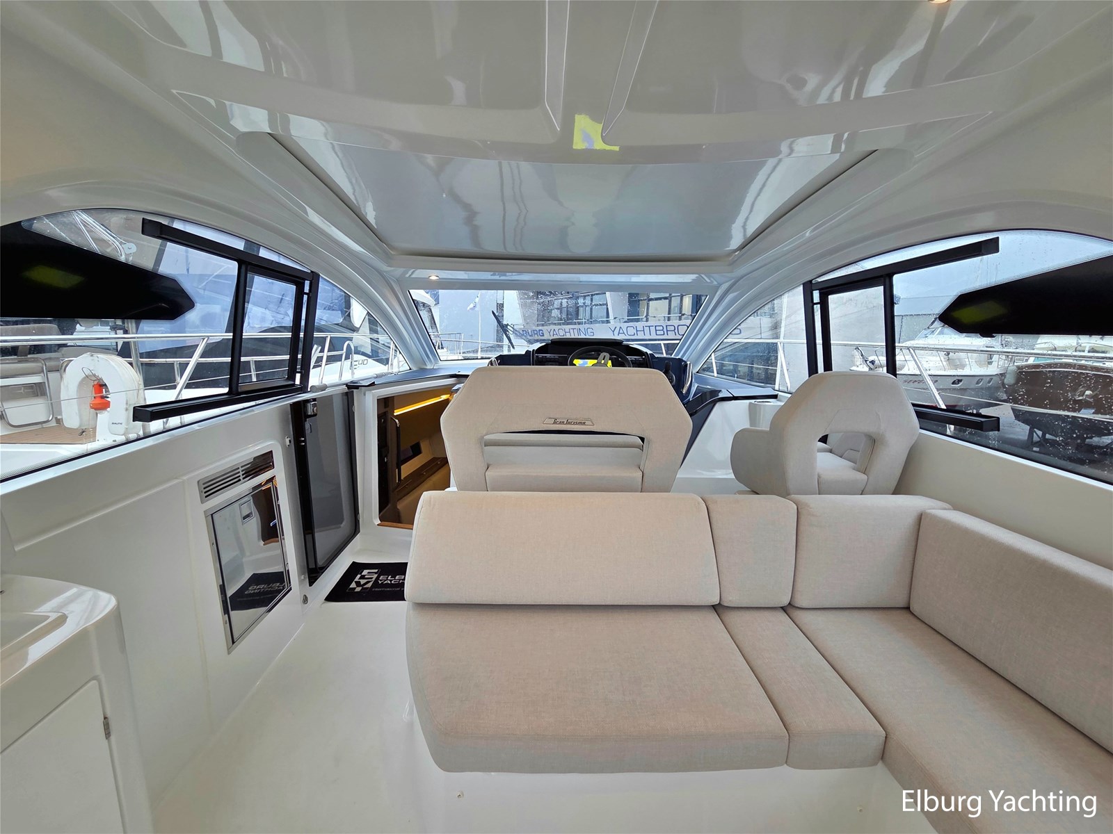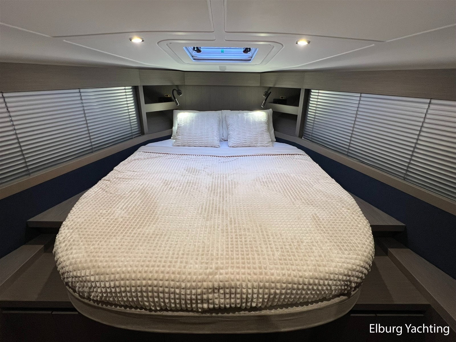The Beneteau 41 Gran Tourismo is a sporty all-rounder for both inland waters and the open sea, thanks to its combination of practical space and excellent sailing characteristics. It is powered by two 380 hp Volvo Penta D6 engines with docking joystick. The Volvo docking system significantly improves the control and maneuverability of the boat and makes mooring and docking child's play. With a joystick at the helm, every conceivable maneuver can be performed. A supporting electric bow thruster from Sleipner is also present. In the cockpit, there is a large U-shaped bench seat that is open to the helm. The cockpit has an extra refrigerator and sink. The aft deck has a large sunbed with a sliding headrest for extra length. Under the sunbed is an extra-large storage space. This Beneteau 41 Gran Tourismo is equipped with: Full tent around the aft deck, adjustable cockpit table, transom door to swimming platform, helm seat with extra passenger seat on starboard side, refrigerator in cockpit, storage lockers, Volvo Penta computer for reading engine information and current fuel consumption. Volvo trim tabs, 2 x sliding windows at the helm, large electrically operated sliding roof above the helm, Fusion audio system speakers in saloon and cockpit, spacious wardrobe with lighting in forward cabin, bed in second cabin amidships, removable cushions on foredeck, various 220V and USB plug connections available, removable sunshades around the helm position (3 pieces).