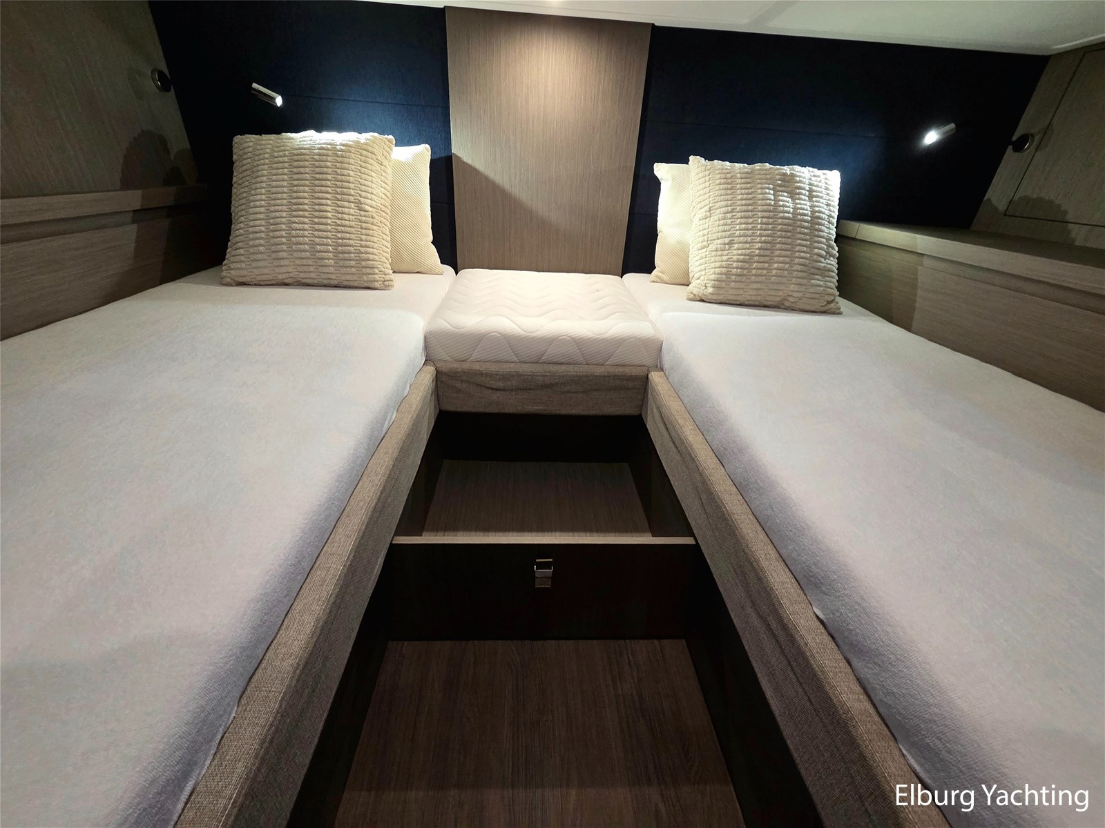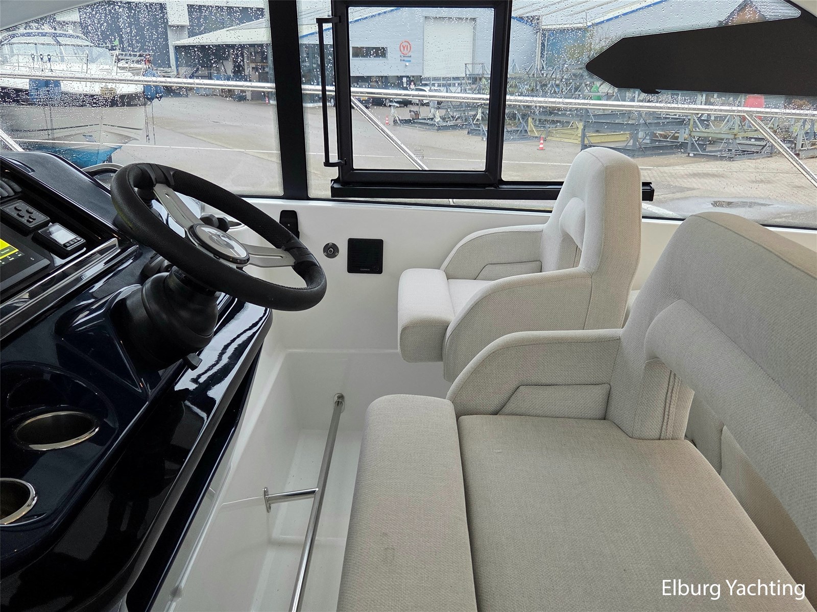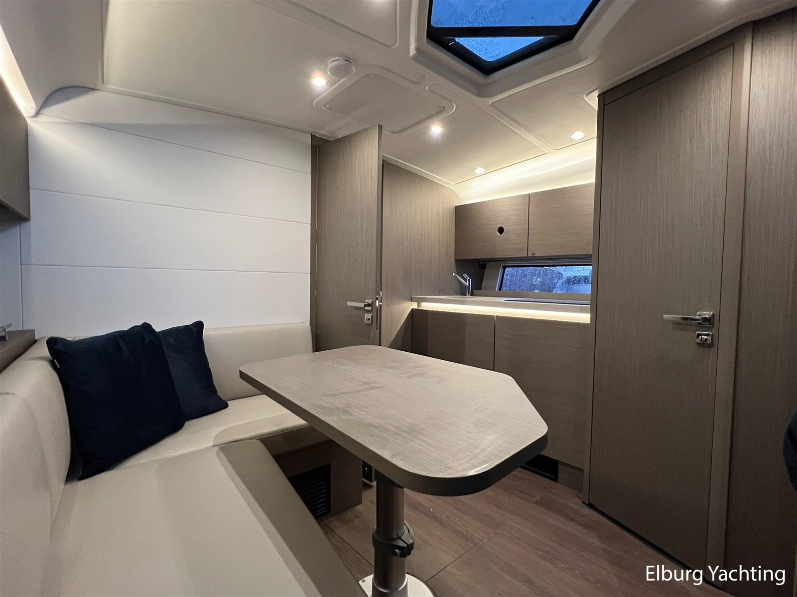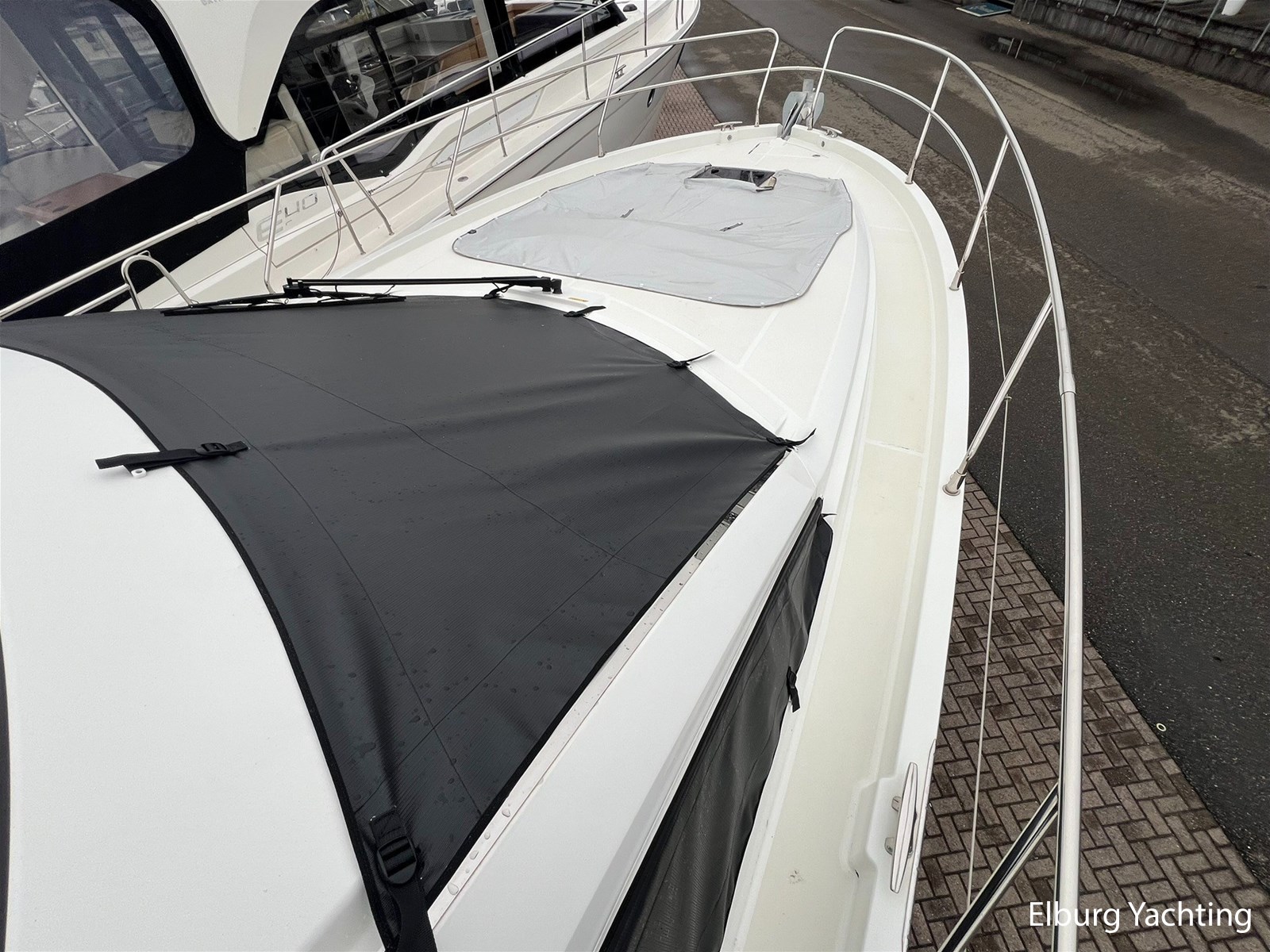 The Beneteau 41 Gran Tourismo is a sporty all-rounder for both inland waters and the open sea, thanks to its combination of practical space and excellent sailing characteristics. It is powered by two 380 hp Volvo Penta D6 engines with docking joystick. The Volvo docking system significantly improves the control and maneuverability of the boat and makes mooring and docking child's play. With a joystick at the helm, every conceivable maneuver can be performed. A supporting electric bow thruster from Sleipner is also present. In the cockpit, there is a large U-shaped bench seat that is open to the helm. The cockpit has an extra refrigerator and sink. The aft deck has a large sunbed with a sliding headrest for extra length. Under the sunbed is an extra-large storage space. This Beneteau 41 Gran Tourismo is equipped with: Full tent around the aft deck, adjustable cockpit table, transom door to swimming platform, helm seat with extra passenger seat on starboard side, refrigerator in cockpit, storage lockers, Volvo Penta computer for reading engine information and current fuel consumption. Volvo trim tabs, 2 x sliding windows at the helm, large electrically operated sliding roof above the helm, Fusion audio system speakers in saloon and cockpit, spacious wardrobe with lighting in forward cabin, bed in second cabin amidships, removable cushions on foredeck, various 220V and USB plug connections available, removable sunshades around the helm position (3 pieces).