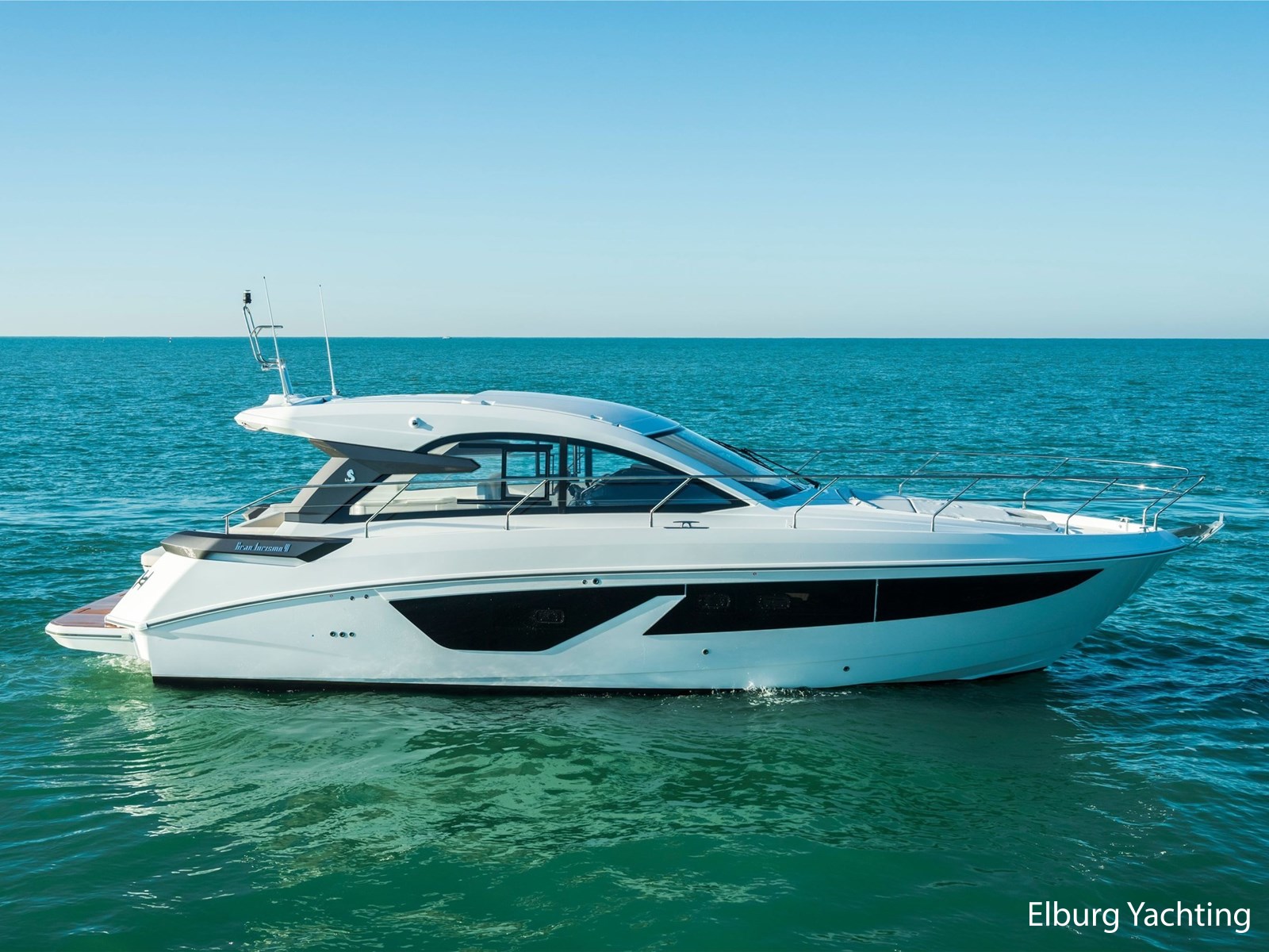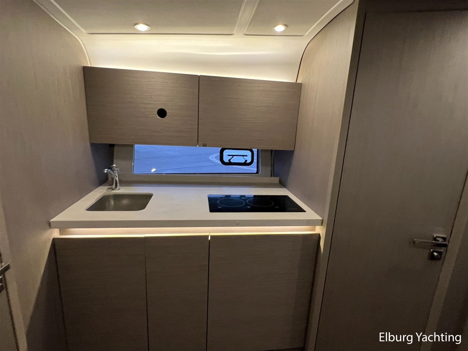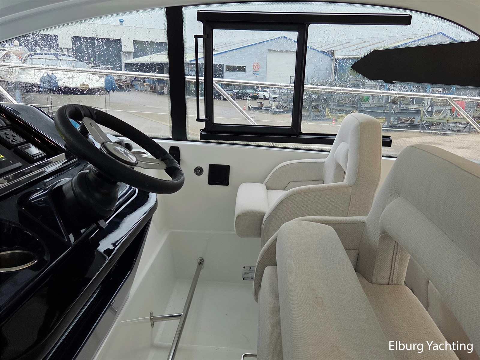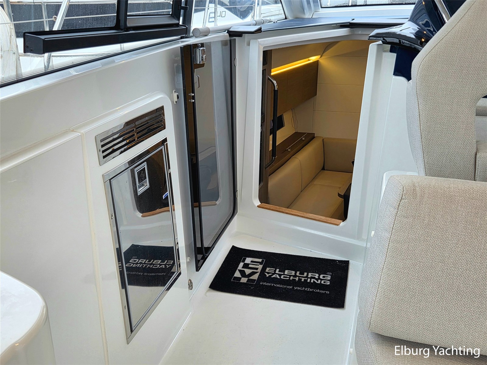 The Beneteau 41 Gran Tourismo is a sporty all-rounder for both inland waters and the open sea, thanks to its combination of practical space and excellent sailing characteristics. It is powered by two 380 hp Volvo Penta D6 engines with docking joystick. The Volvo docking system significantly improves the control and maneuverability of the boat and makes mooring and docking child's play. With a joystick at the helm, every conceivable maneuver can be performed. A supporting electric bow thruster from Sleipner is also present. In the cockpit, there is a large U-shaped bench seat that is open to the helm. The cockpit has an extra refrigerator and sink. The aft deck has a large sunbed with a sliding headrest for extra length. Under the sunbed is an extra-large storage space. This Beneteau 41 Gran Tourismo is equipped with: Full tent around the aft deck, adjustable cockpit table, transom door to swimming platform, helm seat with extra passenger seat on starboard side, refrigerator in cockpit, storage lockers, Volvo Penta computer for reading engine information and current fuel consumption. Volvo trim tabs, 2 x sliding windows at the helm, large electrically operated sliding roof above the helm, Fusion audio system speakers in saloon and cockpit, spacious wardrobe with lighting in forward cabin, bed in second cabin amidships, removable cushions on foredeck, various 220V and USB plug connections available, removable sunshades around the helm position (3 pieces).