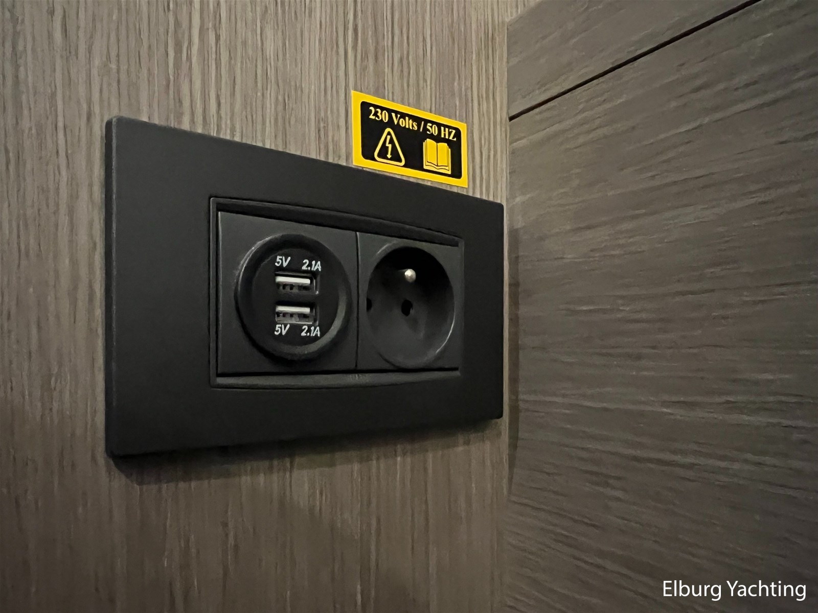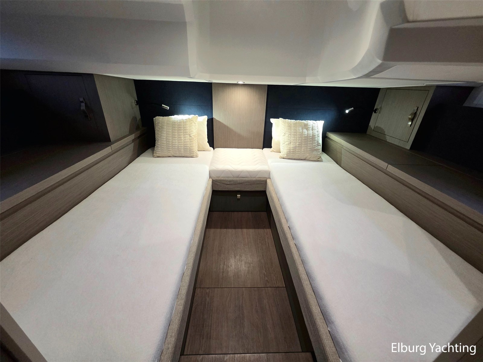 - 4 x vast (1 x 2 pers. french bed in front cabin + 2 x 1 pers. a mid ship) + dinette in saloon can be used as an extra bed