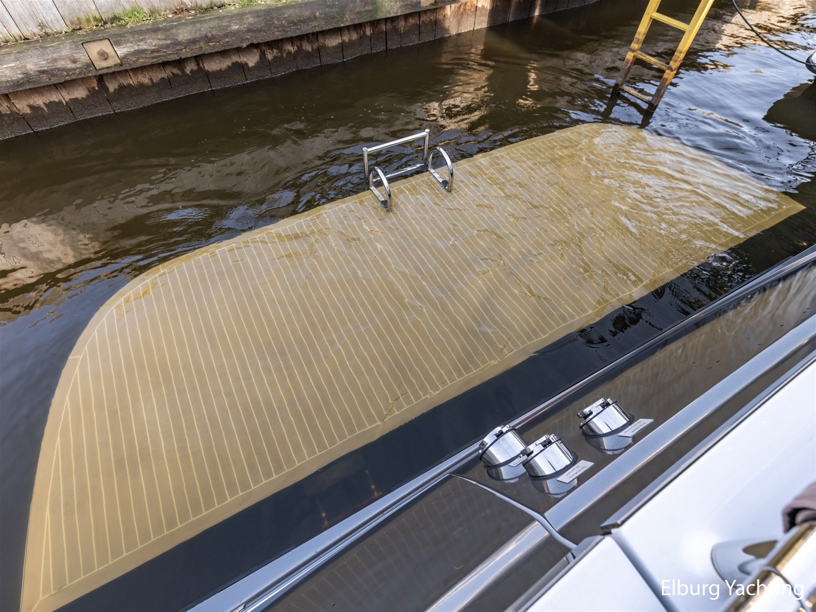 - Submersible bathing platform applied with synthetic teak