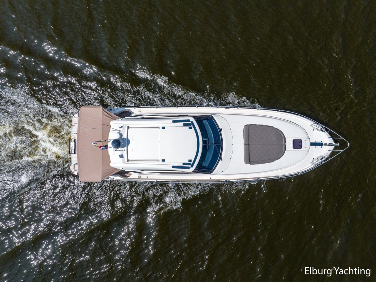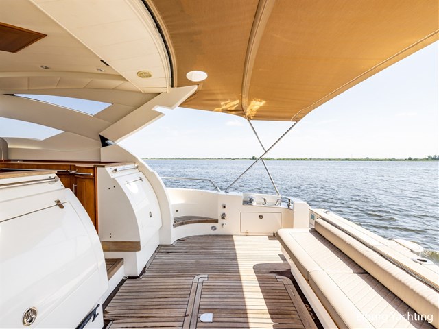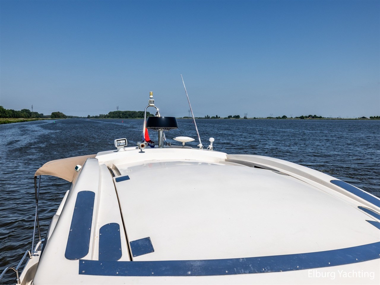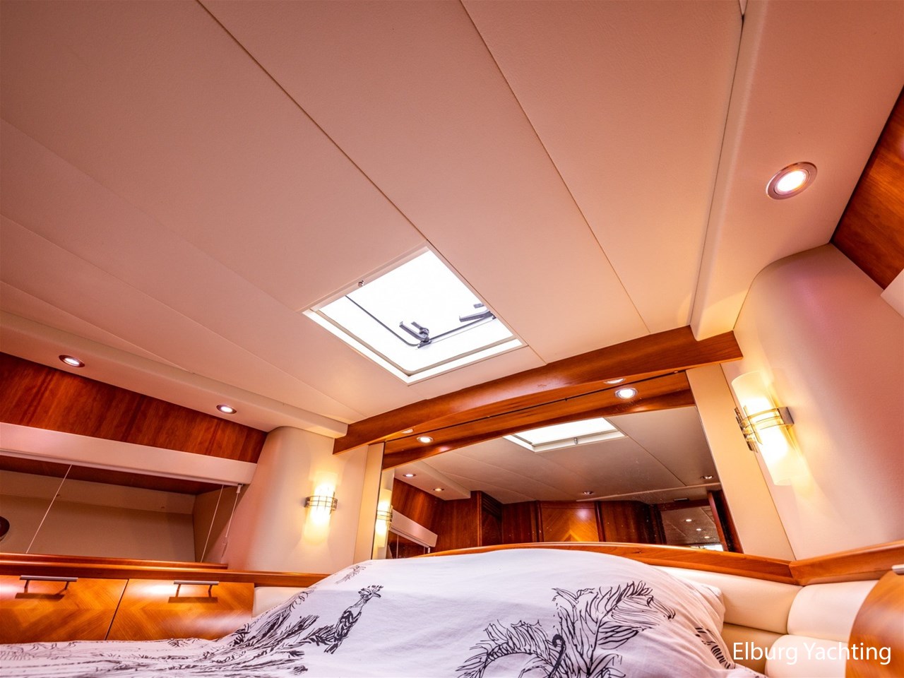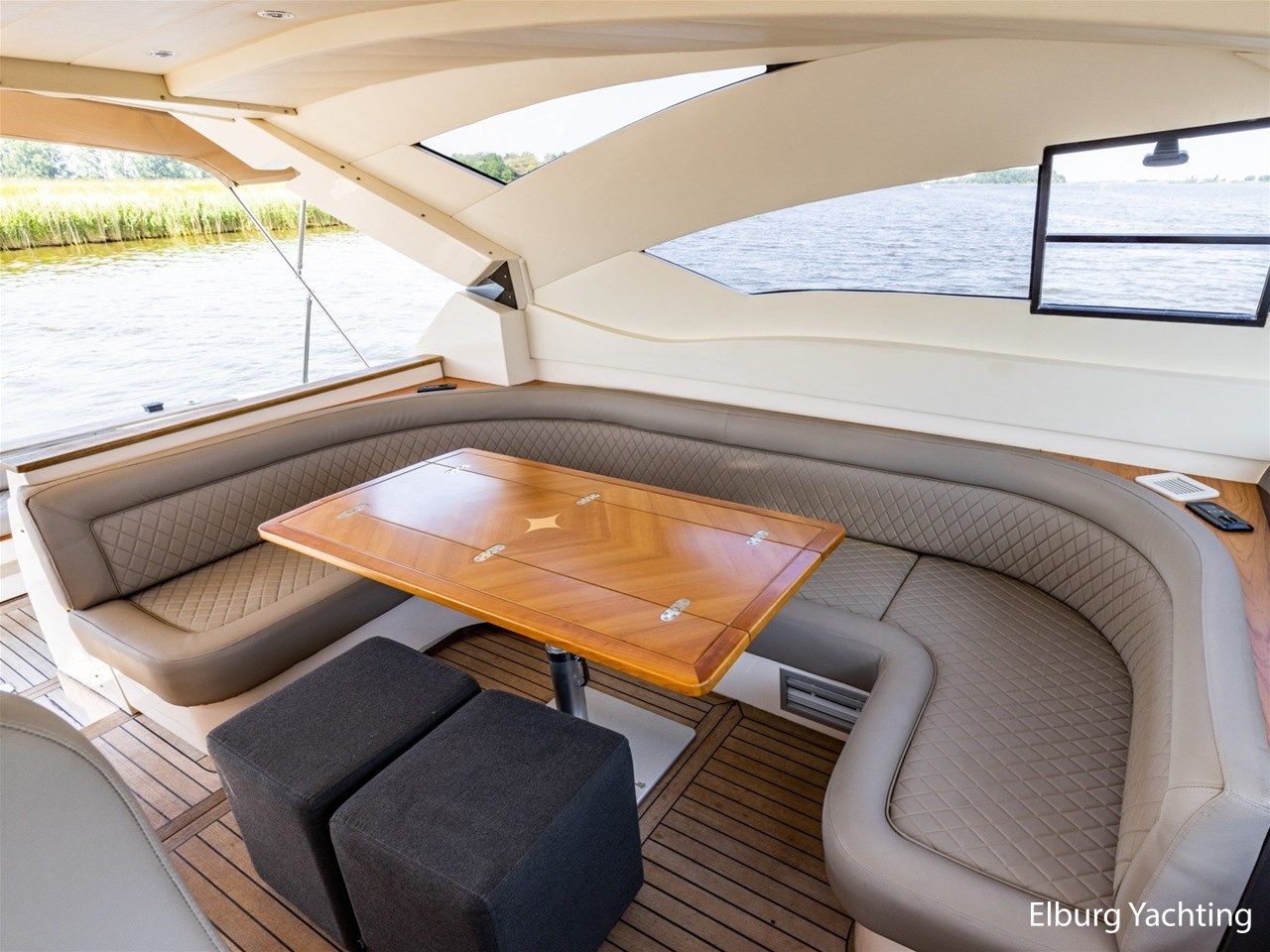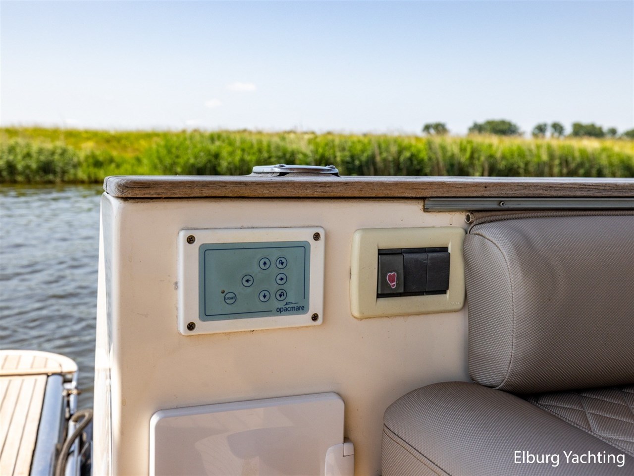 The Cayman 52 Hardtop is a truly sporty all-rounder. The wheelhouse can be fully enclosed with a canopy or insect screen. The helm station, wet bar with sink, grill and fridge, and the spacious U-shaped seating area are all located on a single level. The large electric sliding roof brings the outdoor feeling inside. The open cockpit is generously laid out with a fixed bench and matching cushions. A cockpit hatch provides access to the technical area with additional storage space. Below deck, there are no fewer than three cabins offering up to six berths, along with two separate toilet and shower compartments. This Cayman 52 is equipped with features including: a hydraulically operated gangway on the aft deck, dinghy bracket and launching system, bimini top over the aft deck, cockpit lighting, stainless steel fender holders, two storage hatches in the foredeck, a large sunbed on the bow, high stainless steel guard rails all around, high-quality Italian wood interior, easily accessible technical systems, tanks with inspection hatches, trim tabs, Philips HUE interior lighting, and a trawling mode (low-speed control at idle). Furthermore, a stern thruster was recently installed, and the bilge pump, cover (2024), and service batteries have been renewed.