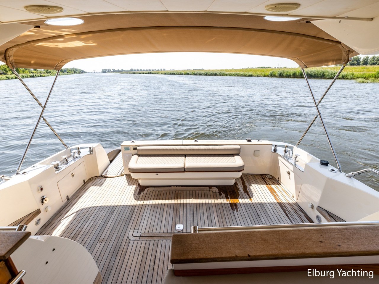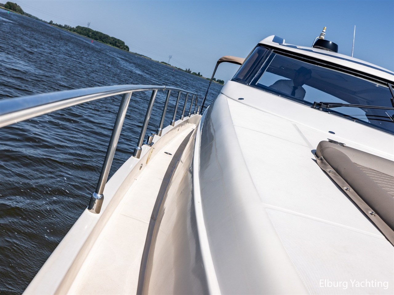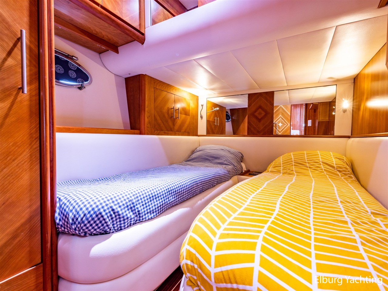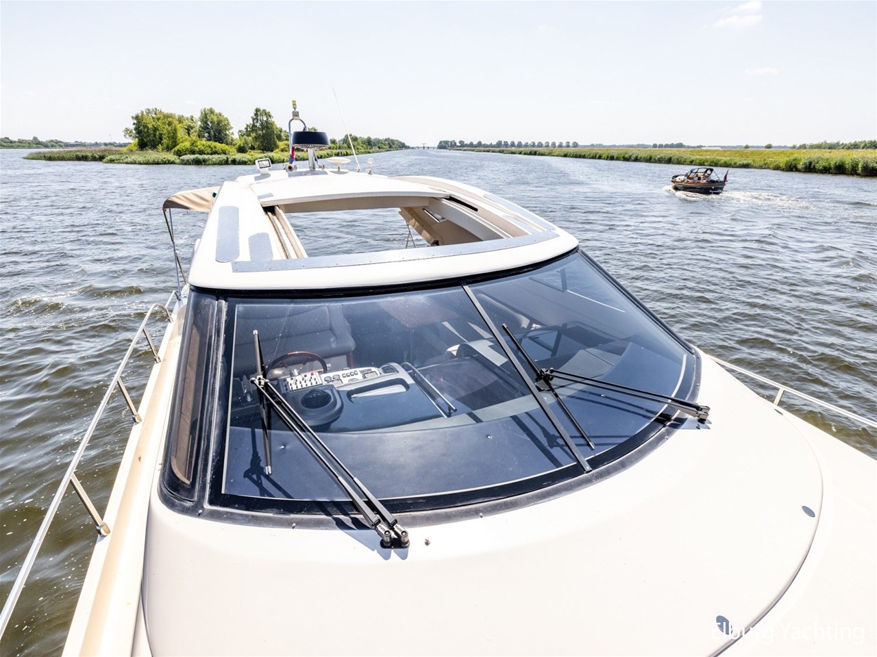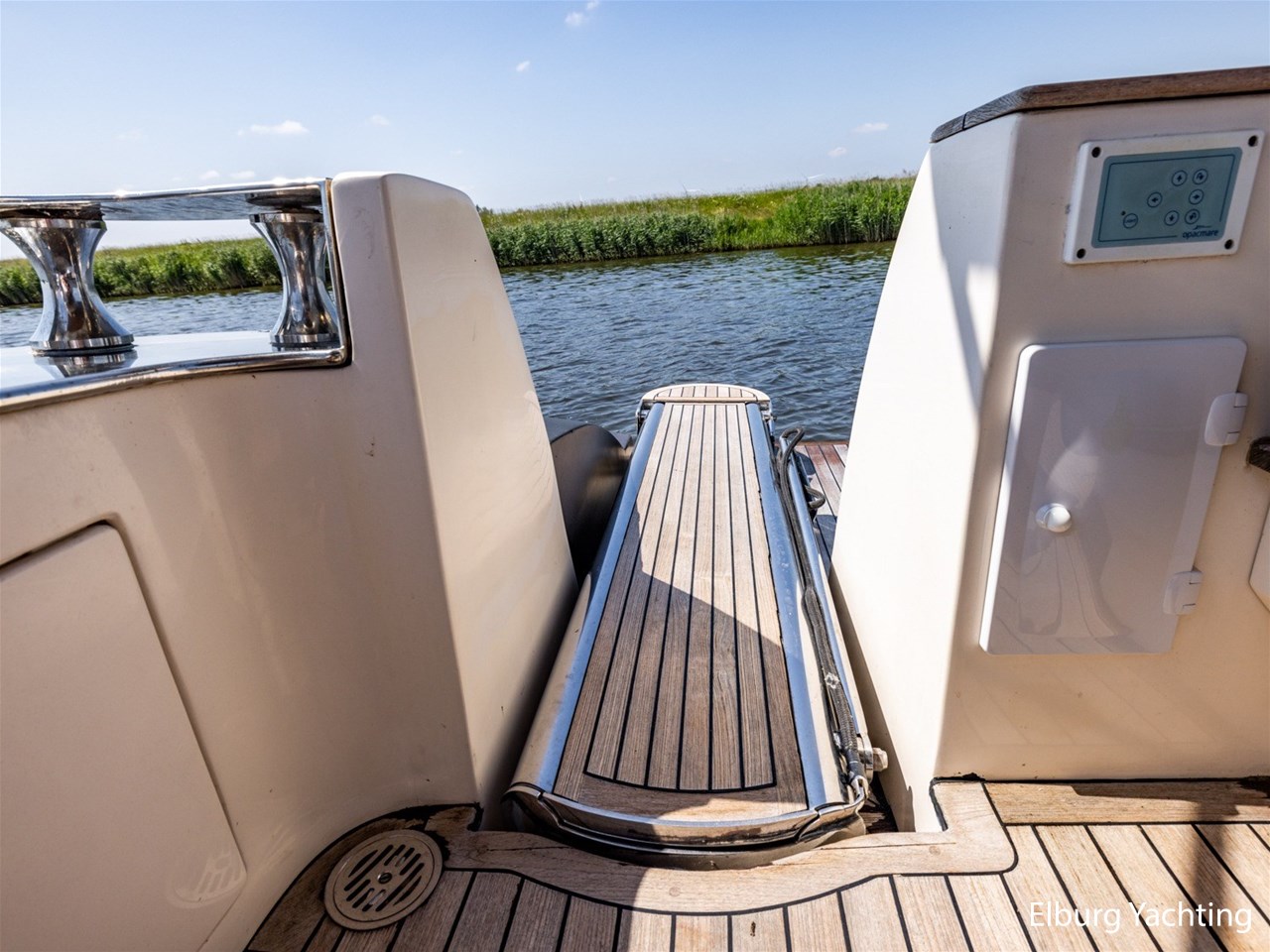 The Cayman 52 Hardtop is a truly sporty all-rounder. The wheelhouse can be fully enclosed with a canopy or insect screen. The helm station, wet bar with sink, grill and fridge, and the spacious U-shaped seating area are all located on a single level. The large electric sliding roof brings the outdoor feeling inside. The open cockpit is generously laid out with a fixed bench and matching cushions. A cockpit hatch provides access to the technical area with additional storage space. Below deck, there are no fewer than three cabins offering up to six berths, along with two separate toilet and shower compartments. This Cayman 52 is equipped with features including: a hydraulically operated gangway on the aft deck, dinghy bracket and launching system, bimini top over the aft deck, cockpit lighting, stainless steel fender holders, two storage hatches in the foredeck, a large sunbed on the bow, high stainless steel guard rails all around, high-quality Italian wood interior, easily accessible technical systems, tanks with inspection hatches, trim tabs, Philips HUE interior lighting, and a trawling mode (low-speed control at idle). Furthermore, a stern thruster was recently installed, and the bilge pump, cover (2024), and service batteries have been renewed.