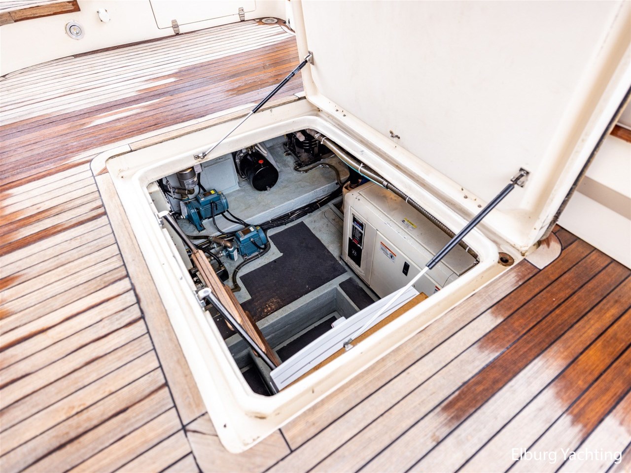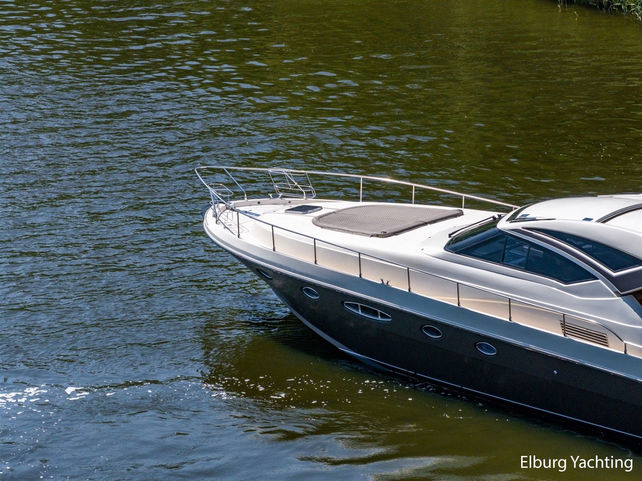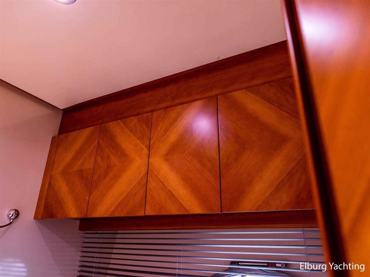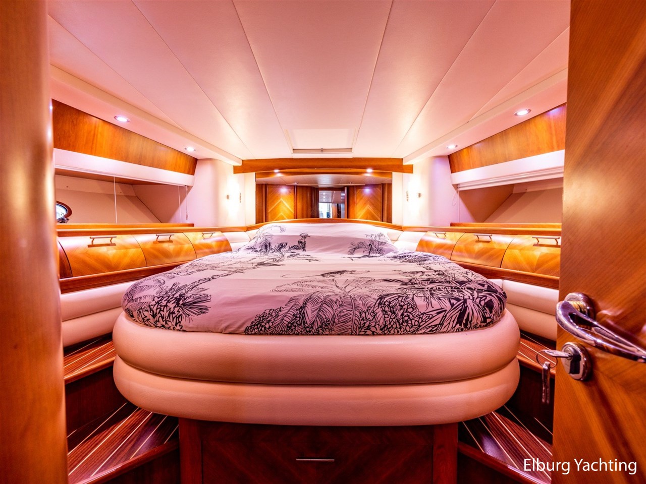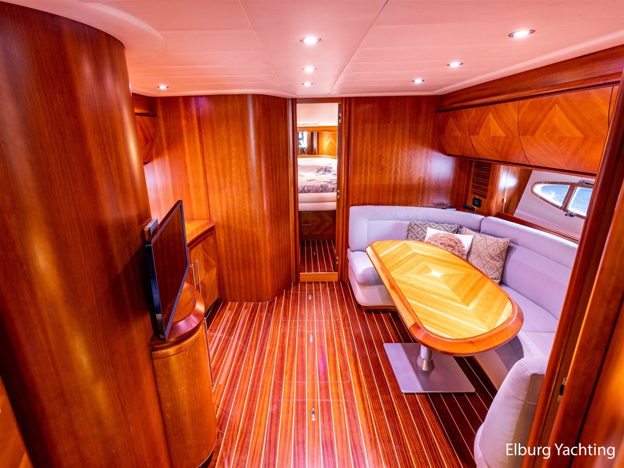 The Cayman 52 Hardtop is a truly sporty all-rounder. The wheelhouse can be fully enclosed with a canopy or insect screen. The helm station, wet bar with sink, grill and fridge, and the spacious U-shaped seating area are all located on a single level. The large electric sliding roof brings the outdoor feeling inside. The open cockpit is generously laid out with a fixed bench and matching cushions. A cockpit hatch provides access to the technical area with additional storage space. Below deck, there are no fewer than three cabins offering up to six berths, along with two separate toilet and shower compartments. This Cayman 52 is equipped with features including: a hydraulically operated gangway on the aft deck, dinghy bracket and launching system, bimini top over the aft deck, cockpit lighting, stainless steel fender holders, two storage hatches in the foredeck, a large sunbed on the bow, high stainless steel guard rails all around, high-quality Italian wood interior, easily accessible technical systems, tanks with inspection hatches, trim tabs, Philips HUE interior lighting, and a trawling mode (low-speed control at idle). Furthermore, a stern thruster was recently installed, and the bilge pump, cover (2024), and service batteries have been renewed.