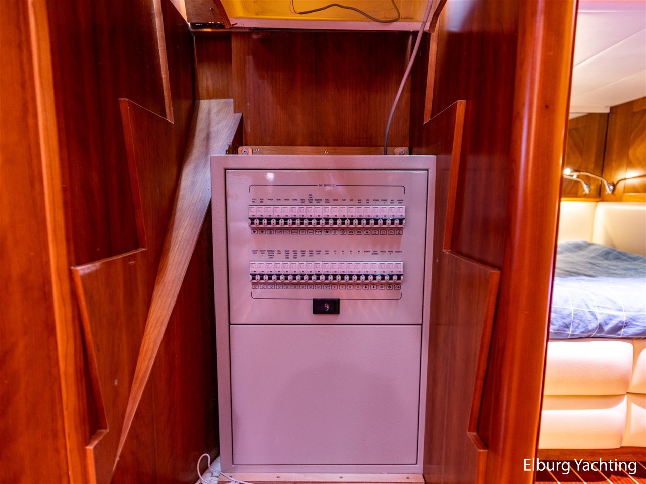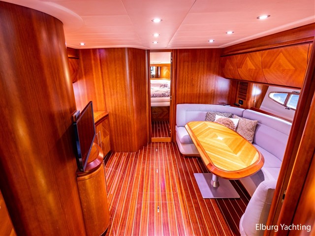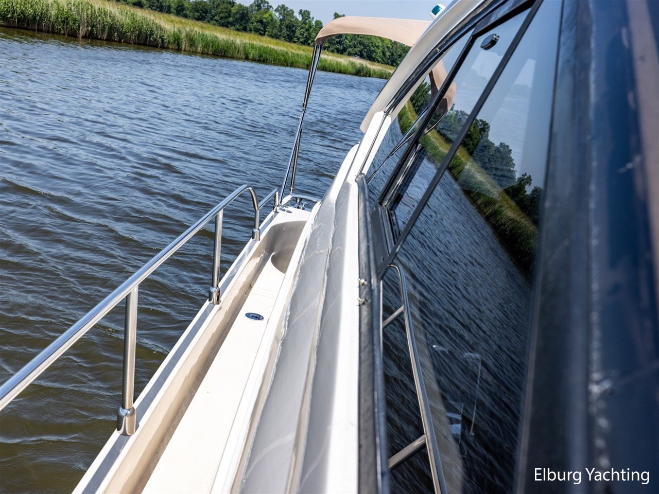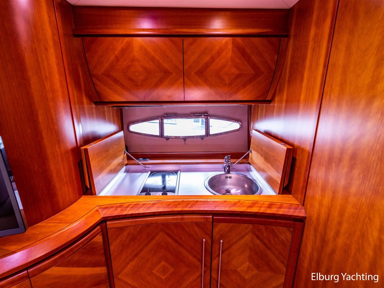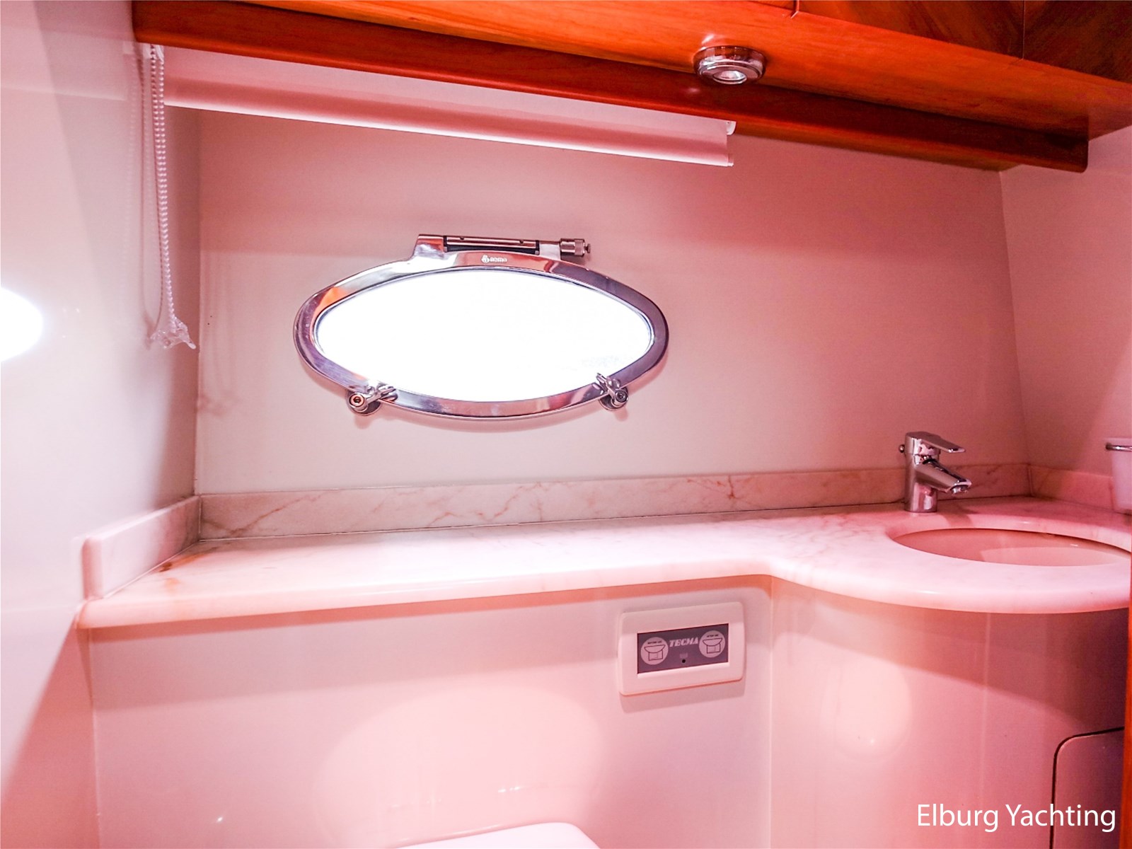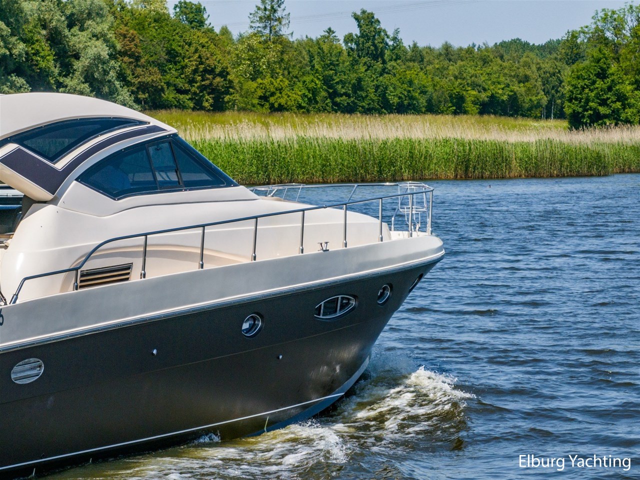 The Cayman 52 Hardtop is a truly sporty all-rounder. The wheelhouse can be fully enclosed with a canopy or insect screen. The helm station, wet bar with sink, grill and fridge, and the spacious U-shaped seating area are all located on a single level. The large electric sliding roof brings the outdoor feeling inside. The open cockpit is generously laid out with a fixed bench and matching cushions. A cockpit hatch provides access to the technical area with additional storage space. Below deck, there are no fewer than three cabins offering up to six berths, along with two separate toilet and shower compartments. This Cayman 52 is equipped with features including: a hydraulically operated gangway on the aft deck, dinghy bracket and launching system, bimini top over the aft deck, cockpit lighting, stainless steel fender holders, two storage hatches in the foredeck, a large sunbed on the bow, high stainless steel guard rails all around, high-quality Italian wood interior, easily accessible technical systems, tanks with inspection hatches, trim tabs, Philips HUE interior lighting, and a trawling mode (low-speed control at idle). Furthermore, a stern thruster was recently installed, and the bilge pump, cover (2024), and service batteries have been renewed.