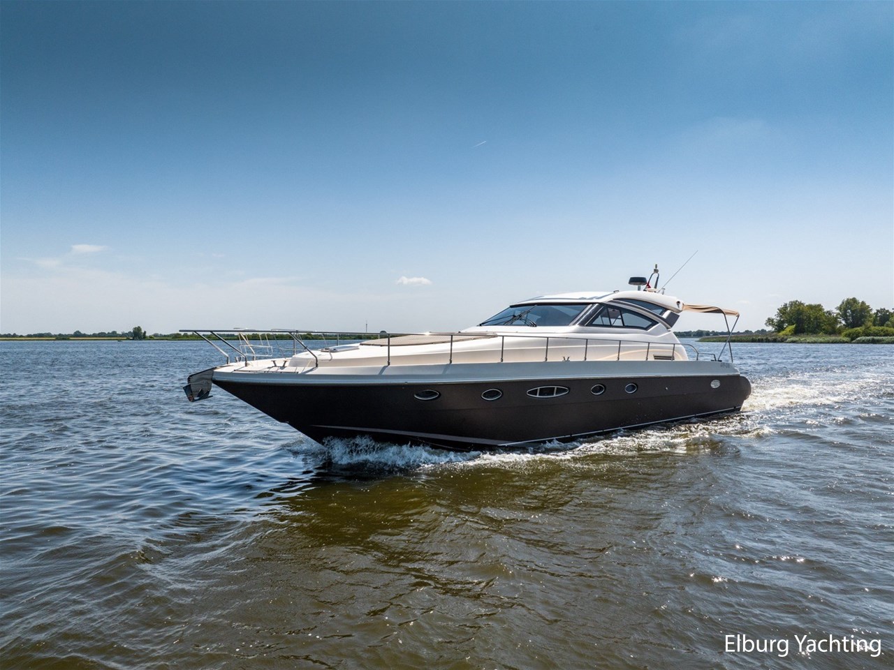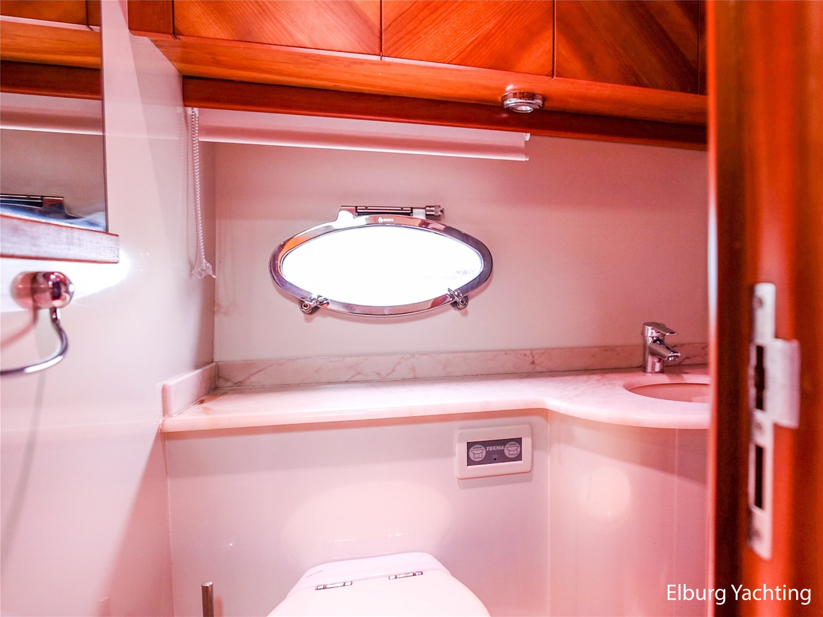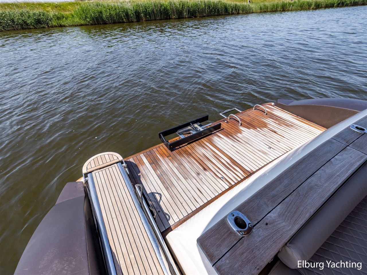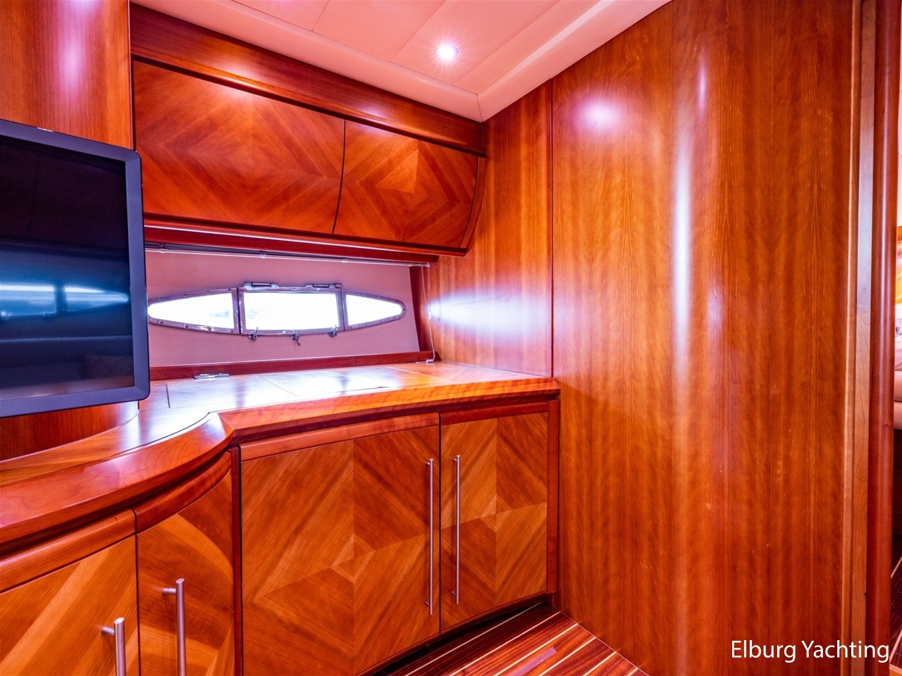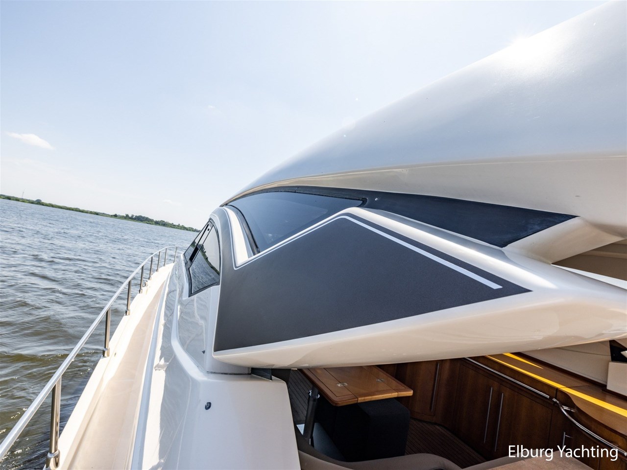 The Cayman 52 Hardtop is a truly sporty all-rounder. The wheelhouse can be fully enclosed with a canopy or insect screen. The helm station, wet bar with sink, grill and fridge, and the spacious U-shaped seating area are all located on a single level. The large electric sliding roof brings the outdoor feeling inside. The open cockpit is generously laid out with a fixed bench and matching cushions. A cockpit hatch provides access to the technical area with additional storage space. Below deck, there are no fewer than three cabins offering up to six berths, along with two separate toilet and shower compartments. This Cayman 52 is equipped with features including: a hydraulically operated gangway on the aft deck, dinghy bracket and launching system, bimini top over the aft deck, cockpit lighting, stainless steel fender holders, two storage hatches in the foredeck, a large sunbed on the bow, high stainless steel guard rails all around, high-quality Italian wood interior, easily accessible technical systems, tanks with inspection hatches, trim tabs, Philips HUE interior lighting, and a trawling mode (low-speed control at idle). Furthermore, a stern thruster was recently installed, and the bilge pump, cover (2024), and service batteries have been renewed.