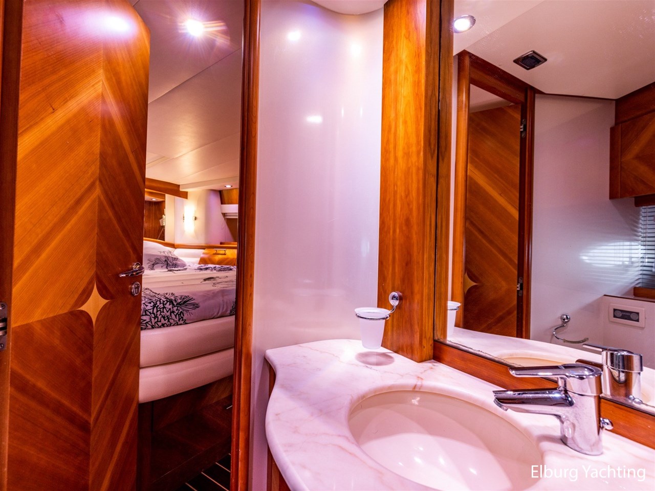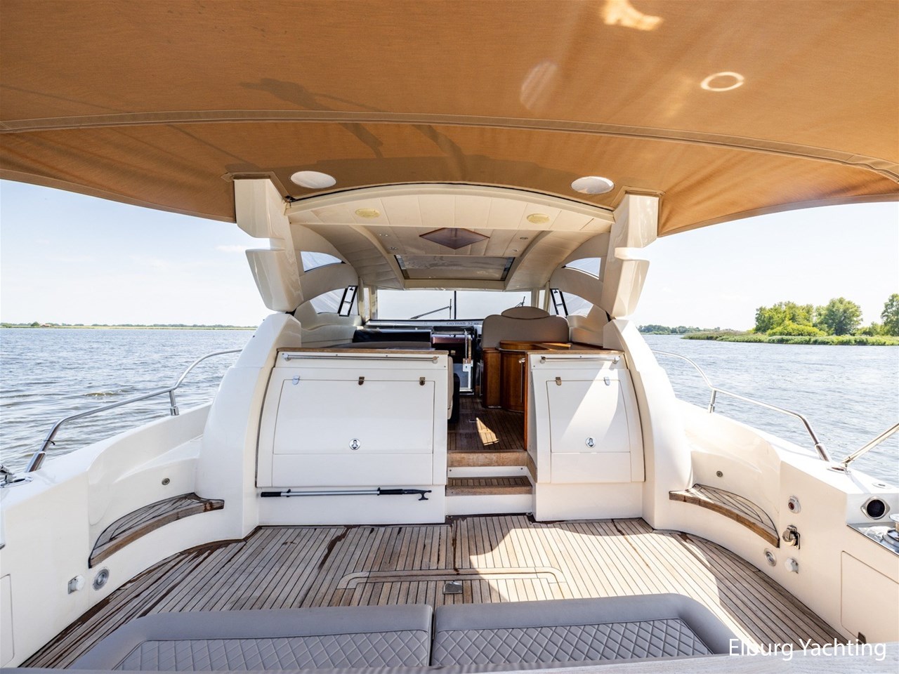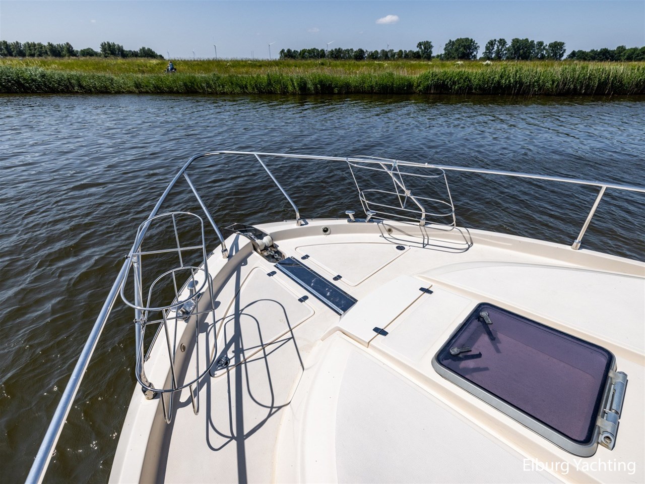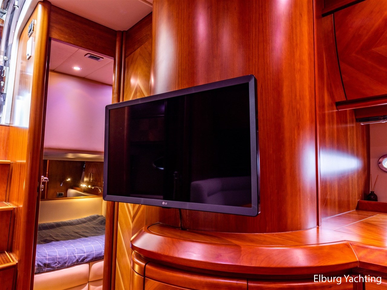 The Cayman 52 Hardtop is a truly sporty all-rounder. The wheelhouse can be fully enclosed with a canopy or insect screen. The helm station, wet bar with sink, grill and fridge, and the spacious U-shaped seating area are all located on a single level. The large electric sliding roof brings the outdoor feeling inside. The open cockpit is generously laid out with a fixed bench and matching cushions. A cockpit hatch provides access to the technical area with additional storage space. Below deck, there are no fewer than three cabins offering up to six berths, along with two separate toilet and shower compartments. This Cayman 52 is equipped with features including: a hydraulically operated gangway on the aft deck, dinghy bracket and launching system, bimini top over the aft deck, cockpit lighting, stainless steel fender holders, two storage hatches in the foredeck, a large sunbed on the bow, high stainless steel guard rails all around, high-quality Italian wood interior, easily accessible technical systems, tanks with inspection hatches, trim tabs, Philips HUE interior lighting, and a trawling mode (low-speed control at idle). Furthermore, a stern thruster was recently installed, and the bilge pump, cover (2024), and service batteries have been renewed.