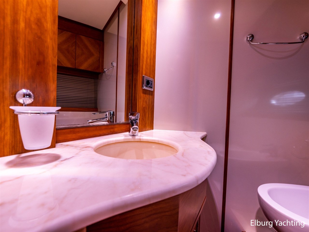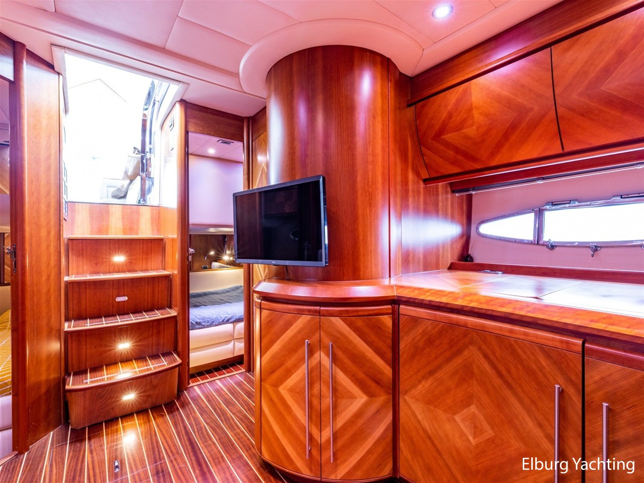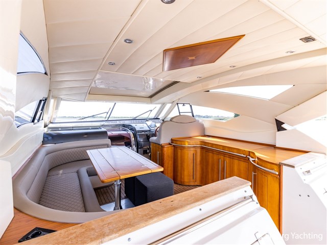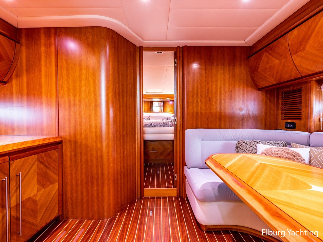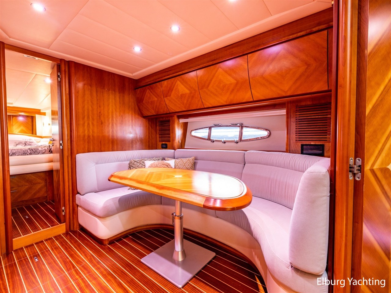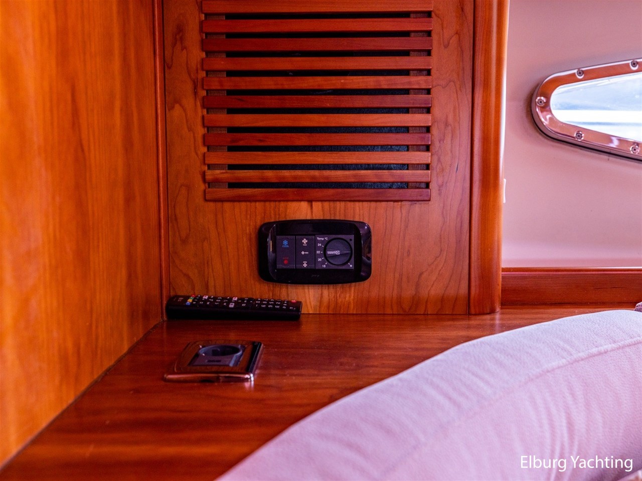 The Cayman 52 Hardtop is a truly sporty all-rounder. The wheelhouse can be fully enclosed with a canopy or insect screen. The helm station, wet bar with sink, grill and fridge, and the spacious U-shaped seating area are all located on a single level. The large electric sliding roof brings the outdoor feeling inside. The open cockpit is generously laid out with a fixed bench and matching cushions. A cockpit hatch provides access to the technical area with additional storage space. Below deck, there are no fewer than three cabins offering up to six berths, along with two separate toilet and shower compartments. This Cayman 52 is equipped with features including: a hydraulically operated gangway on the aft deck, dinghy bracket and launching system, bimini top over the aft deck, cockpit lighting, stainless steel fender holders, two storage hatches in the foredeck, a large sunbed on the bow, high stainless steel guard rails all around, high-quality Italian wood interior, easily accessible technical systems, tanks with inspection hatches, trim tabs, Philips HUE interior lighting, and a trawling mode (low-speed control at idle). Furthermore, a stern thruster was recently installed, and the bilge pump, cover (2024), and service batteries have been renewed.