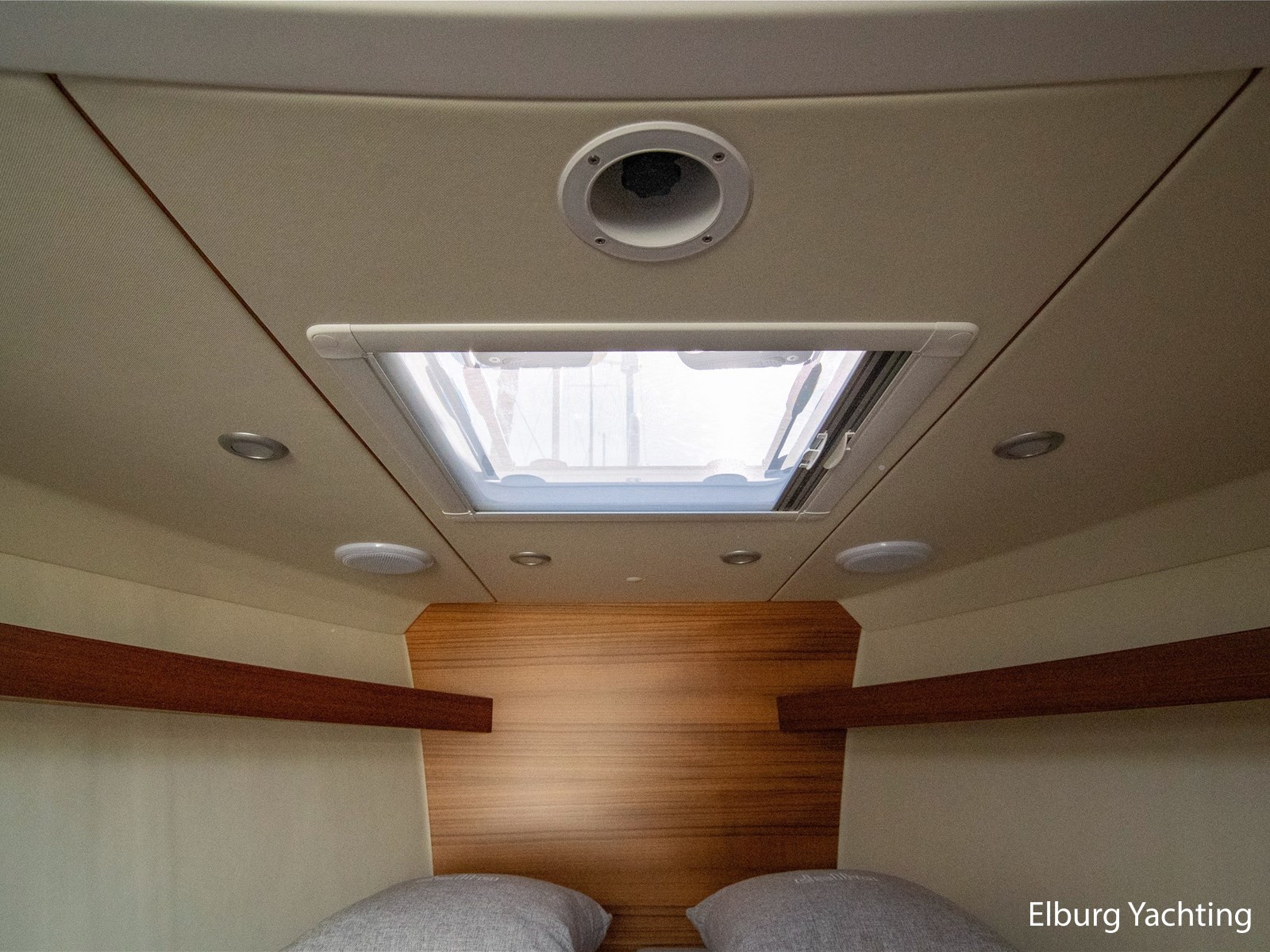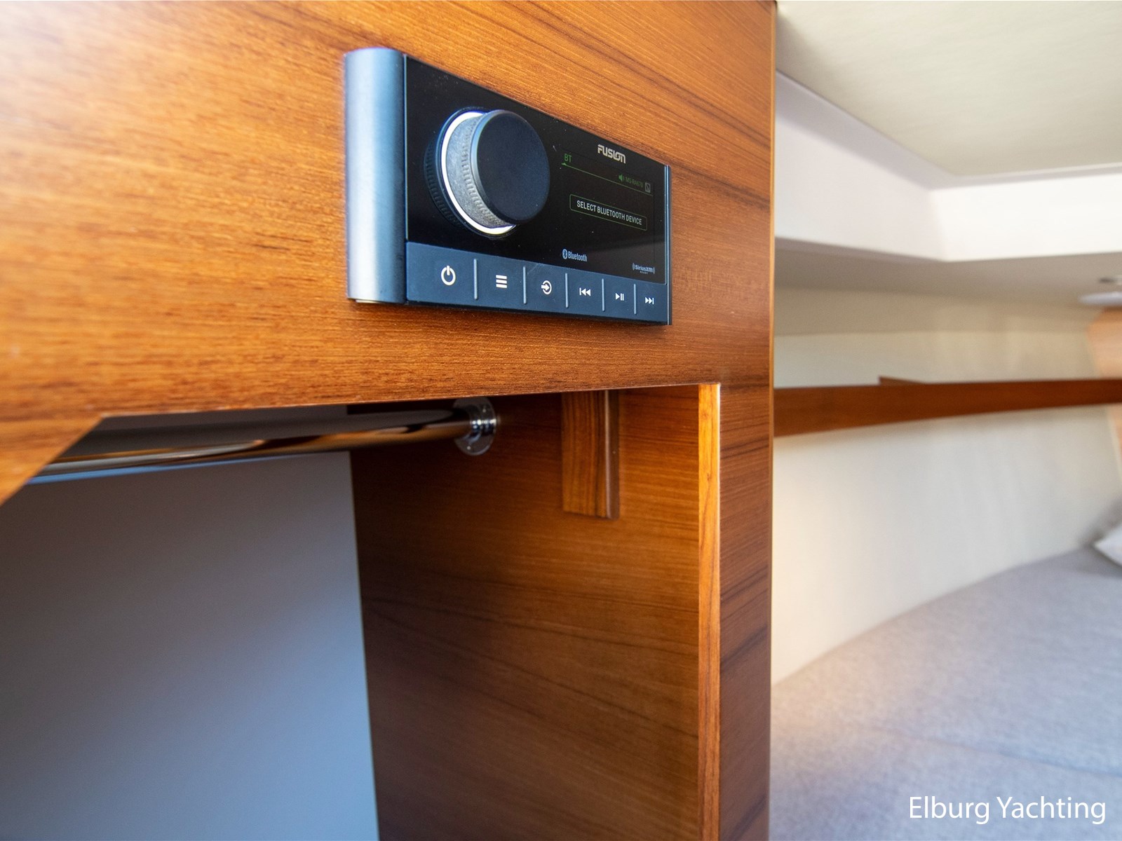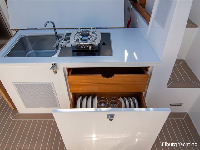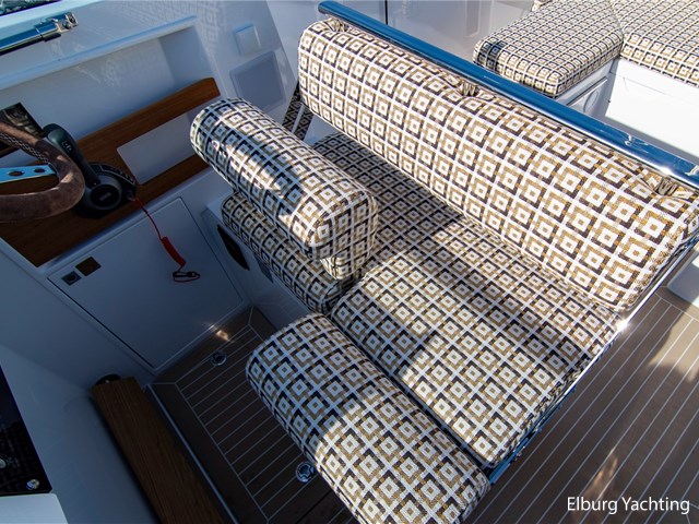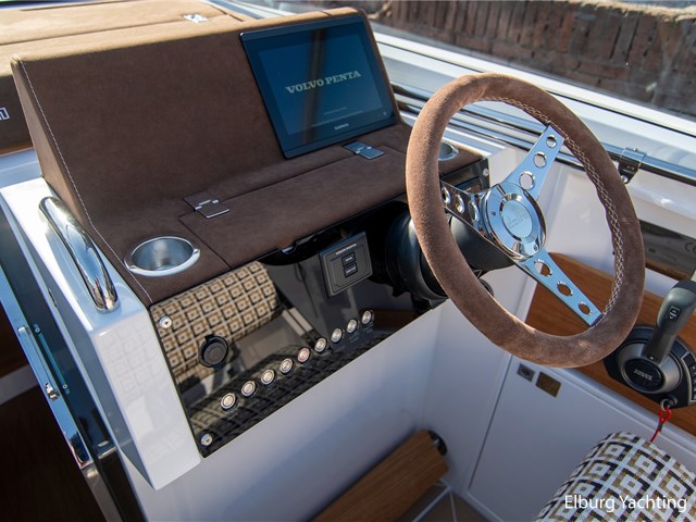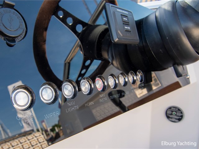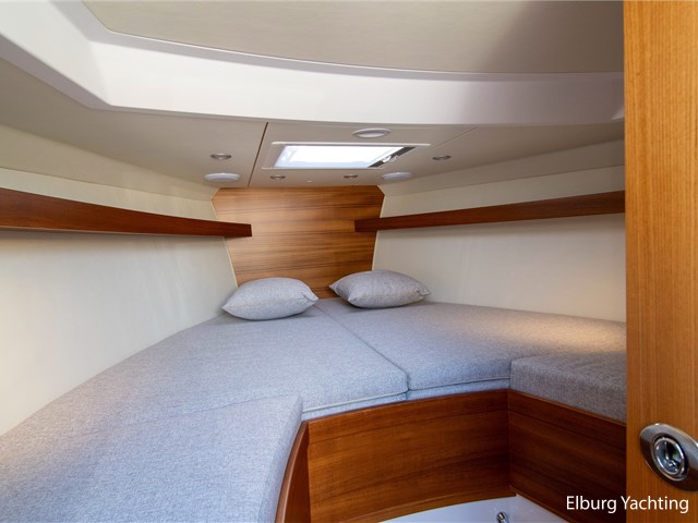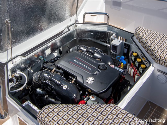 Comfort and entertainment are also well taken care of on board. The Fusion audio system with extra speakers and subwoofer delivers high-quality sound, while USB and 12V connections at both the helm and the cabin ensure that all your devices stay charged. The interior and seat upholstery have been upgraded, making it extra stylish and comfortable on board.
