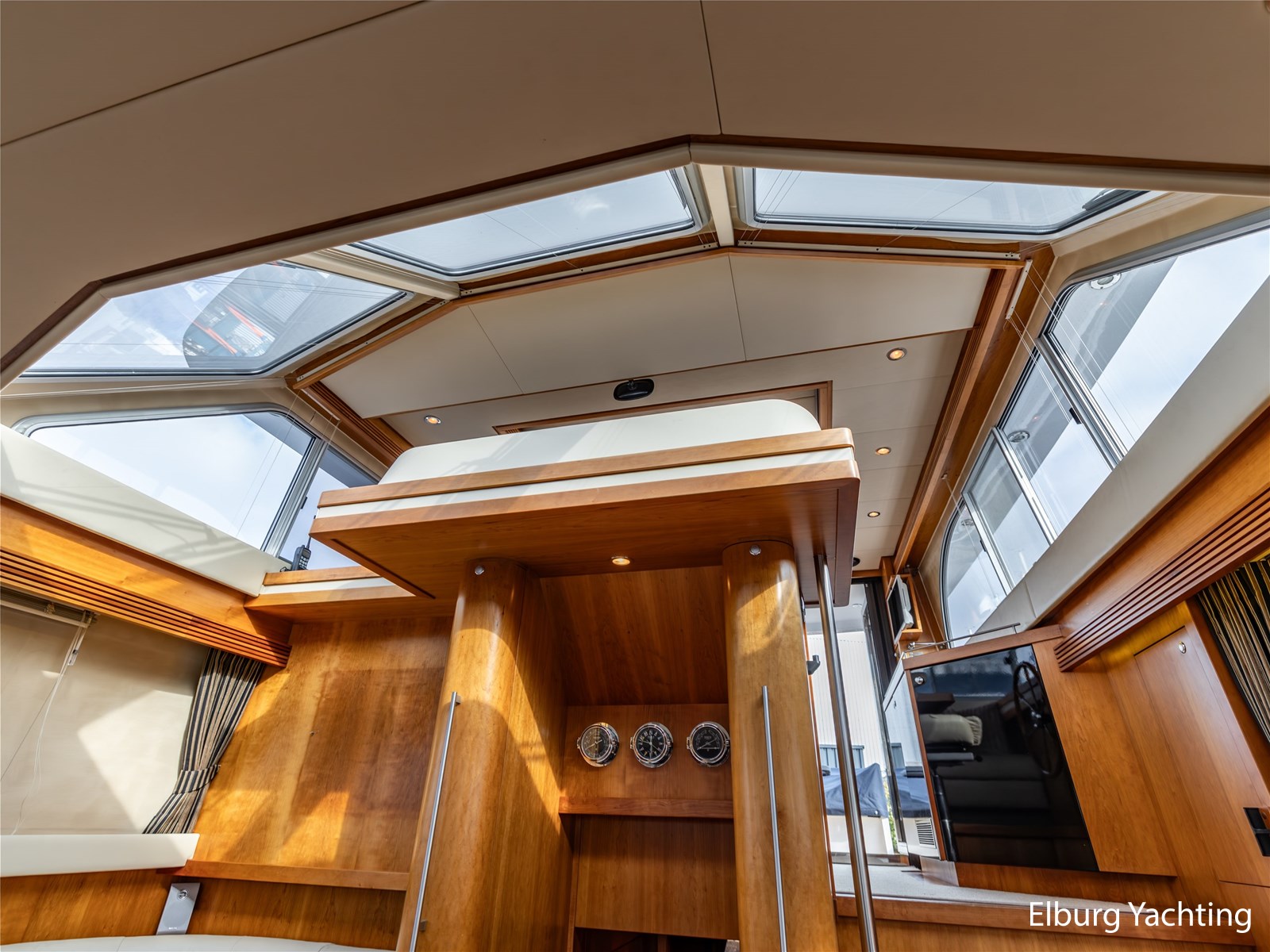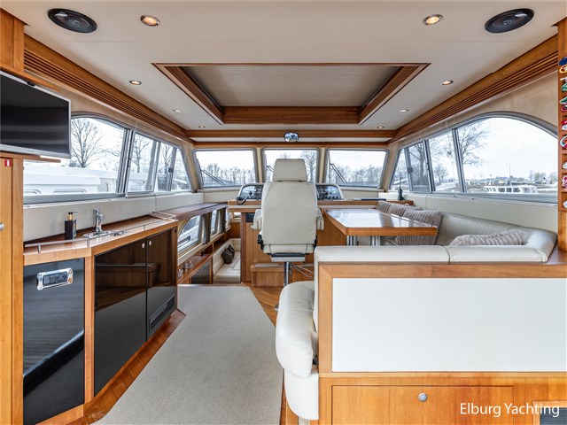 On board this Valk Continental 1900, you will experience an exceptional sense of space and connection to the outdoors. The spacious wheelhouse forms the heart of the yacht, with the helm station forward and a comfortable dinette directly behind it. Thanks to the panoramic view, this is an ideal place while cruising as well as when staying on board. Four-part stainless steel doors connect the aft deck seamlessly to the wheelhouse. The sliding sunroof and two side sliding windows provide an open-air feeling, even when you are inside.