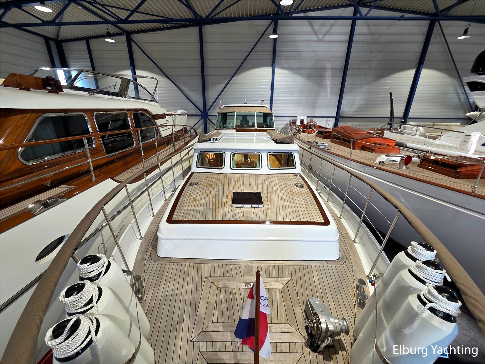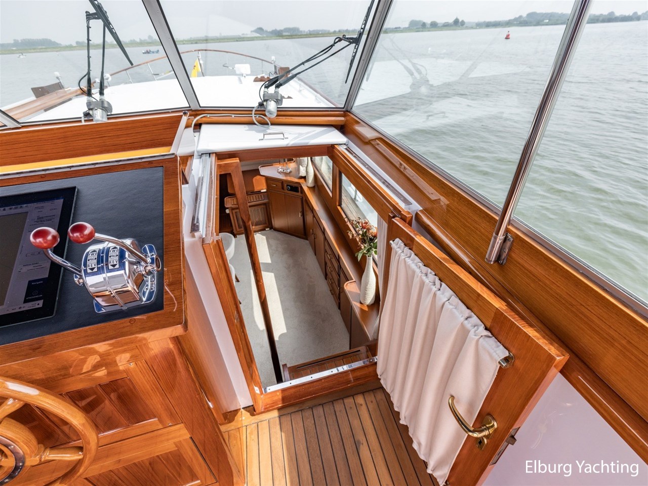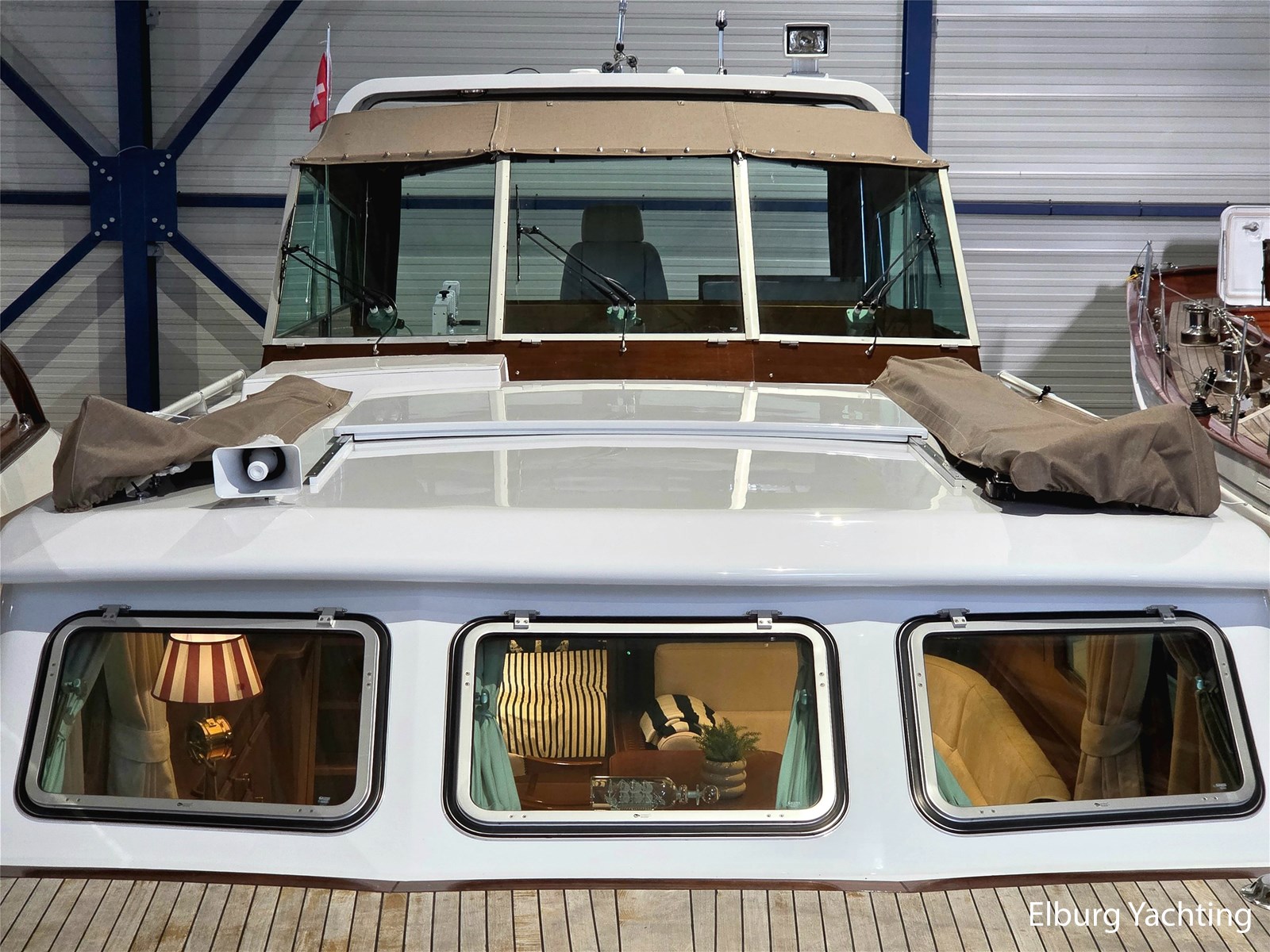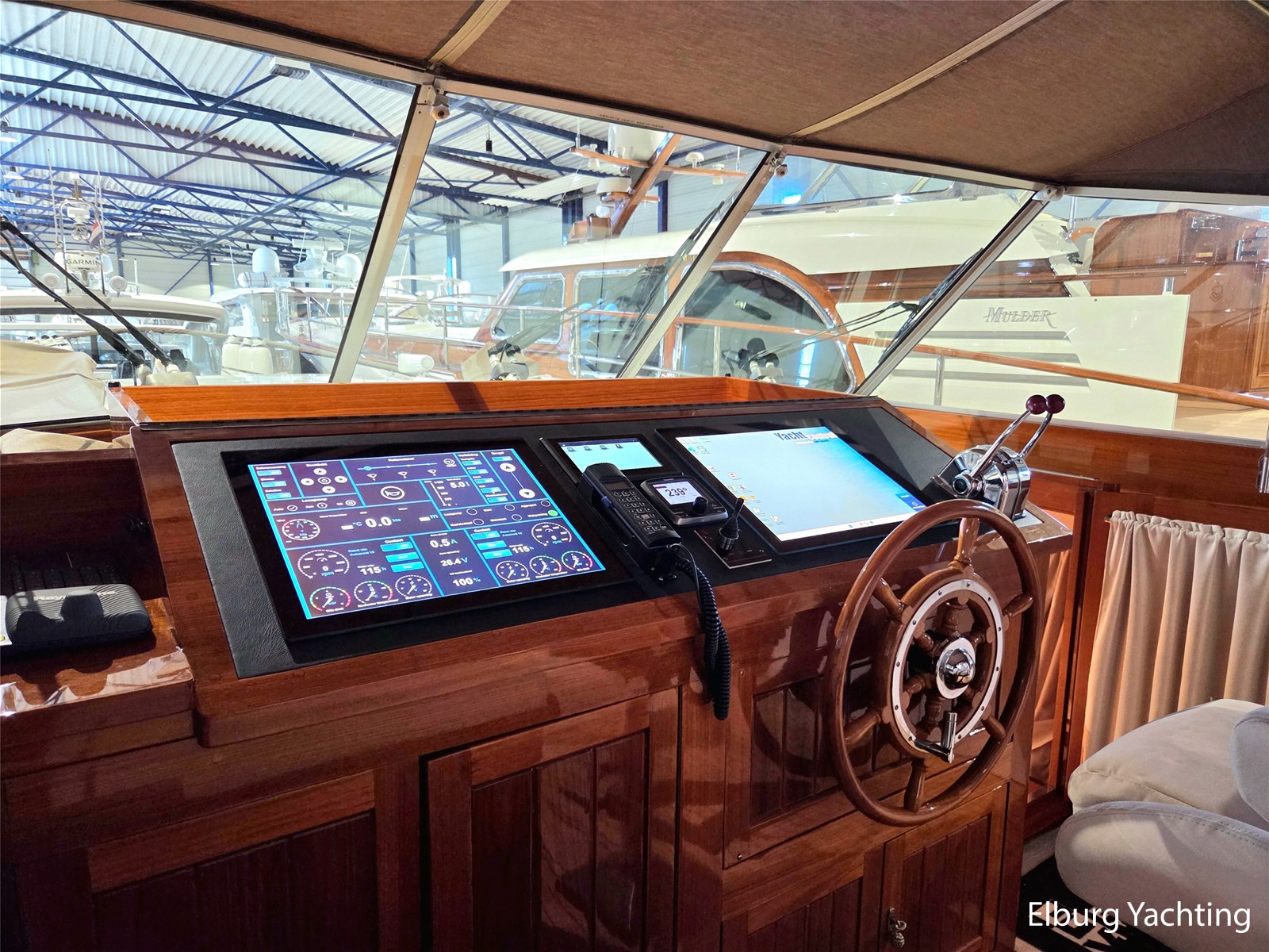 This beautifully and richly equipped Super van Craft 14.95 France Proof is in excellent condition. It's a classic yacht with a modern twist, meticulously maintained. For example, in 2025, the owner replaced all batteries, completely replaced the fenders, and installed a brand new canopy with awnings for all windows. The yacht also features remote-controlled aft deck lighting. This Super van Craft 14.95 is equipped with: Spacious aft deck with integrated cockpit bench with removable cushions + cover, sprayhood and bimini (2025), fully removable cover around the varnished railing (2025), Glassbridge dashboard with Yachtcontrol for operating the on-board systems / reading engine information / navigation software, deck heating at the steering position, floor cellar in the kitchen, sliding roof in the saloon, dimmable lighting, plenty of cupboard space, LED lighting, 2 x escape hatches, Miele washer / dryer, Siemens dishwasher, DAB water pump for extra water pressure, hydraulically folding radar arch, stainless steel fender holders on the foredeck, mosquito screens for portholes, Victron color control, Fusion audio system, luxury driving seat with fixed co-pilot bench. The blue sprayhood on the pictures is replaced in 2025 for a complete new cover including bimini.