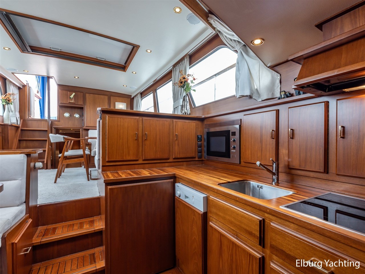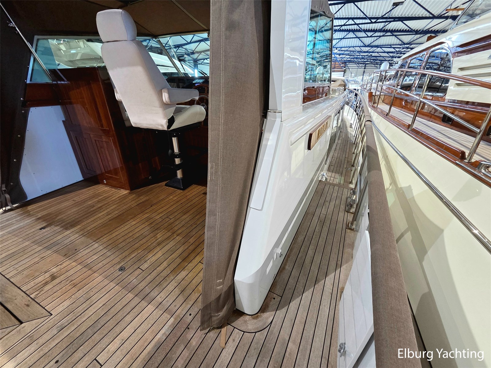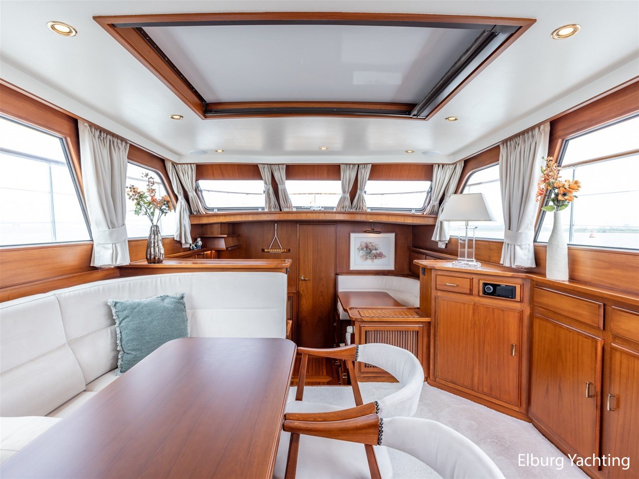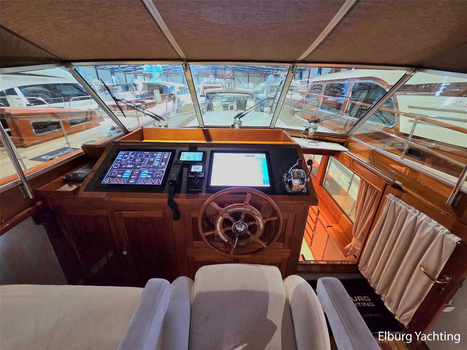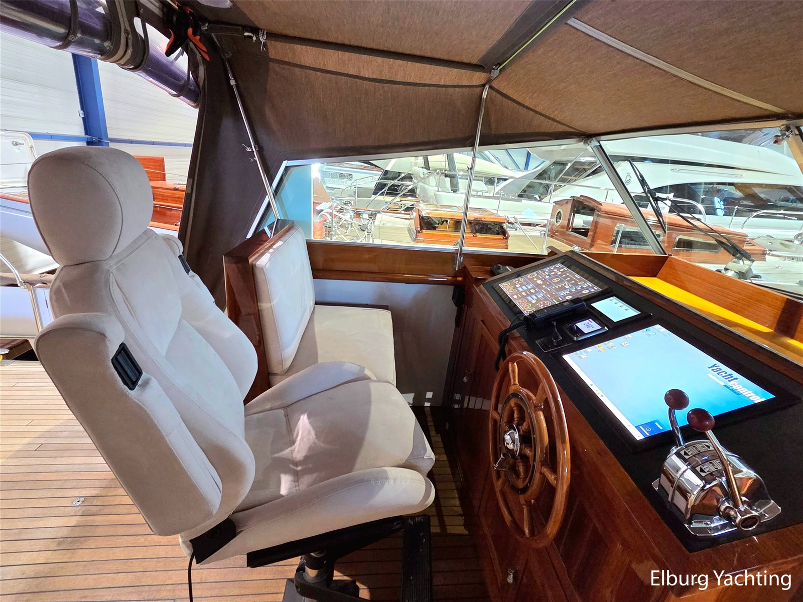 This beautifully and richly equipped Super van Craft 14.95 France Proof is in excellent condition. It's a classic yacht with a modern twist, meticulously maintained. For example, in 2025, the owner replaced all batteries, completely replaced the fenders, and installed a brand new canopy with awnings for all windows. The yacht also features remote-controlled aft deck lighting. This Super van Craft 14.95 is equipped with: Spacious aft deck with integrated cockpit bench with removable cushions + cover, sprayhood and bimini (2025), fully removable cover around the varnished railing (2025), Glassbridge dashboard with Yachtcontrol for operating the on-board systems / reading engine information / navigation software, deck heating at the steering position, floor cellar in the kitchen, sliding roof in the saloon, dimmable lighting, plenty of cupboard space, LED lighting, 2 x escape hatches, Miele washer / dryer, Siemens dishwasher, DAB water pump for extra water pressure, hydraulically folding radar arch, stainless steel fender holders on the foredeck, mosquito screens for portholes, Victron color control, Fusion audio system, luxury driving seat with fixed co-pilot bench. The blue sprayhood on the pictures is replaced in 2025 for a complete new cover including bimini.