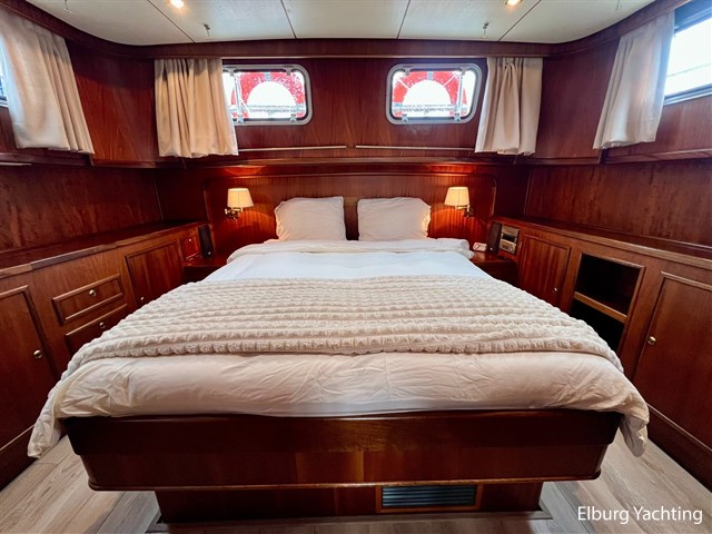 The Stentor 1300 is an all-rounder on the water designed by Vripack. Whether sailing Dutch and European inland waterways or exploring the open sea, it makes no difference to this Stentor 1300, as she has proven herself everywhere with voyages to and from the Mediterranean Sea. Since 2021 the vessel has primarily sailed on Dutch inland and coastal waters. This Stentor 1300 is built with a beautiful and solid steel hull featuring a robust, sloping bulwark at the bow, double stainless steel railings, 8 sturdy stainless steel bollards around the deck and a foldable mast. What stands out is the quietness of the propulsion system on board and at deck level. The interior is nautically finished with mahogany wood and is spaciously laid out, making long stays on board comfortable. In the bow and stern, there is a full 2-person cabin with a freestanding bed and private bathroom (shower & toilet). The vessel offers onboard comforts such as central heating with radiators, double glazing windows, space for a small washing machine in the forward shower cabin, a generator, and a large covered aft deck. The last maintenance work on the ship was carried out in 2025, including a service on the Vetus Deutz main engine, cleaning of the diesel tanks and maintenance on the Kabola heating. A comprehensive maintenance logbook is available. Further noteworthy upgrades include the electric toilets in 2022, the tent over the aft deck in 2022, and maintenance on the Naiad stabilizers in 2022. Furthermore, this Stentor 1300 is equipped with: a fixed 2-person bench at the outside helm position and two benches on the aft deck, an internal passage to the aft deck + side door on the port side, mosquito nets for portholes and side door, stainless steel fender holders, spacious storage under the bed in the aft cabin, TV connection available in the aft cabin, spacious engine room with good access to the technical equipment and tanks, 2 x alternators on the main engine, double switchable Separ fuel filters, manholes in tanks, partially dimmable interior lighting. Clearance height with mast lowered approx. 3.40m. The hull has visible rust spots around the hull; it is recommended to have the hull painted.